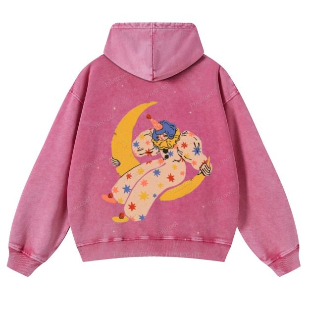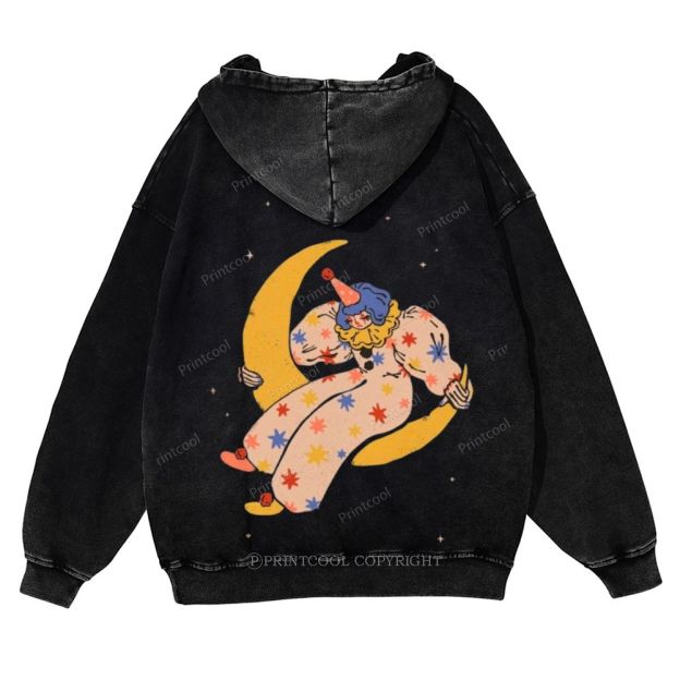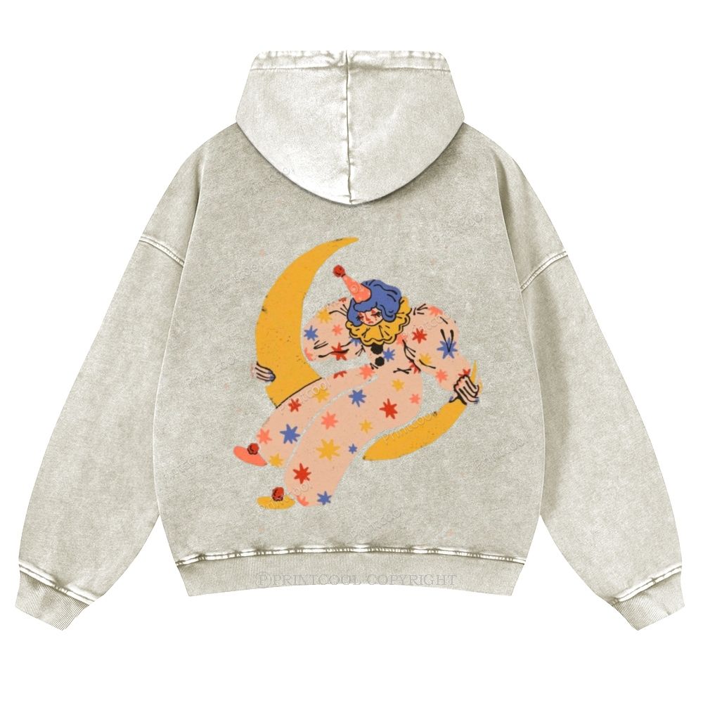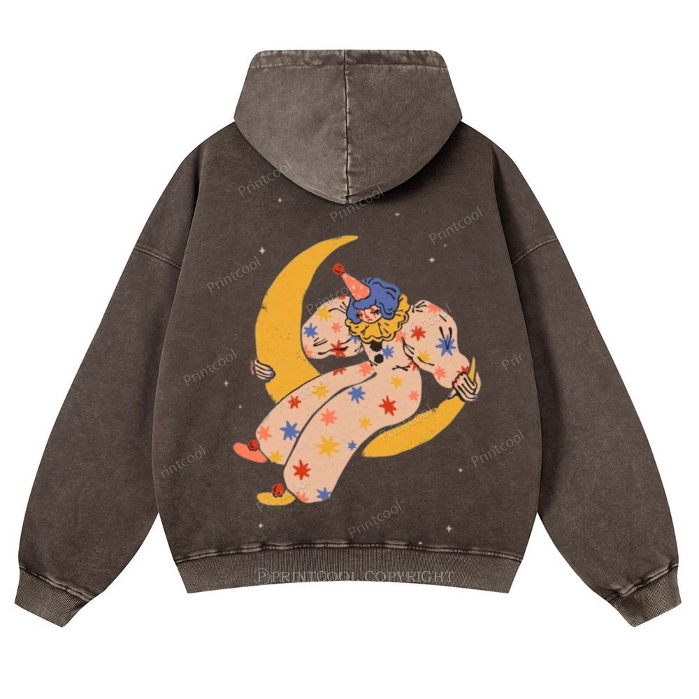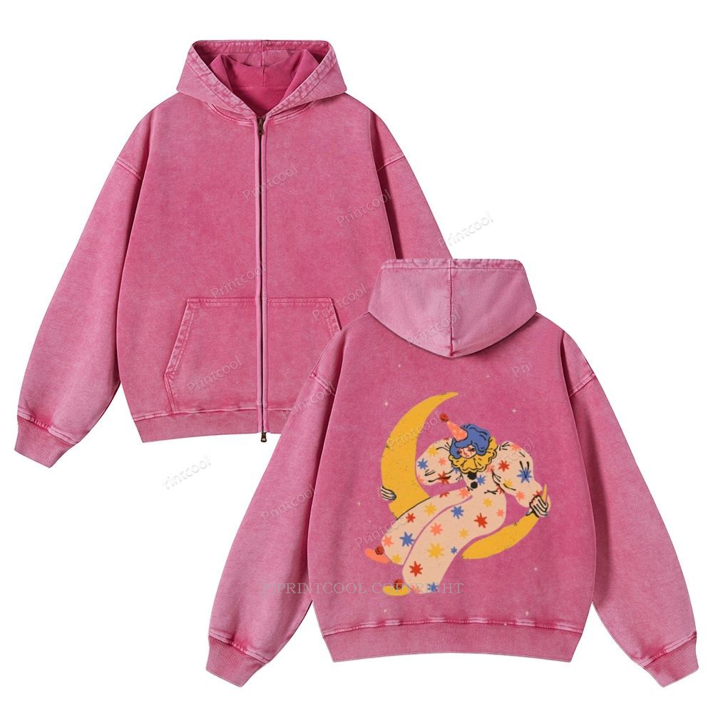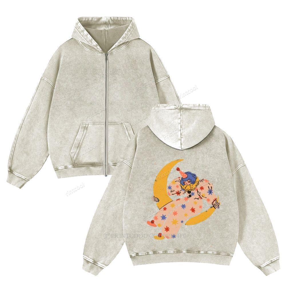 Clown on the Moon Unisex Washed Cotton Zip Up Hoodie