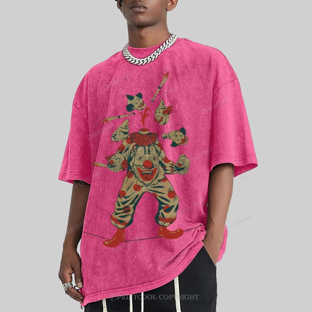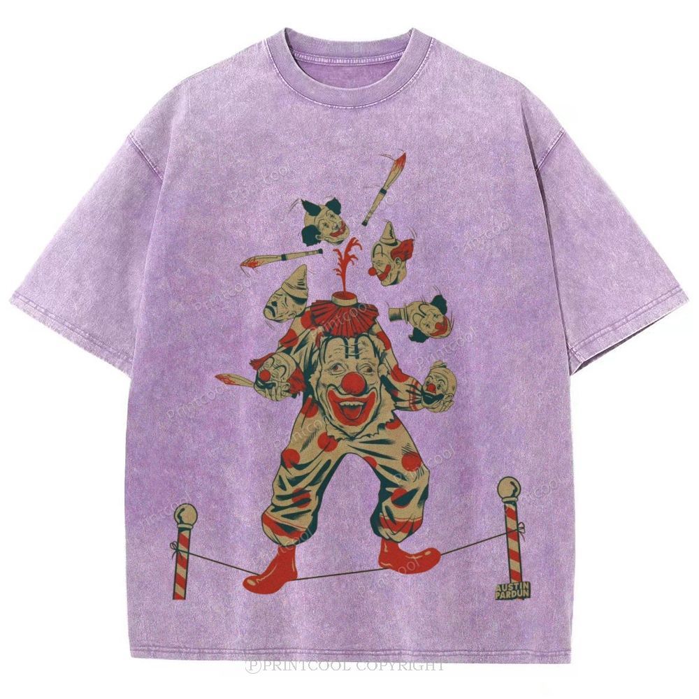 Clown Walking On A Tightrope Unisex Vintage Washed Tee