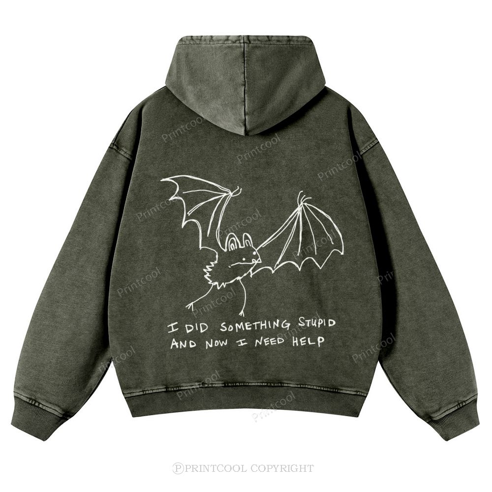 Clumsy Bat Confession Casual Washed Hoodie