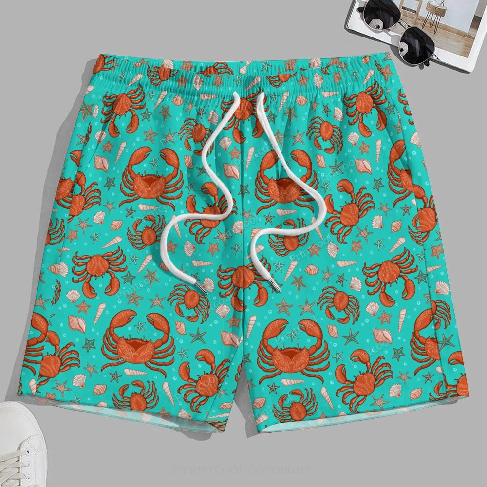 Coastal Crab Shell Pattern Men's Printed Casual Beach Plus Size Shorts