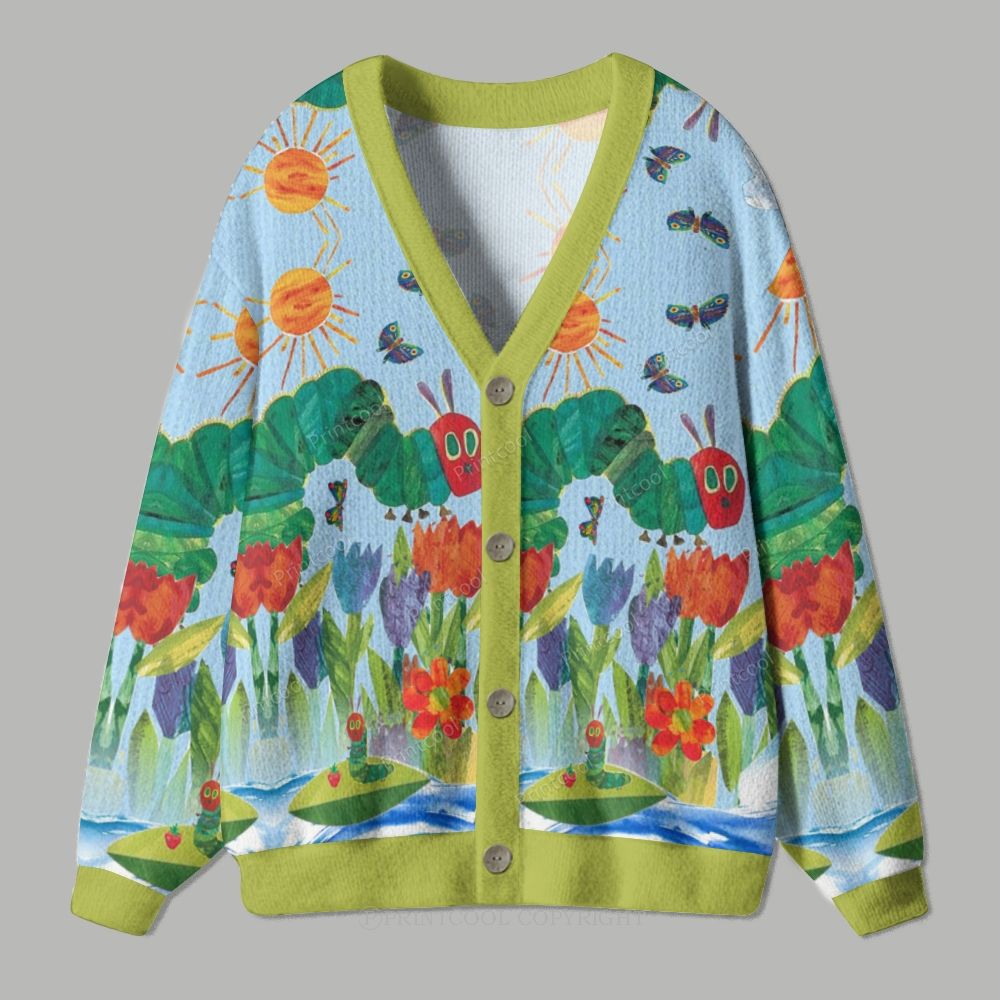 Colorful Insect Flower Field Ugly Cardigan Sweater