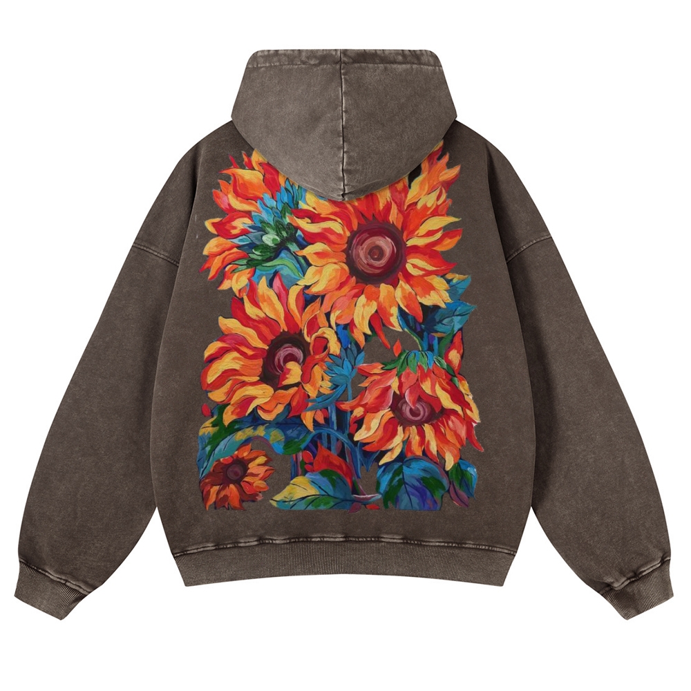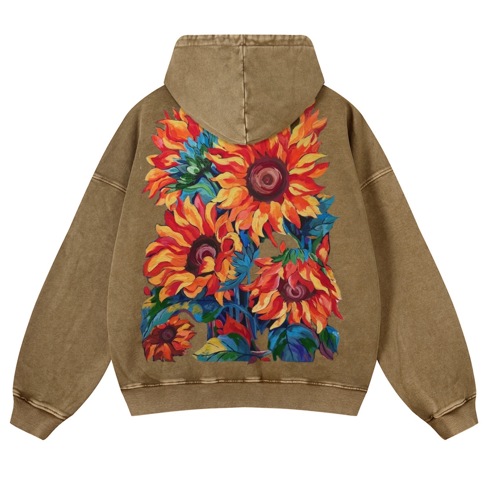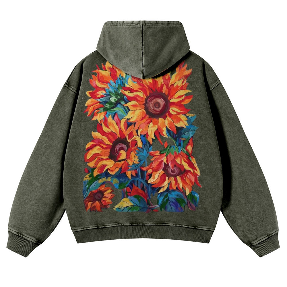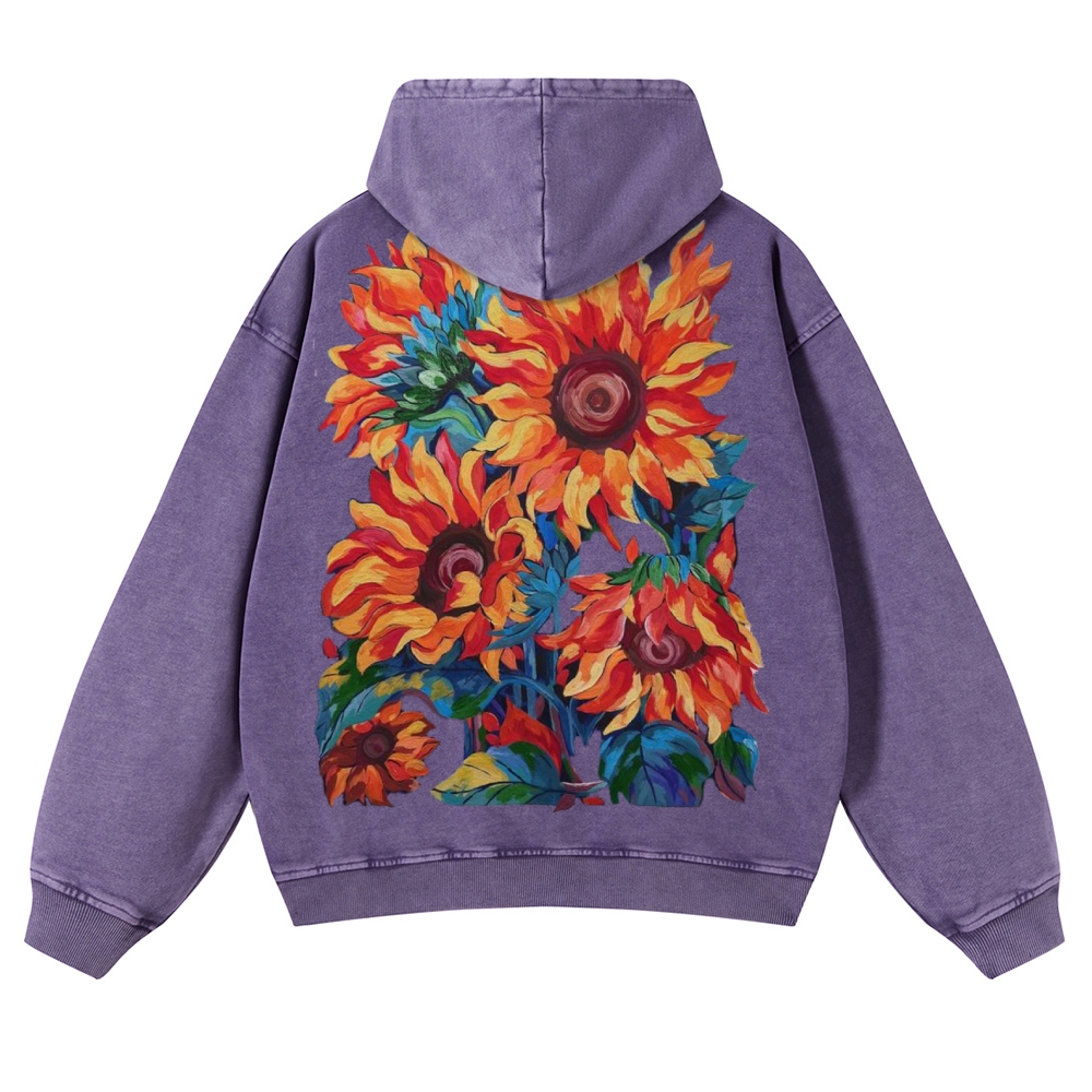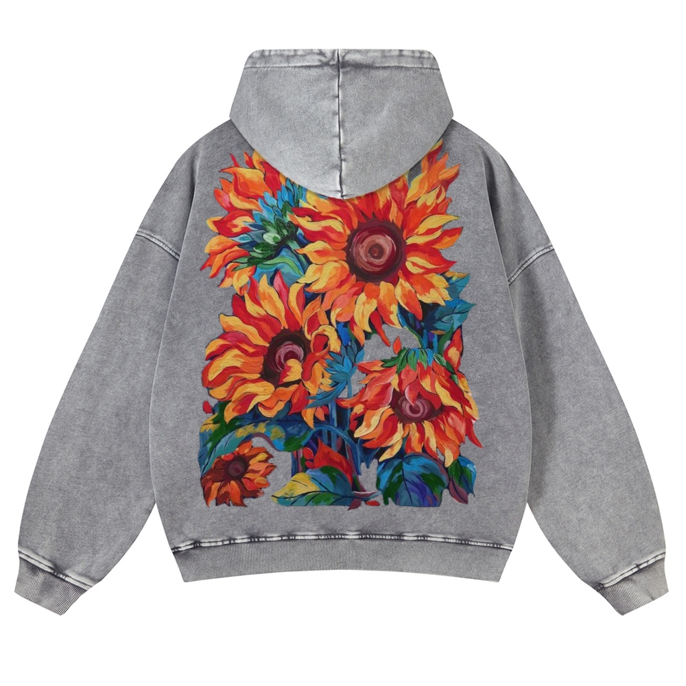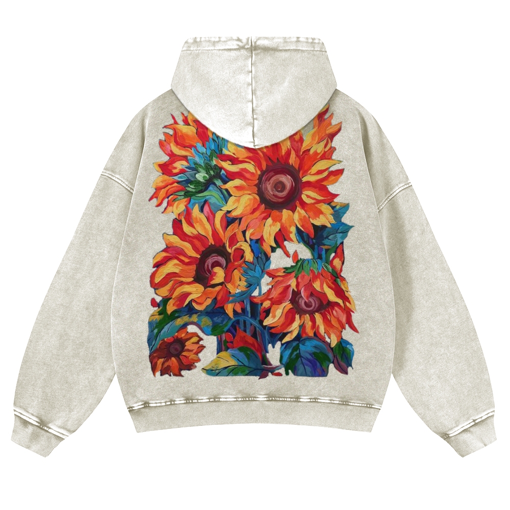 Colorful Sunflowers Back Print Casual Washed Hoodie