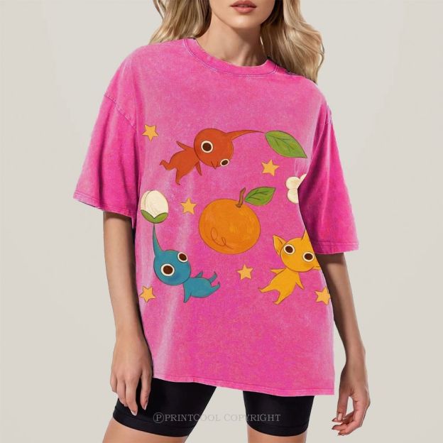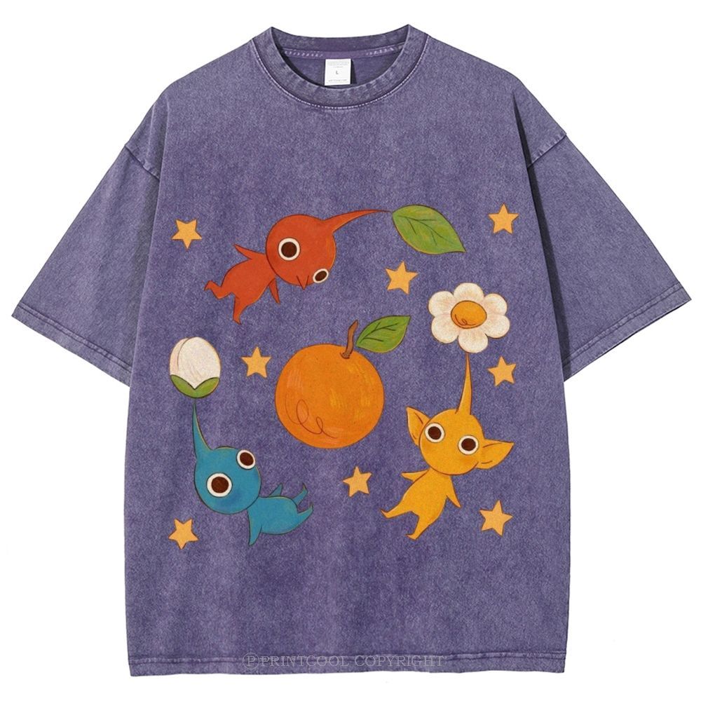 Cute Characters Unisex Vintage Washed Tee