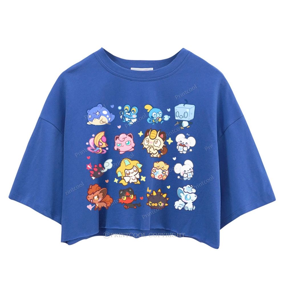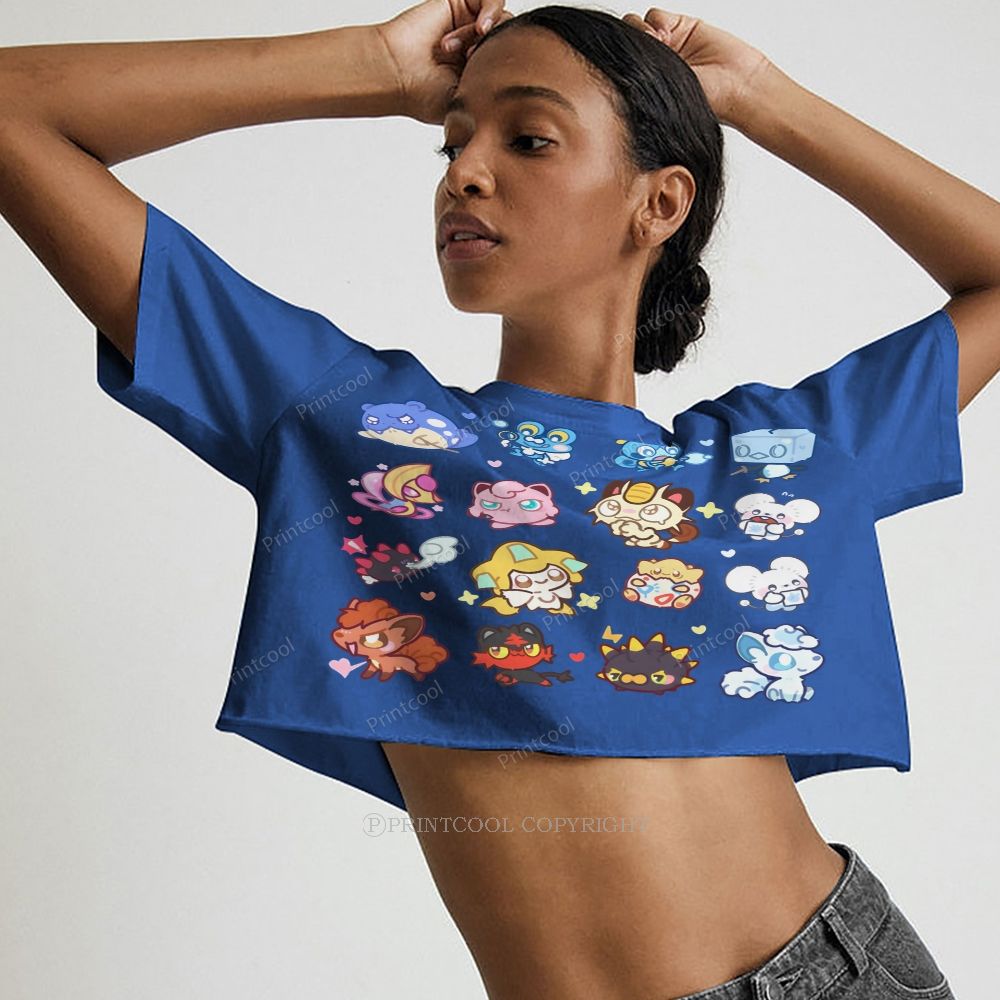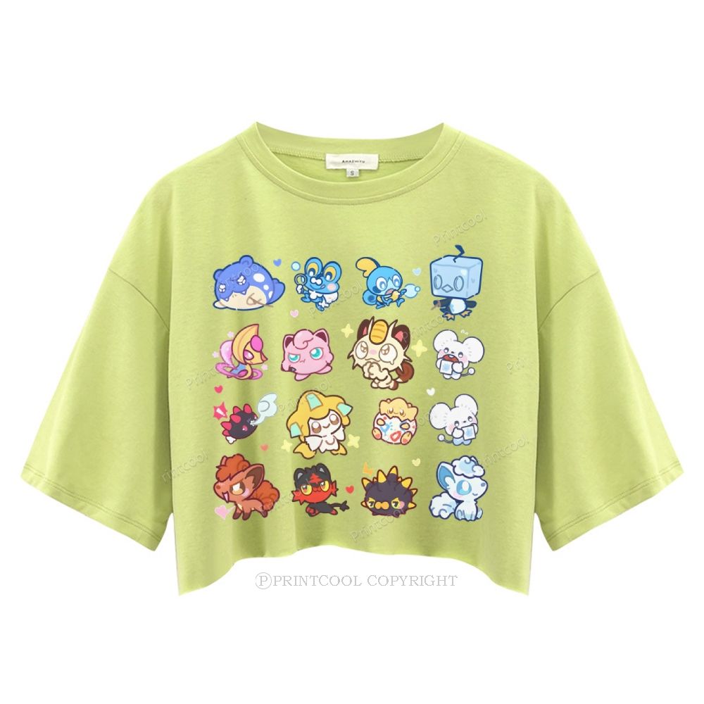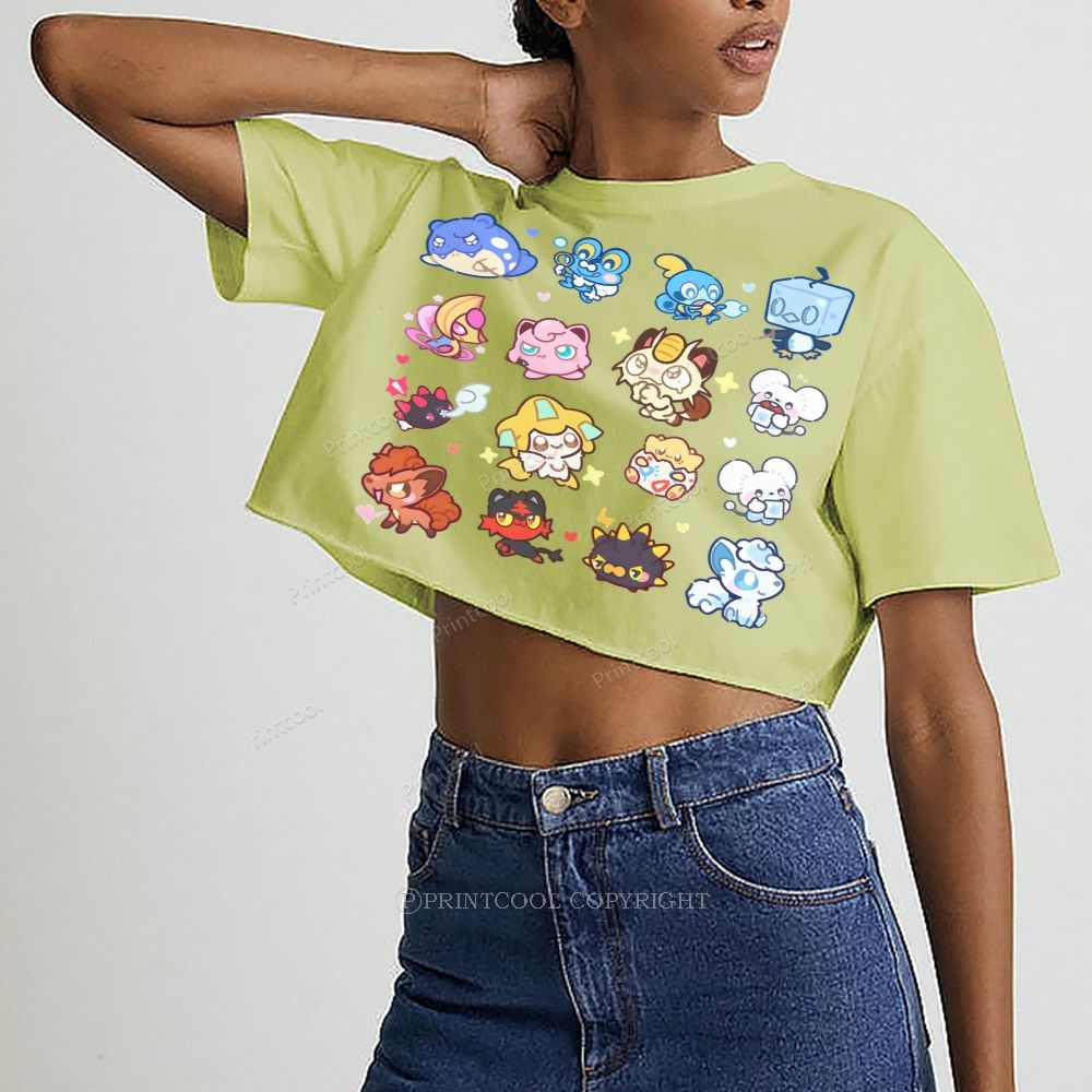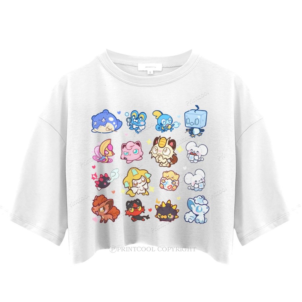 Cute Chibi Pokemon Collage Women's Crop Tops