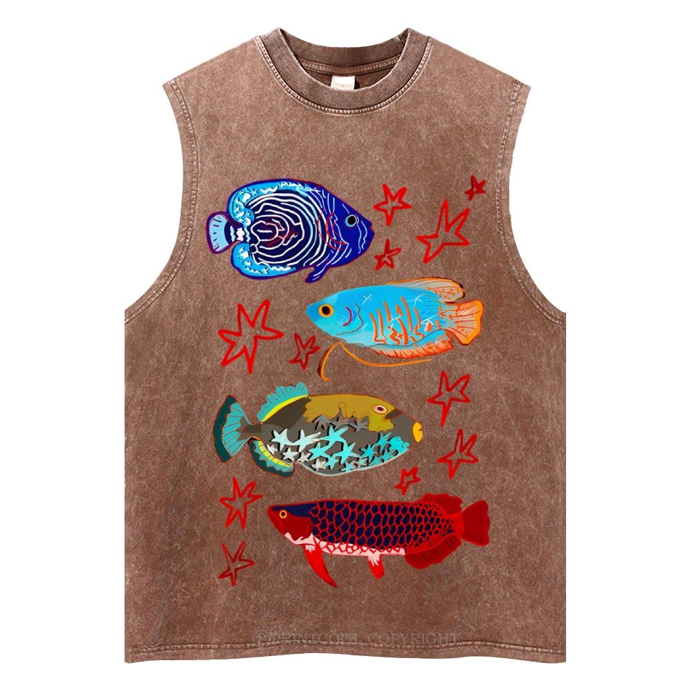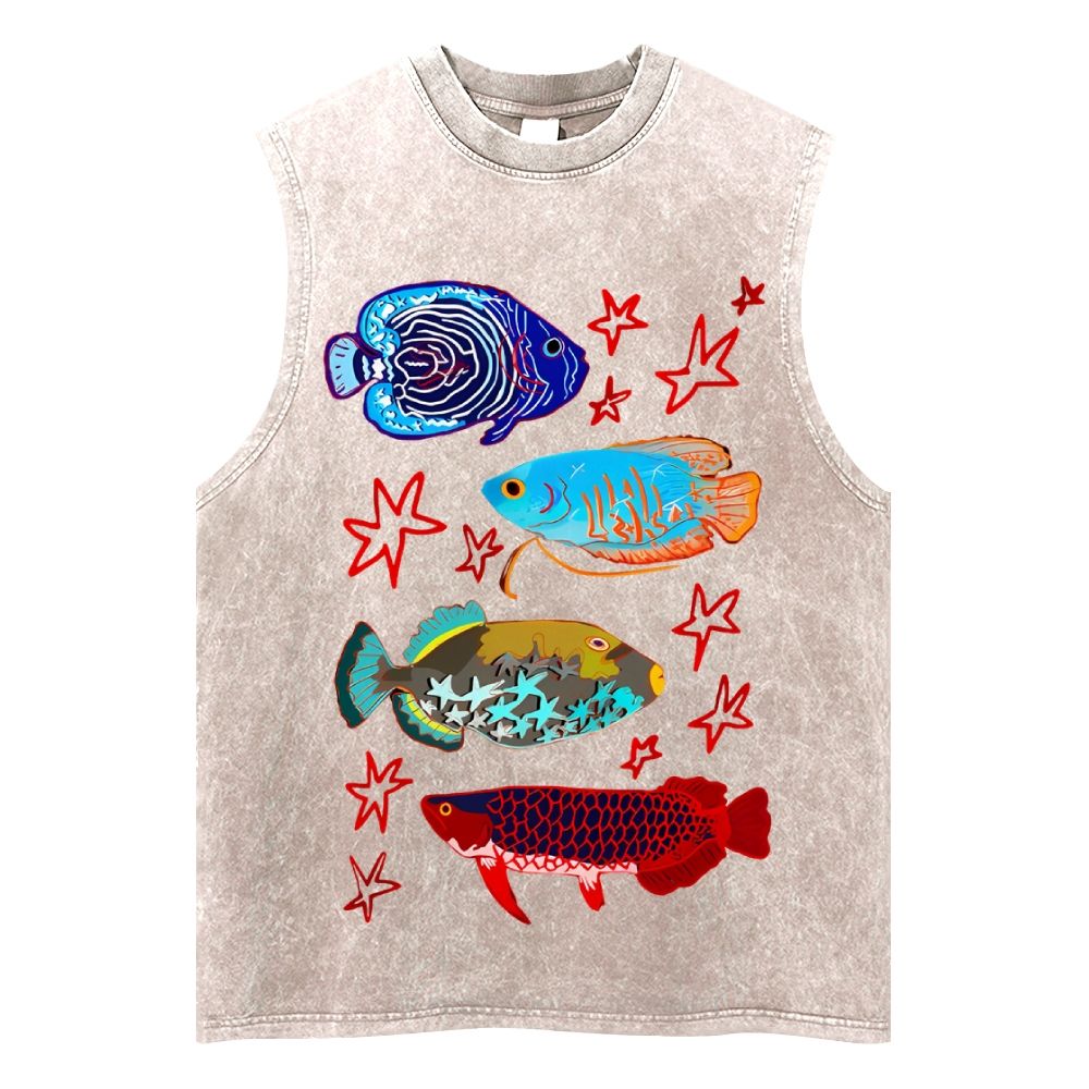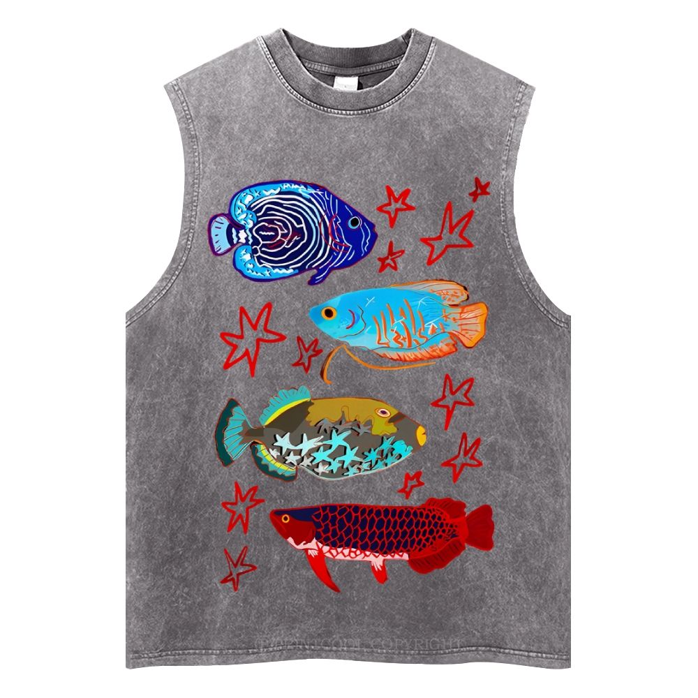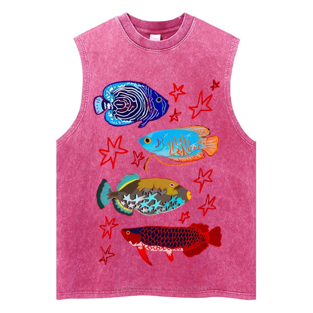 Cute Colorful Fish Unisex Washed Tank Top