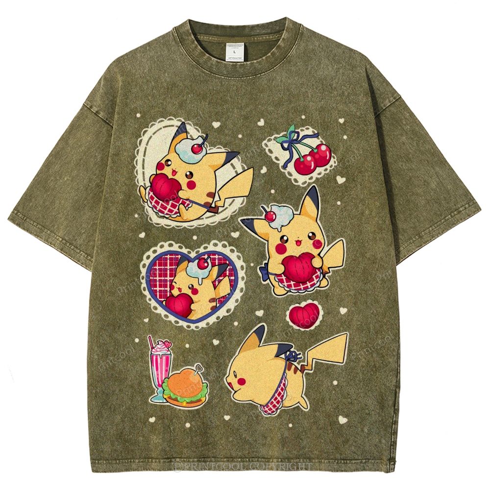 Cute Pikachu Unisex Vintage Washed Tee