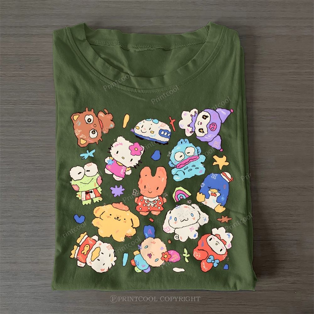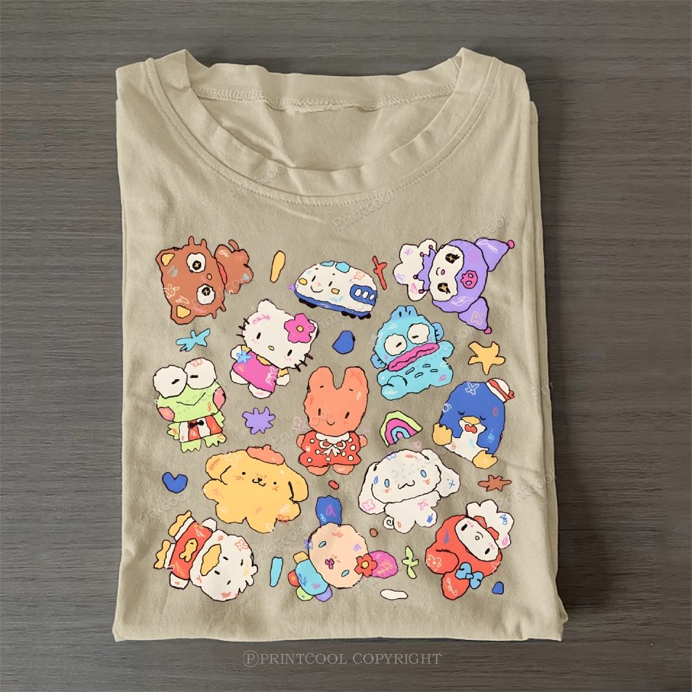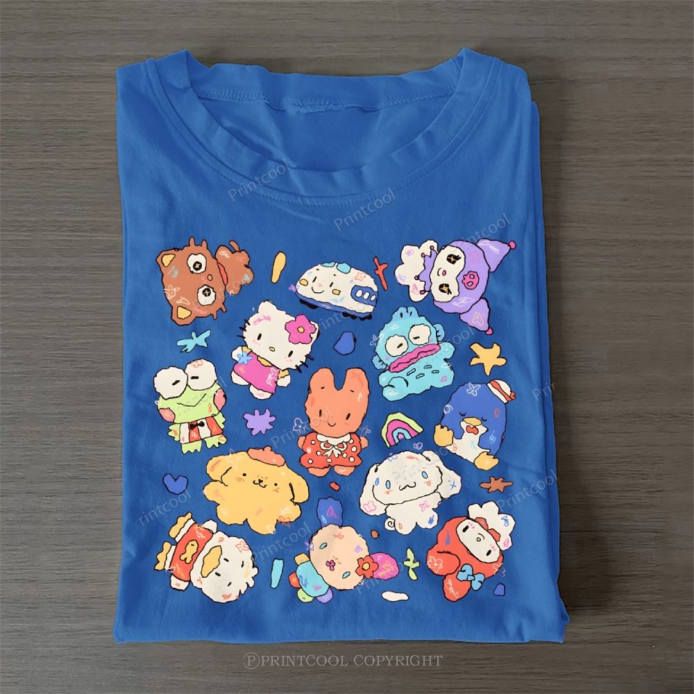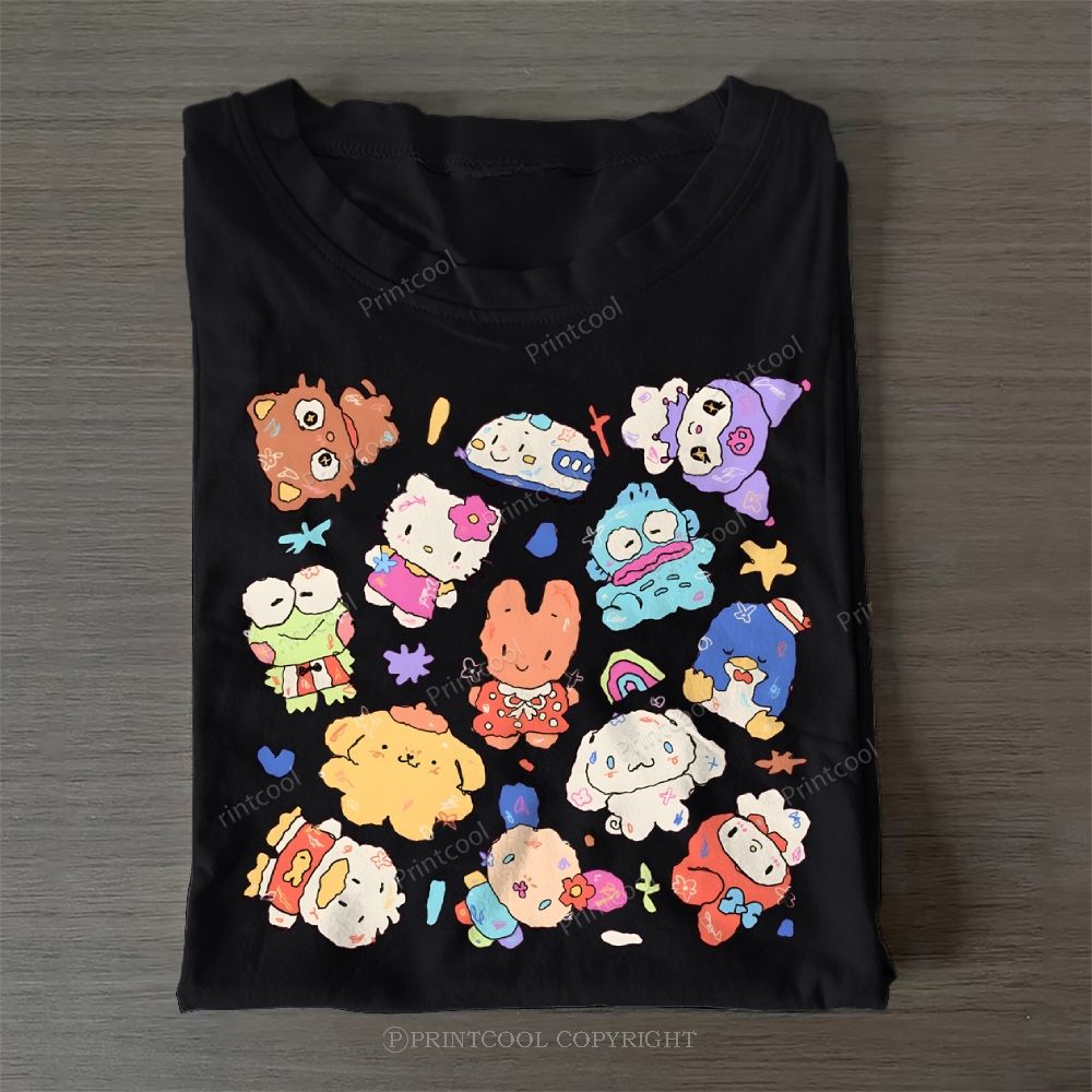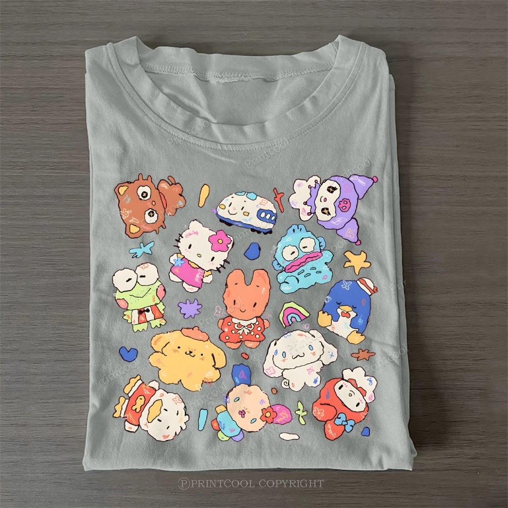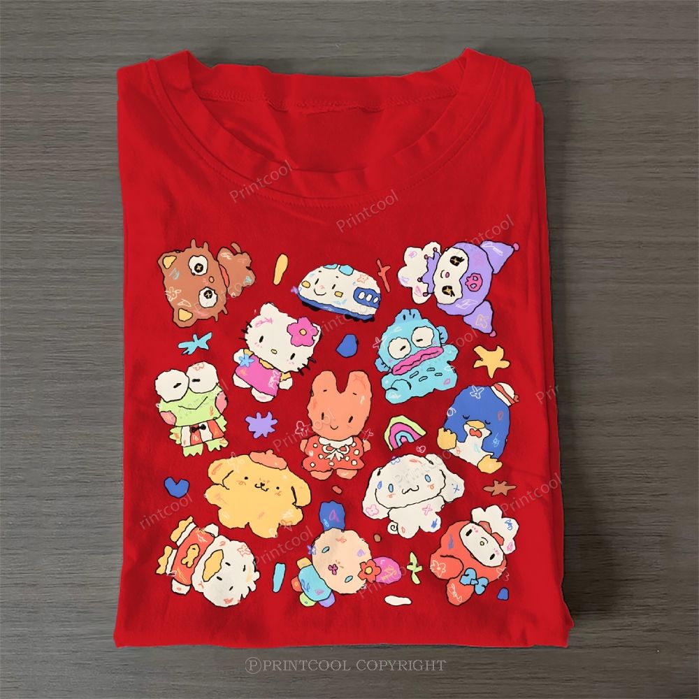 Cute Sanrio Mascot Extravaganza Casual Cotton T-Shirt