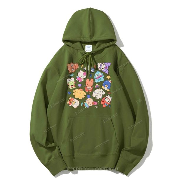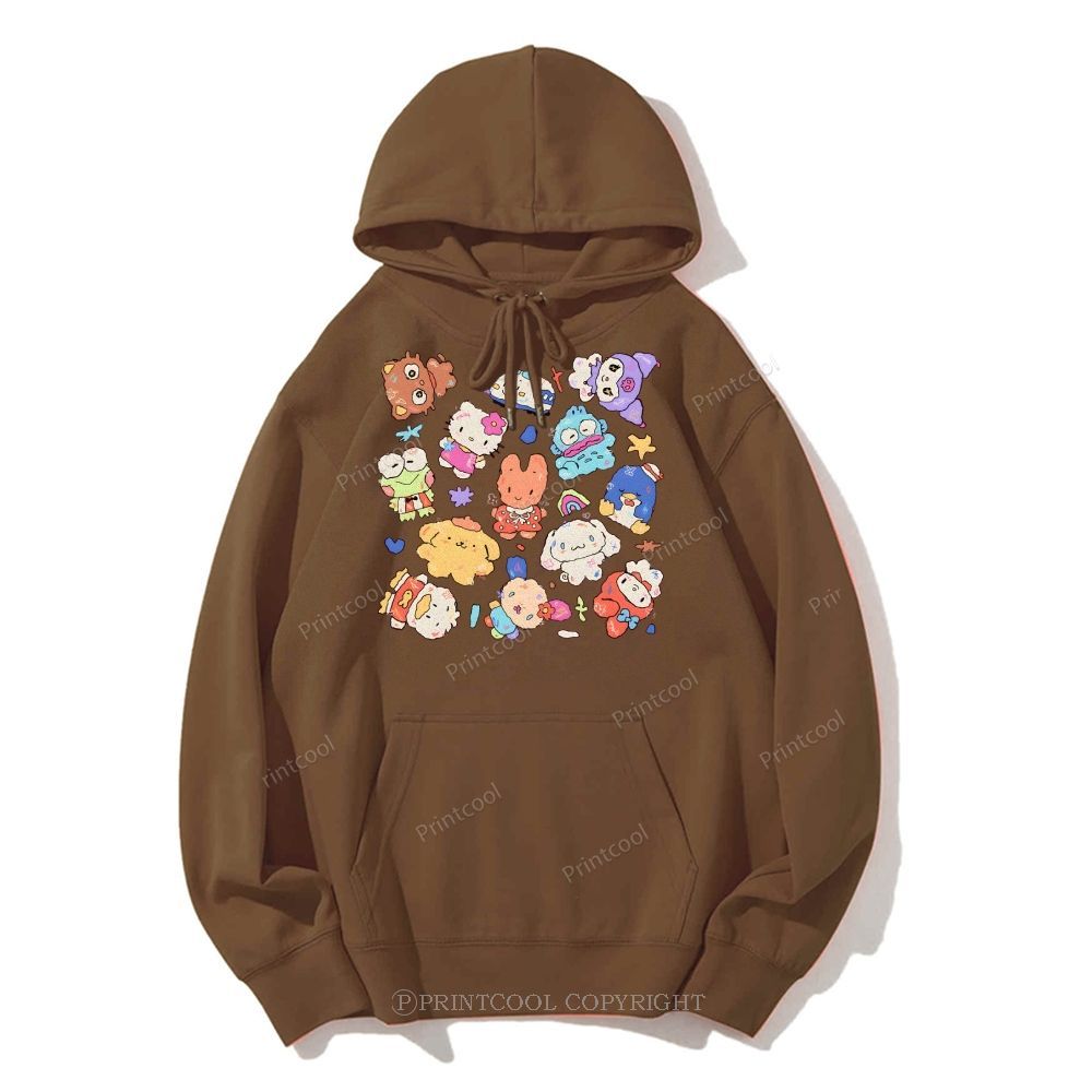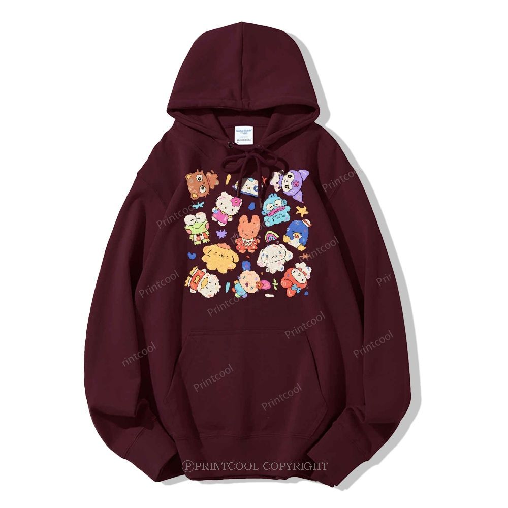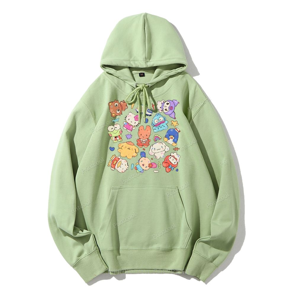 Cute Sanrio Mascot Extravaganza Unisex Casual Solid Color Hoodie