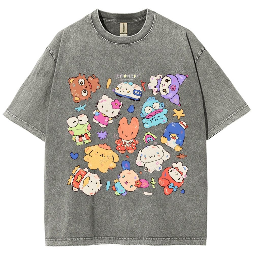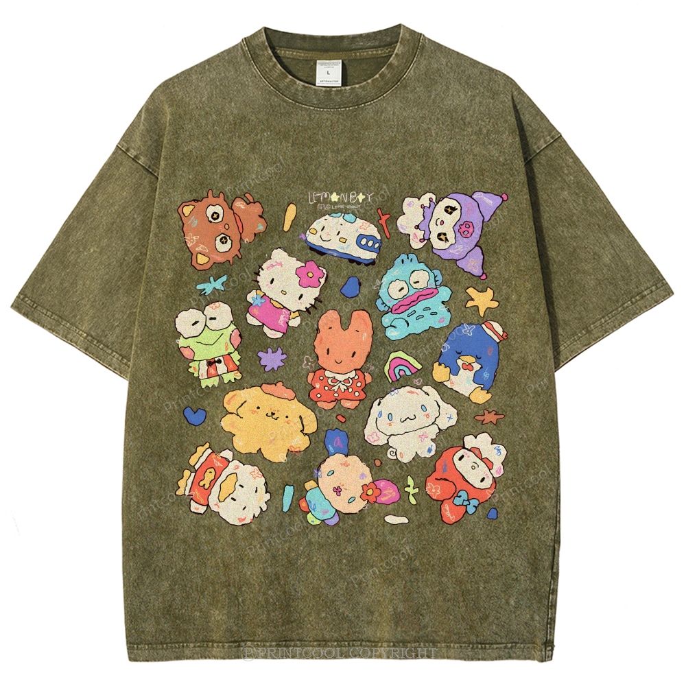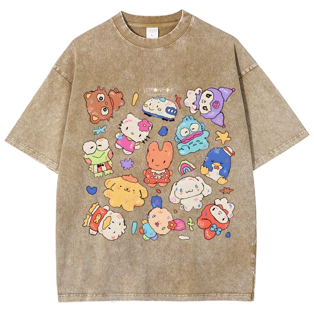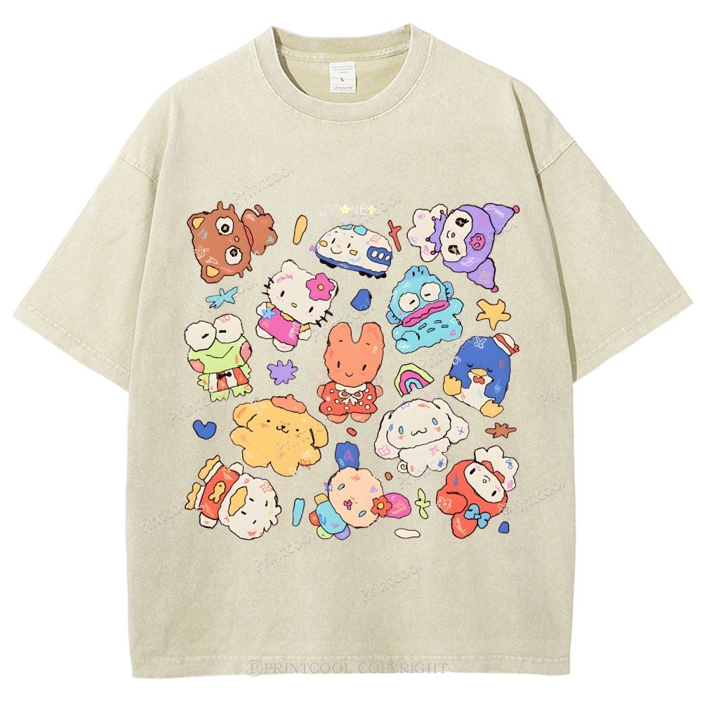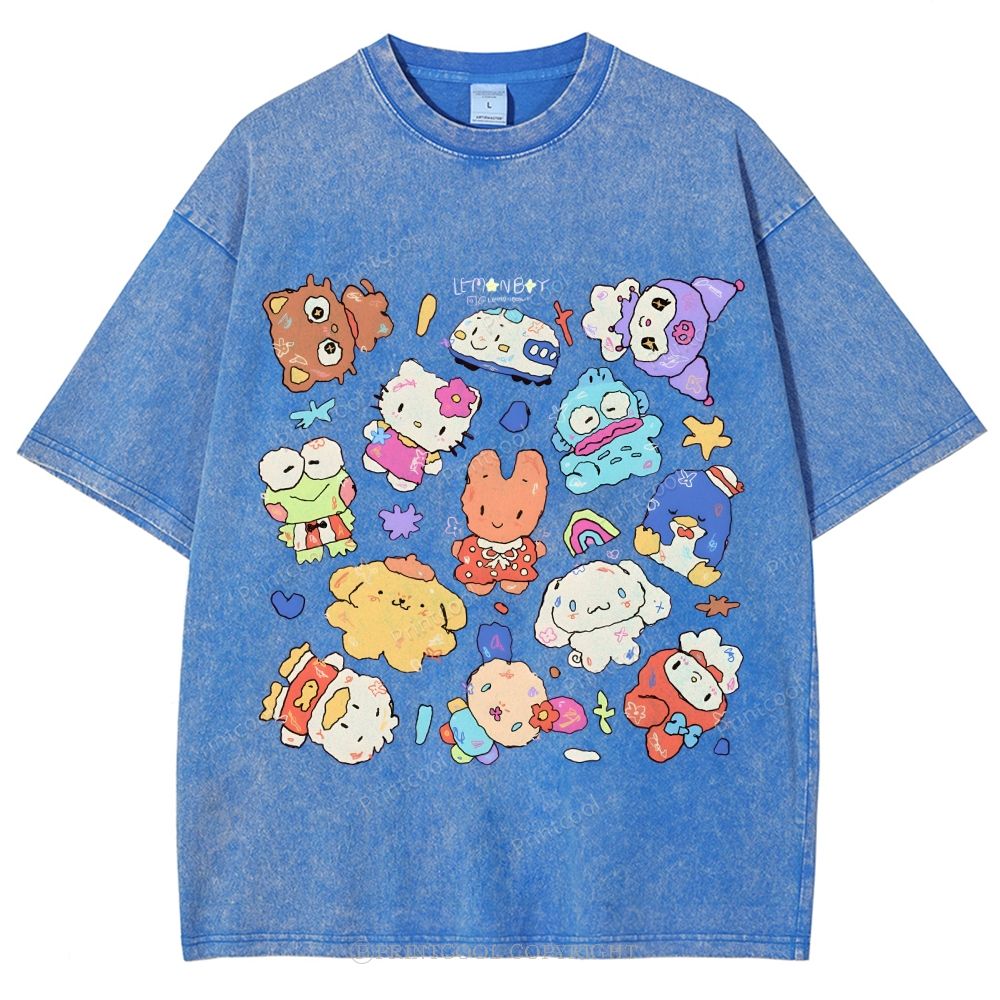Cute Sanrio Mascot Extravaganza Unisex Vintage Washed Tee