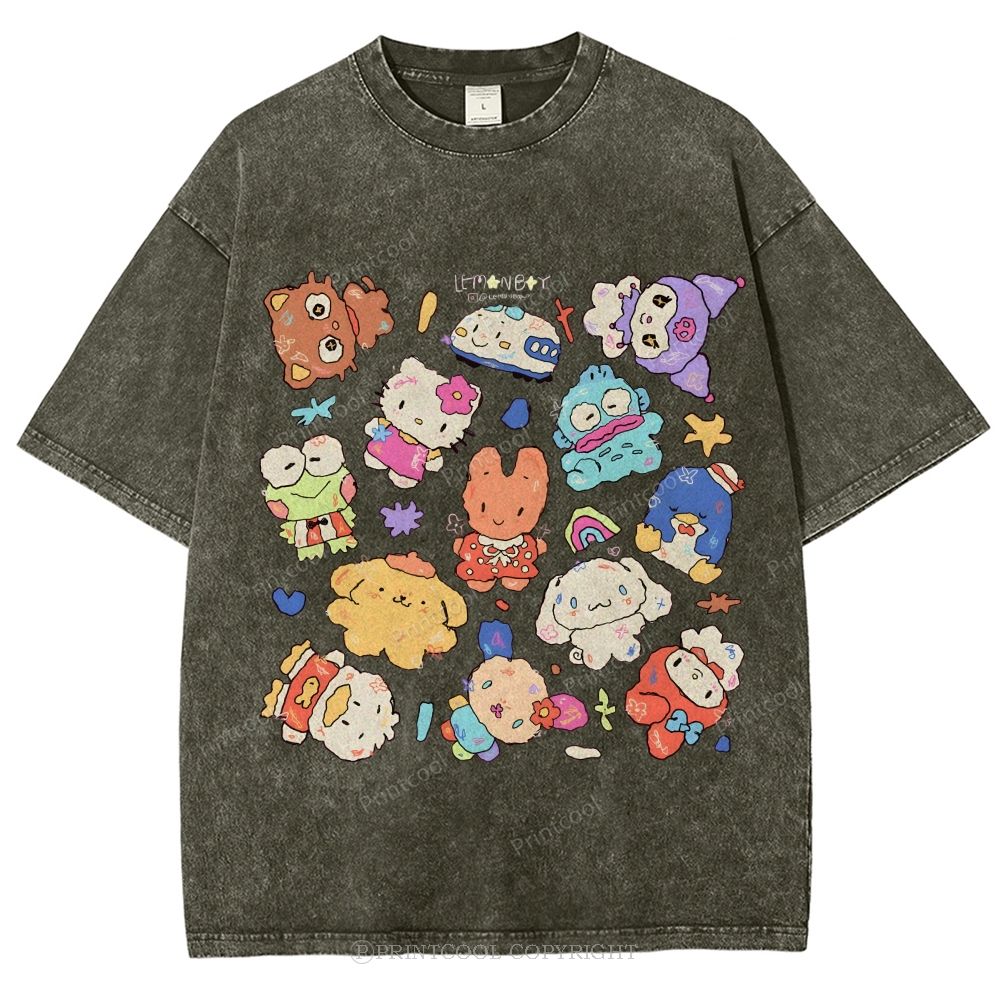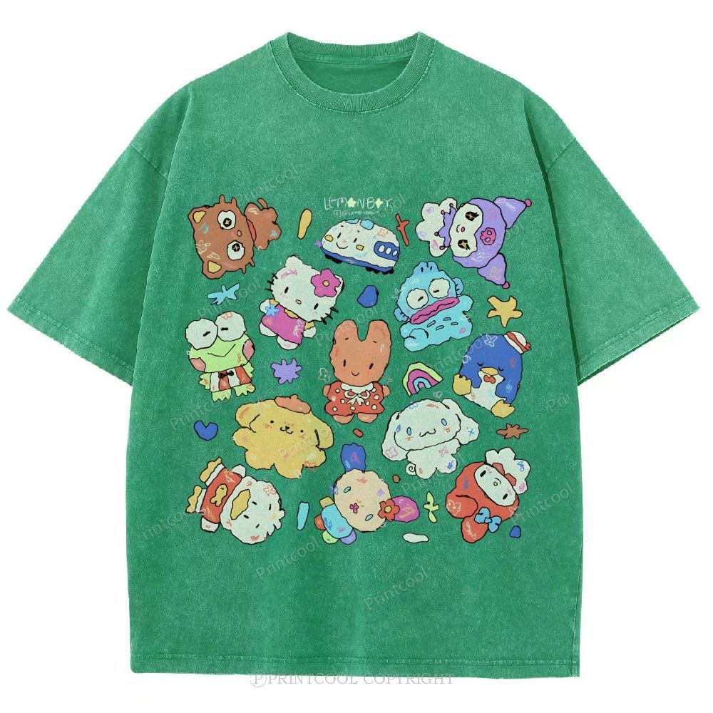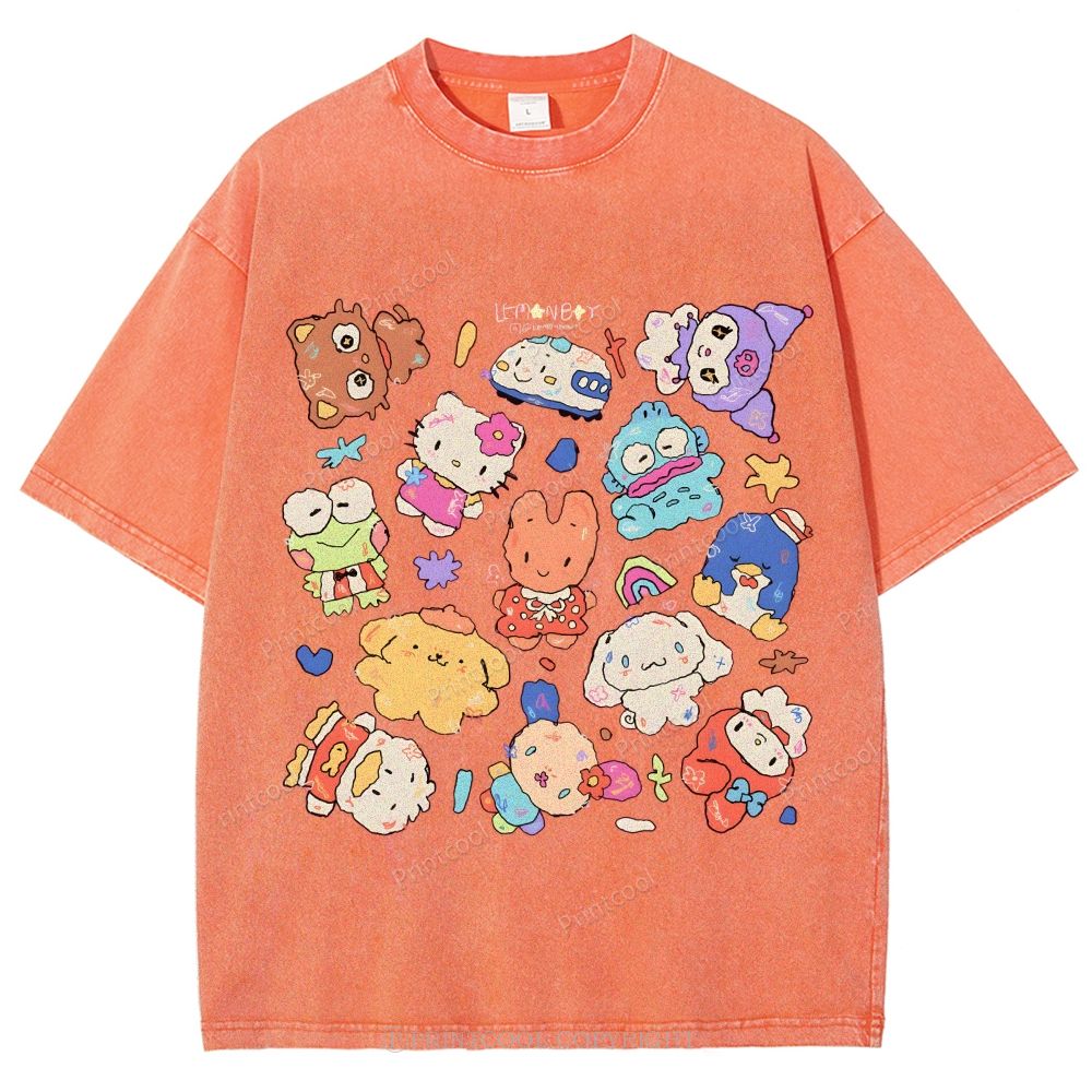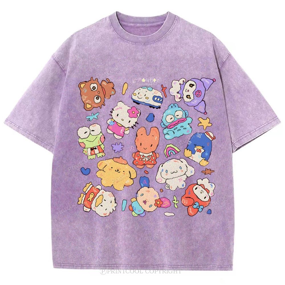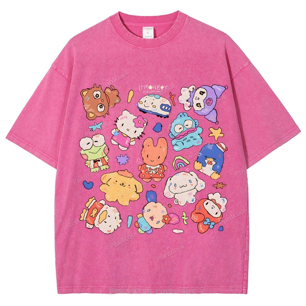 Cute Sanrio Mascot Extravaganza Unisex Vintage Washed Tee