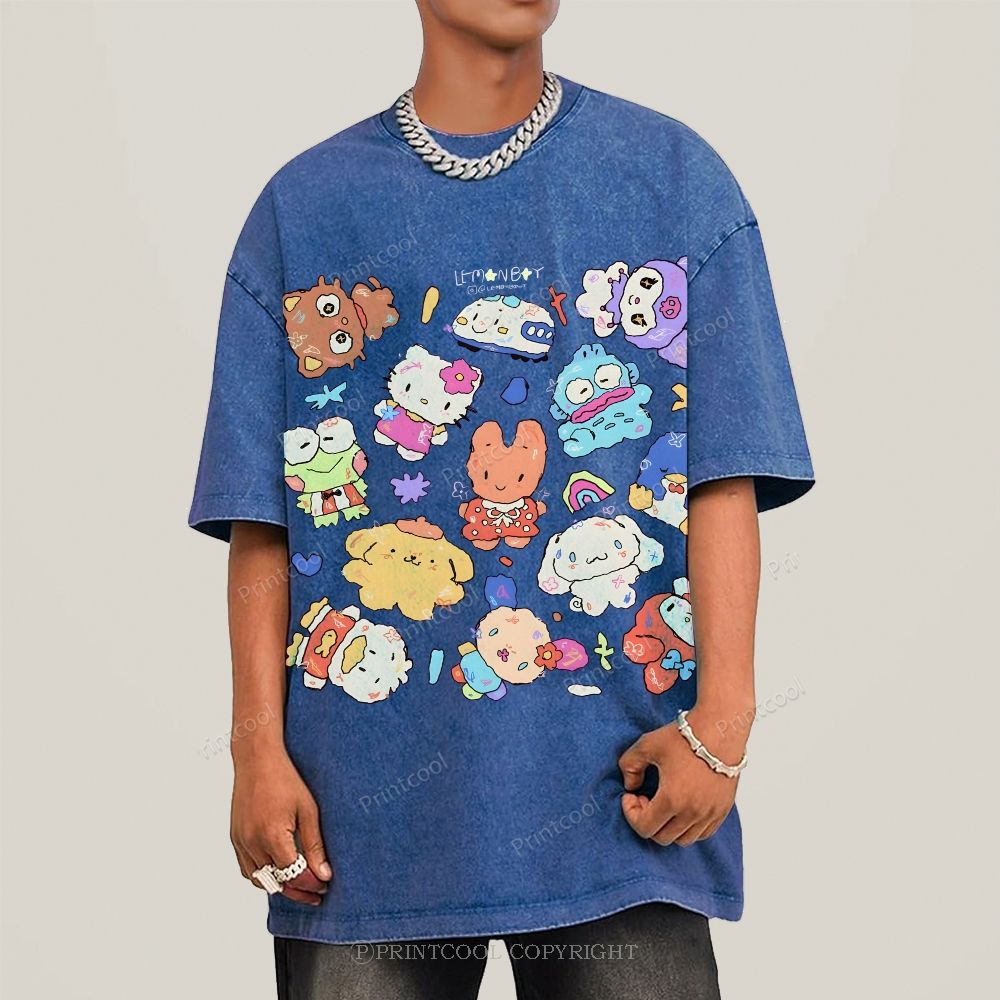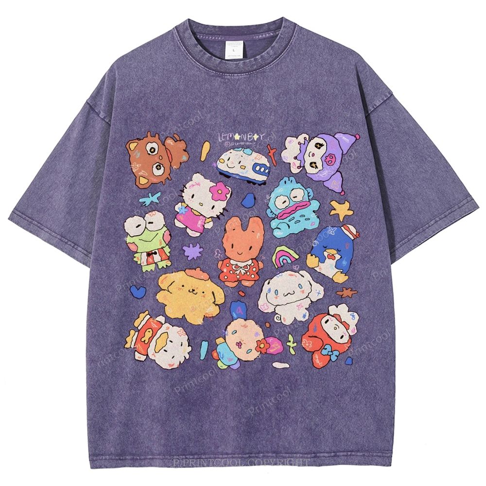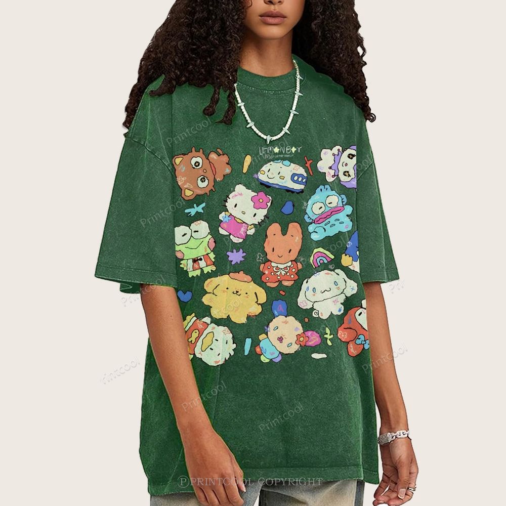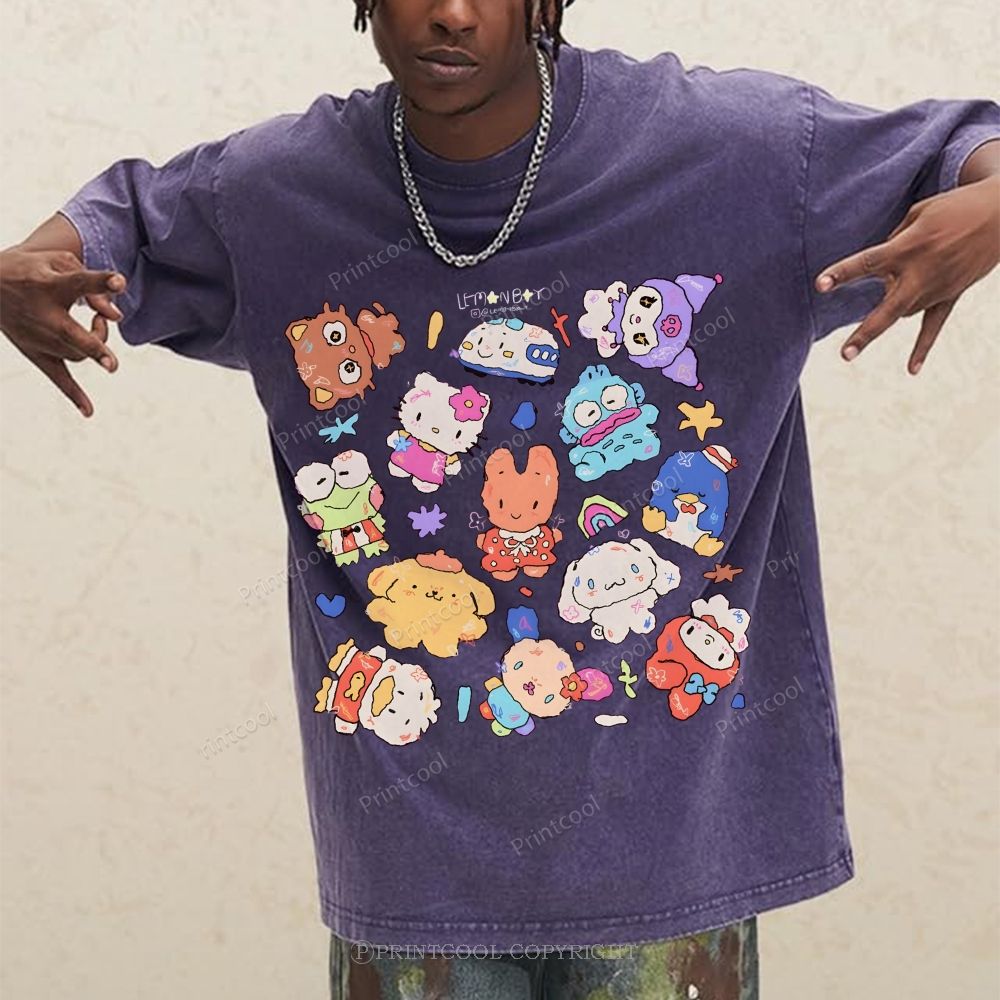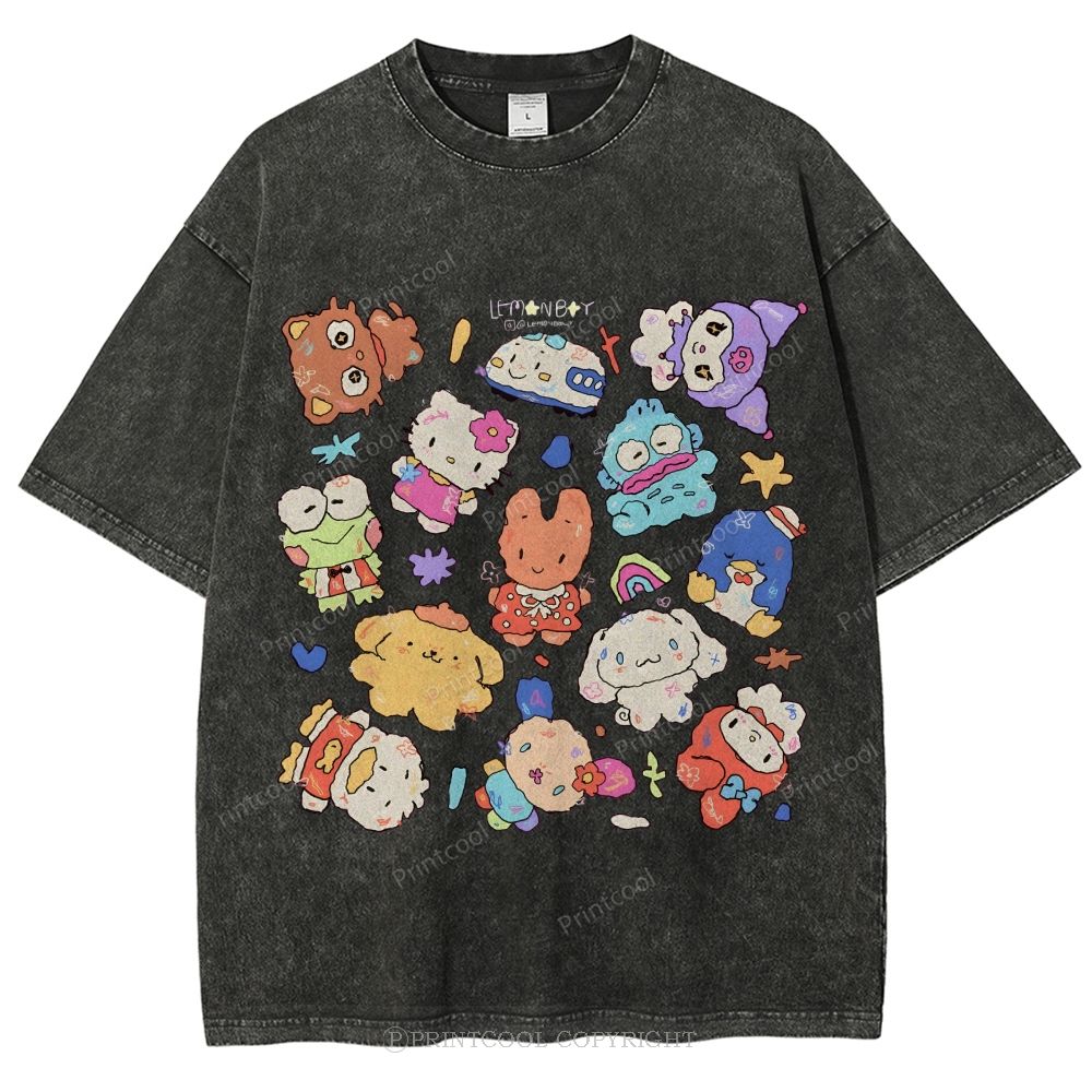 Cute Sanrio Mascot Extravaganza Unisex Vintage Washed Tee