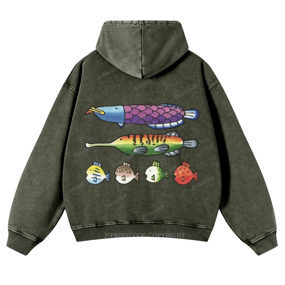 Cute Wii Fish Artistic Illustration Casual Washed Hoodie