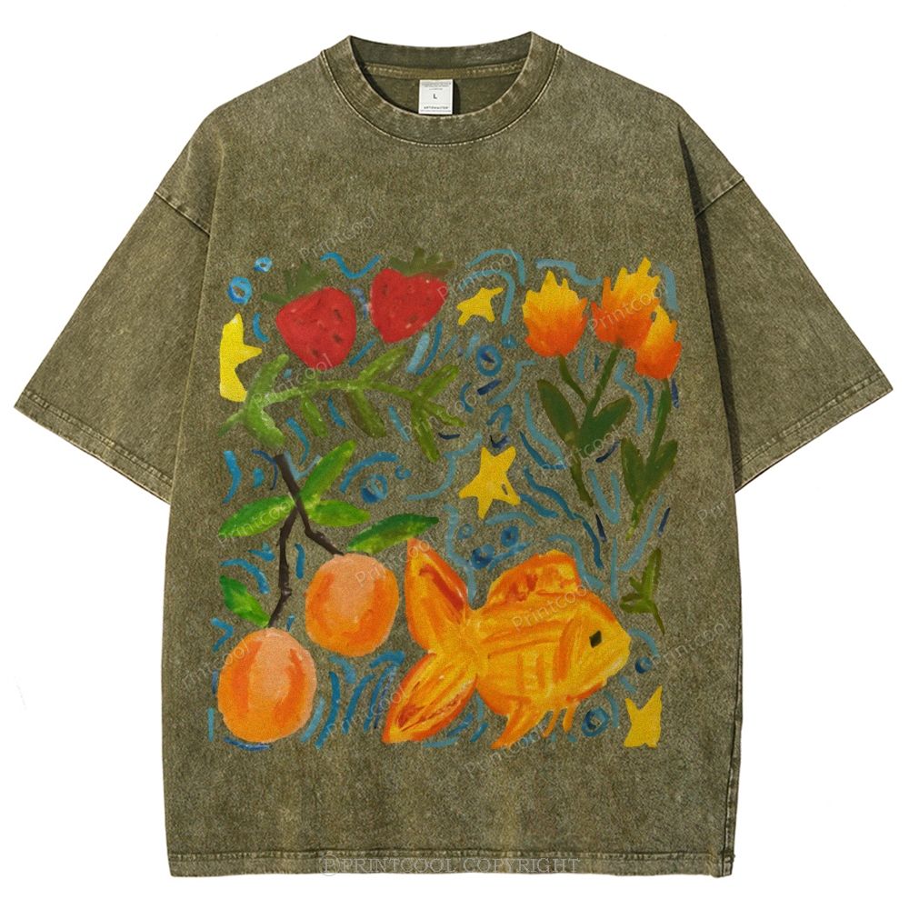 Fish Swimming Under Plants Unisex Vintage Washed Tee