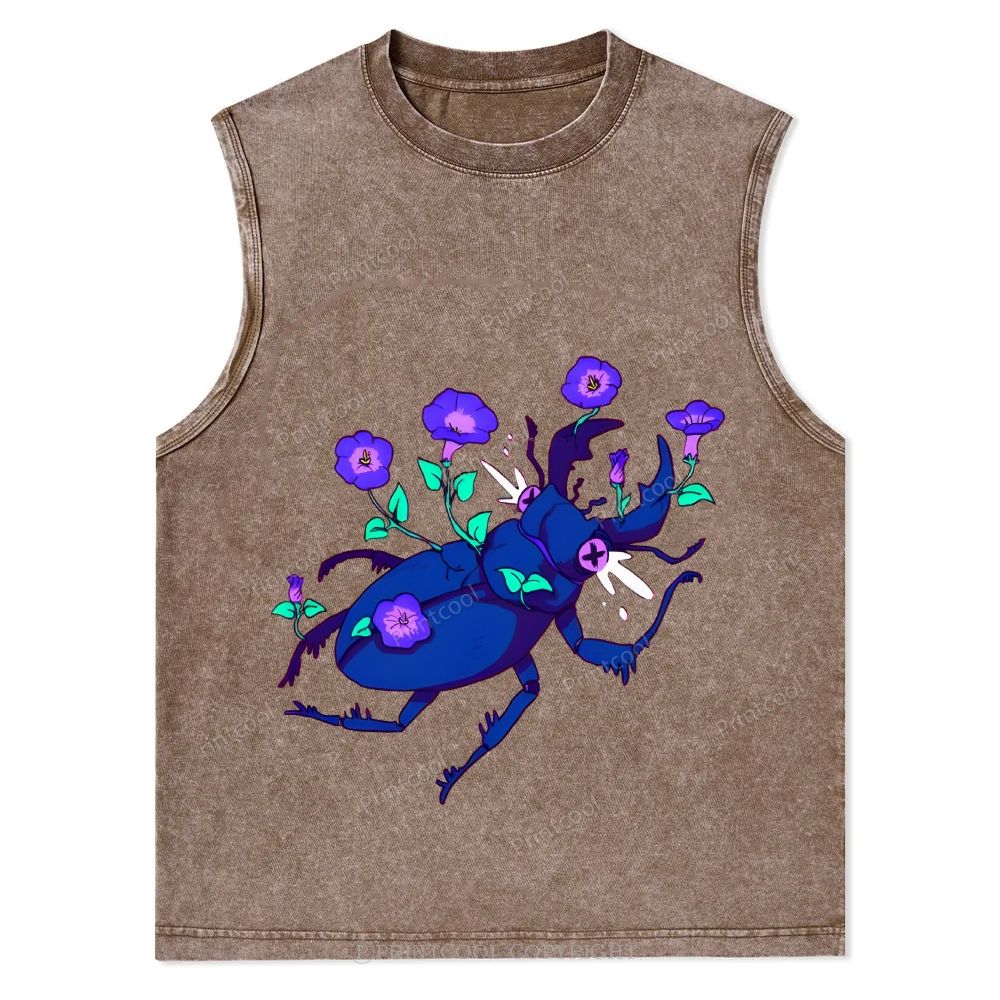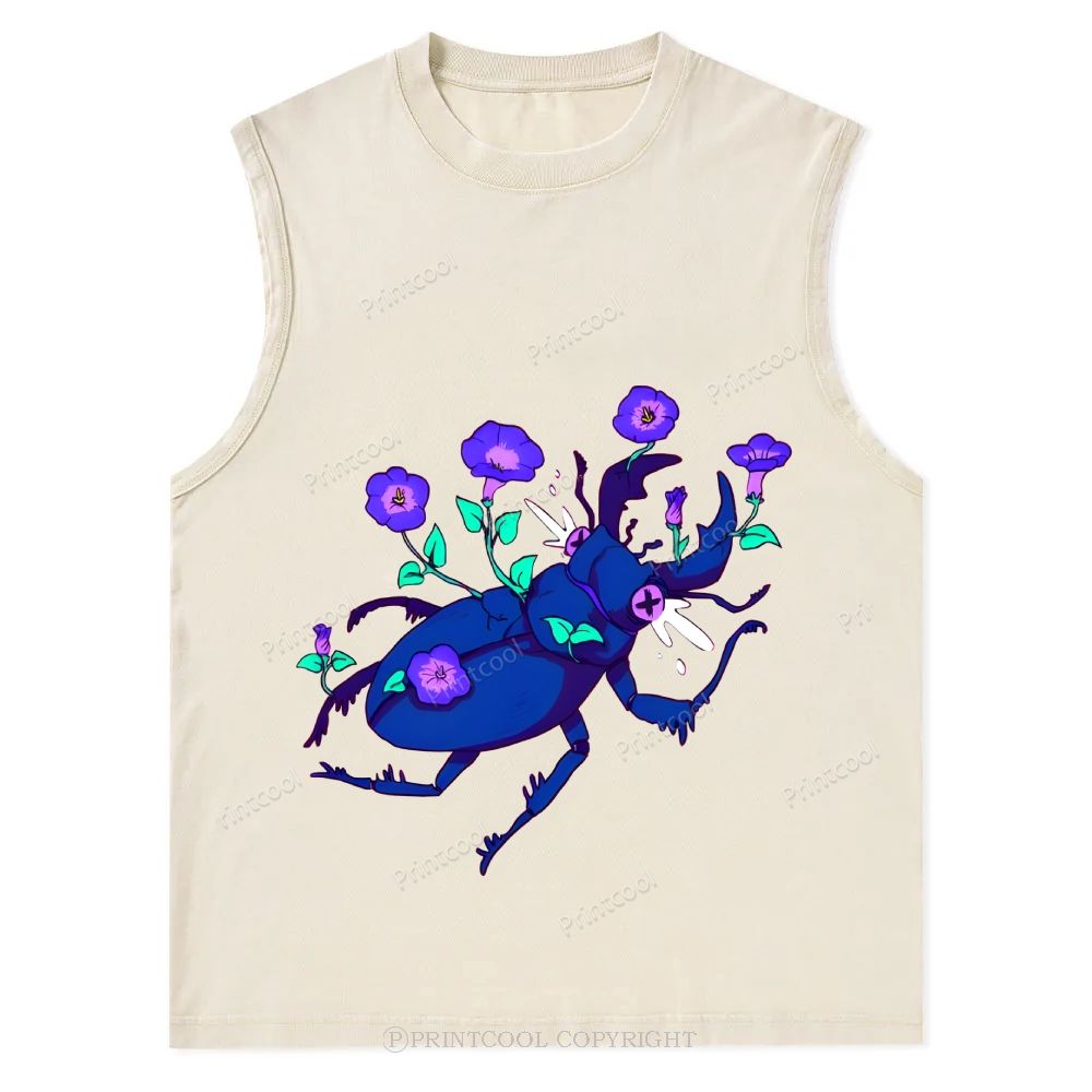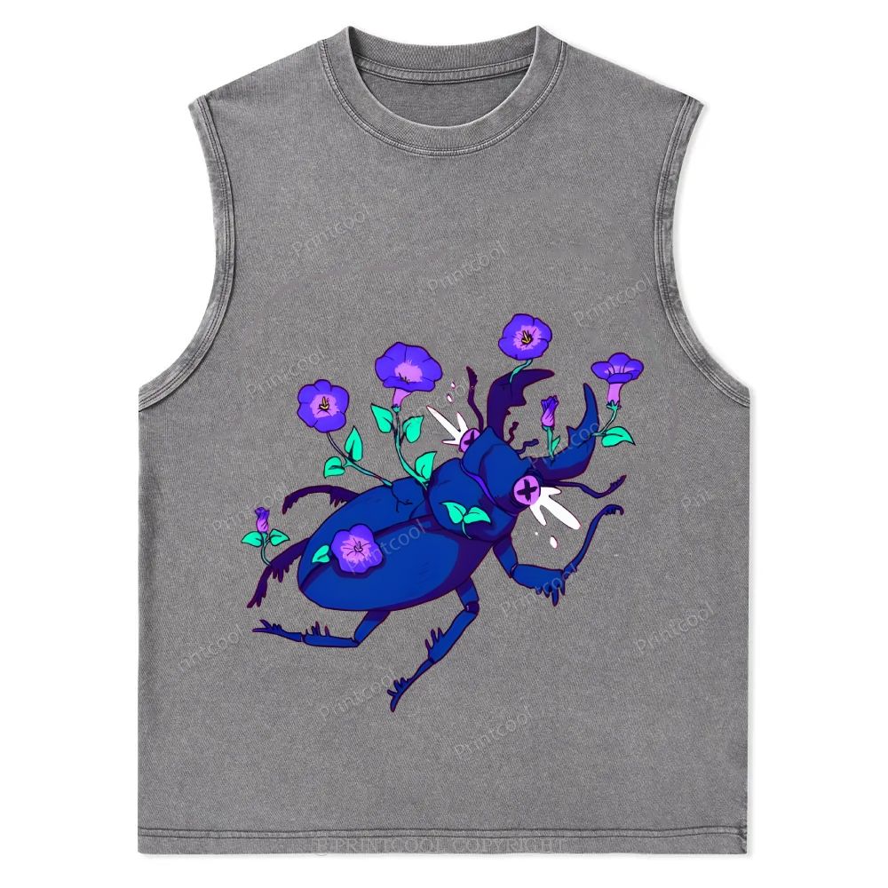 Flowers And Stag Beetles Unisex Washed Tank Top
