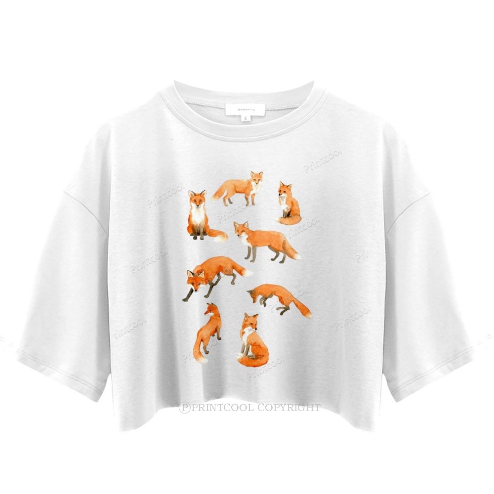 Foxes In Different Poses Women's Crop Tops
