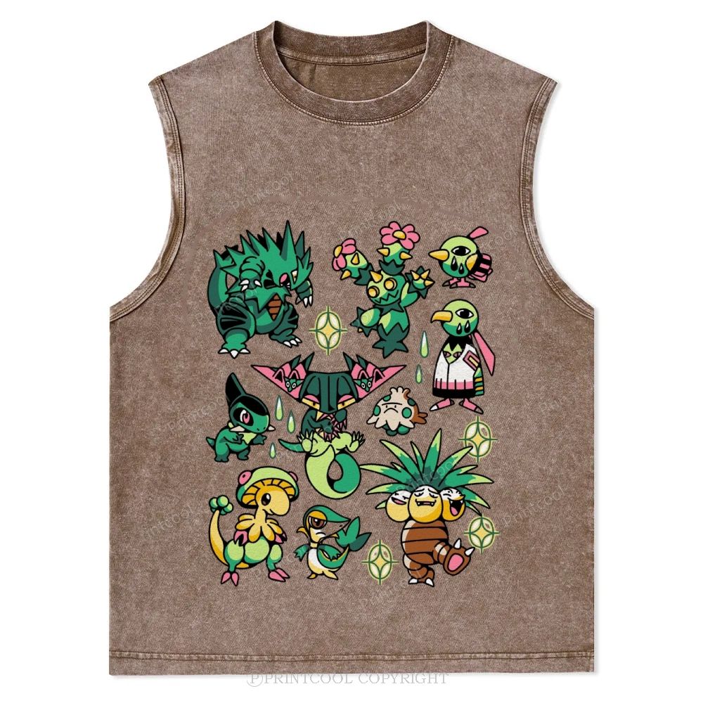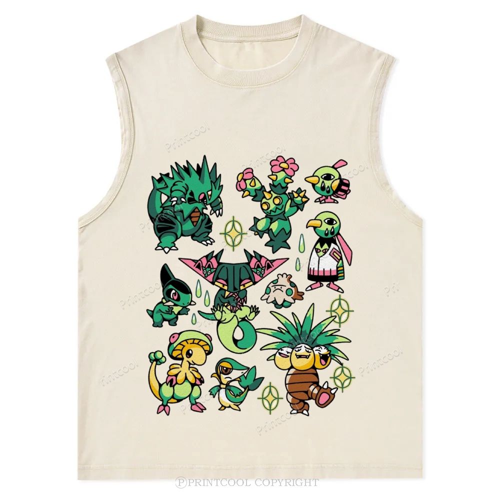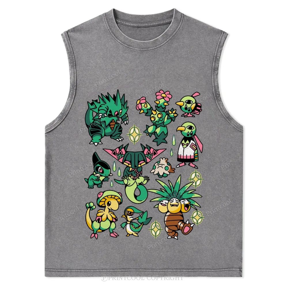 Green Grass Dragon & Tropical Pokemon Unisex Washed Tank Top