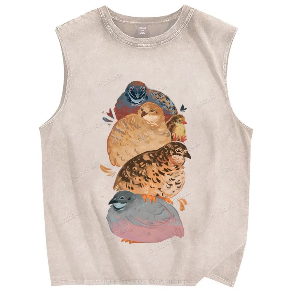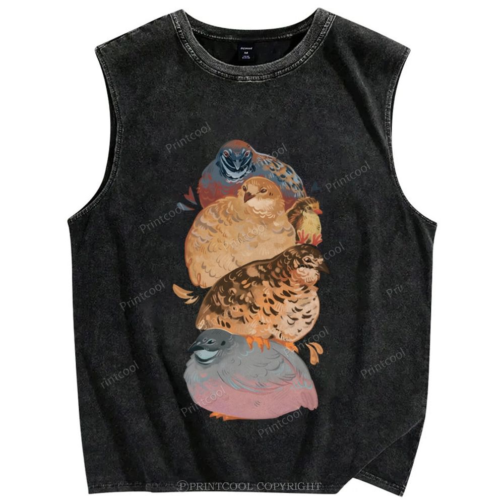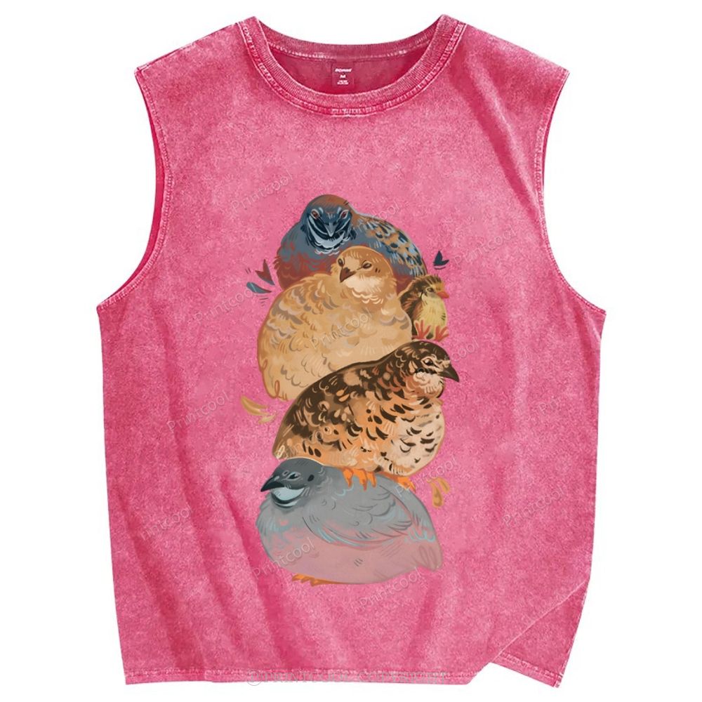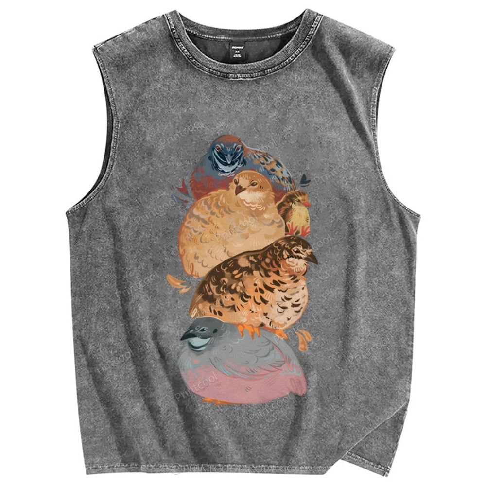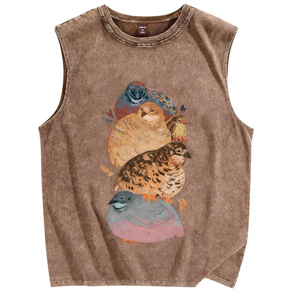 Group of Quail Like Birds Unisex Printed Washed Tank Top