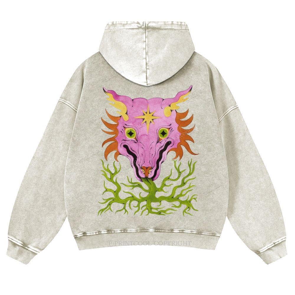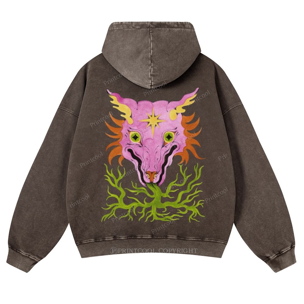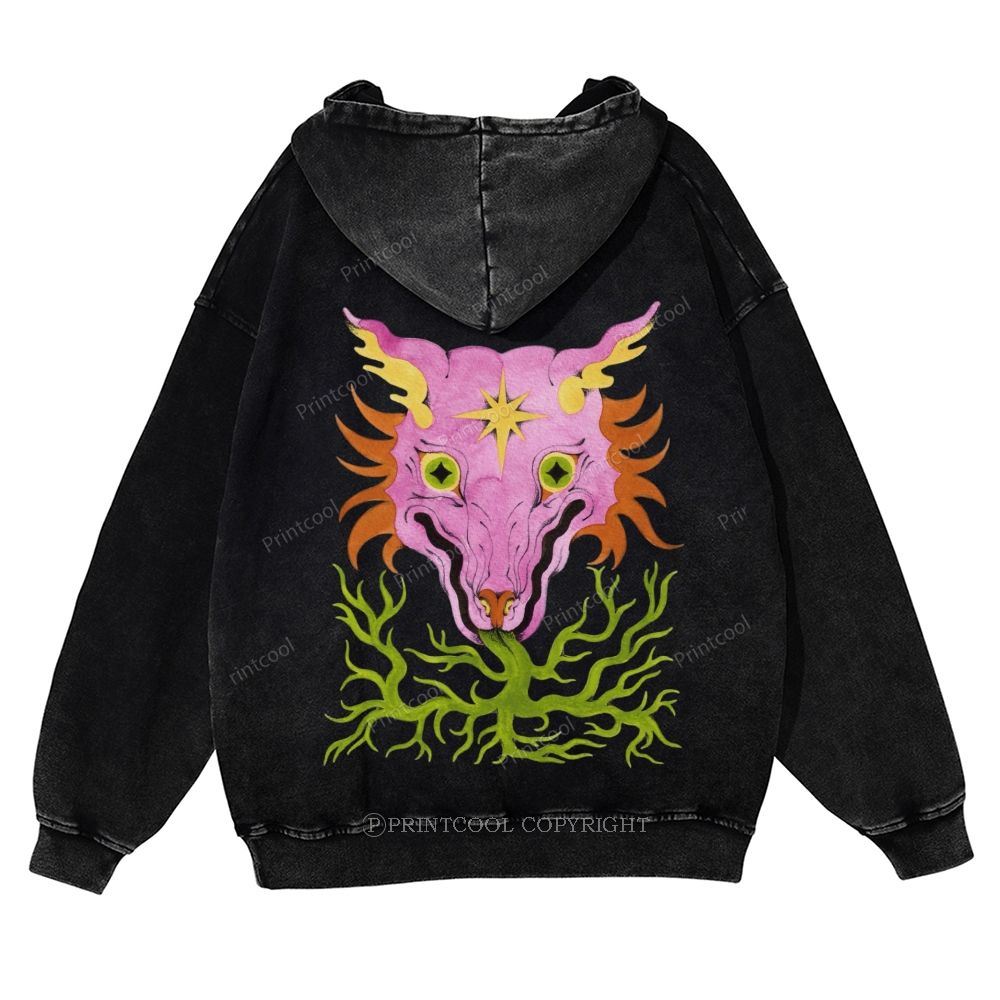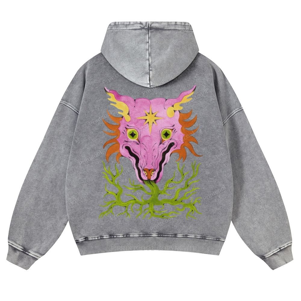 Horrible Mysterious Creature Unisex Washed Cotton Zip Up Hoodie