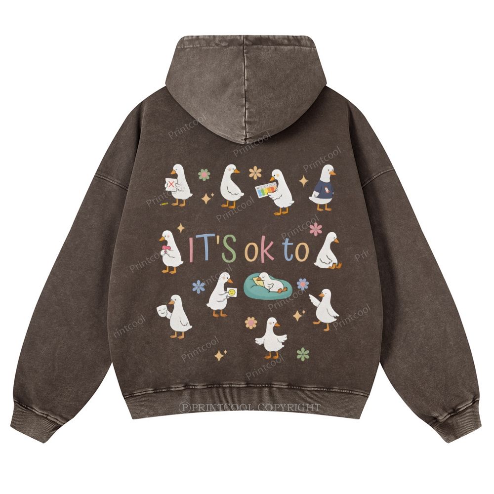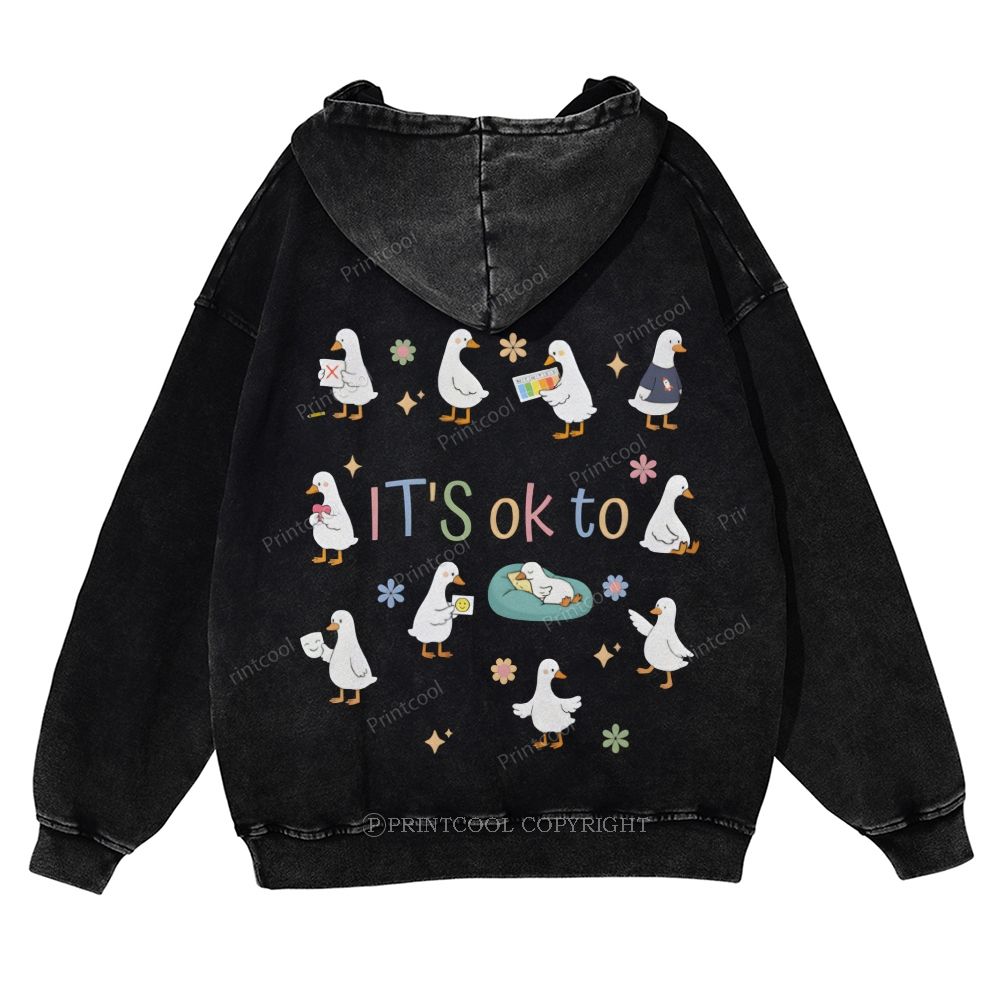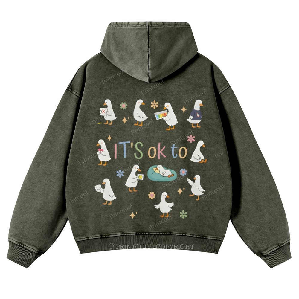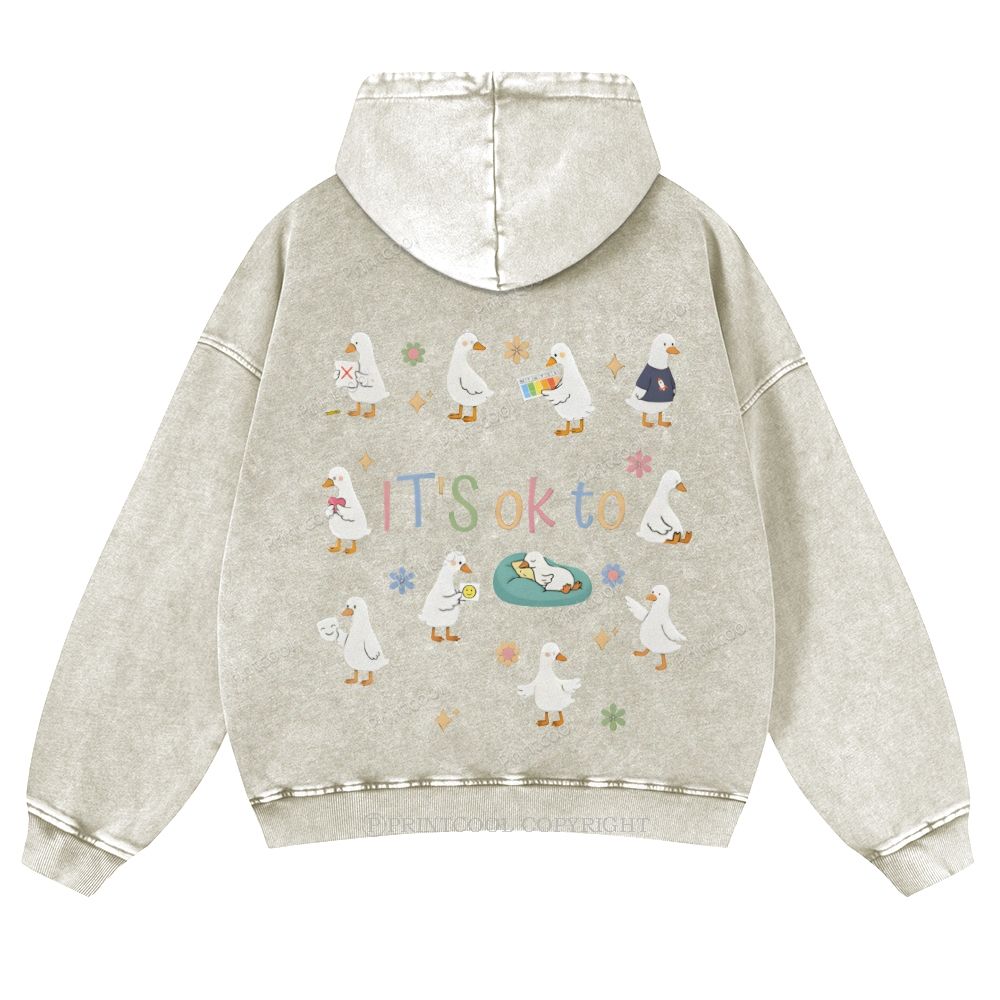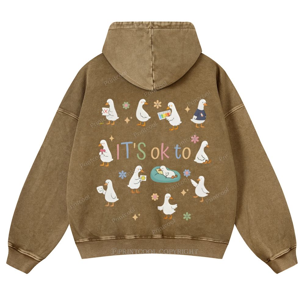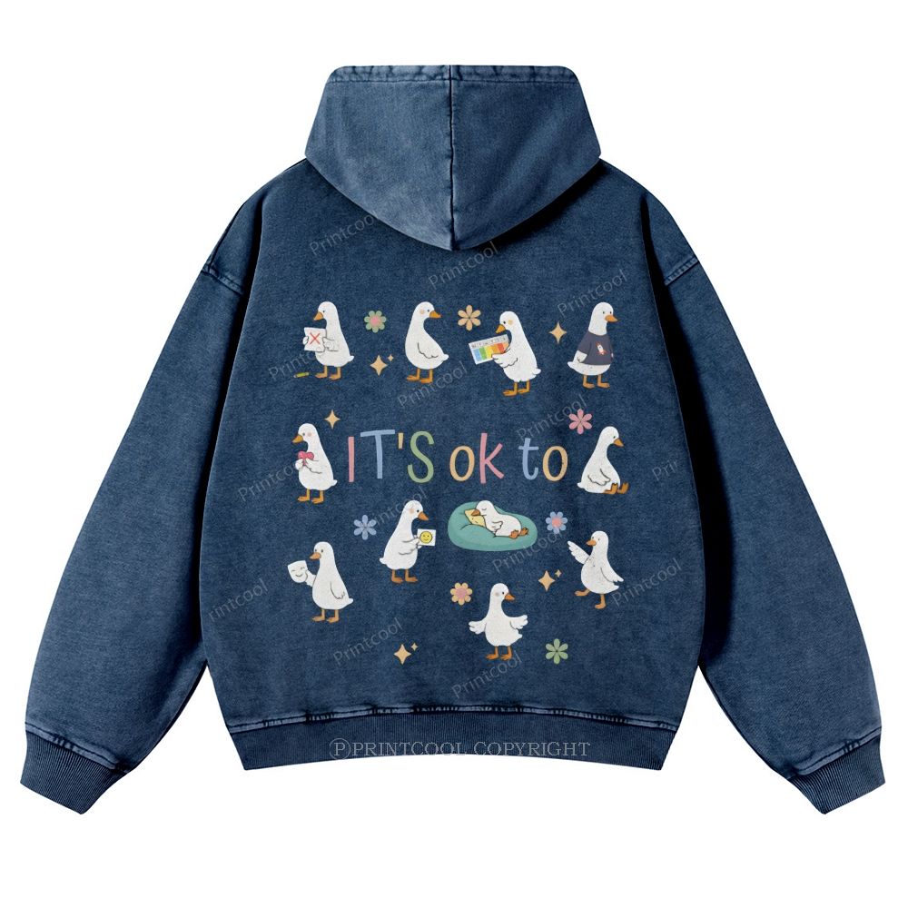 It's Ok To Goose Self-Care Casual Washed Hoodie