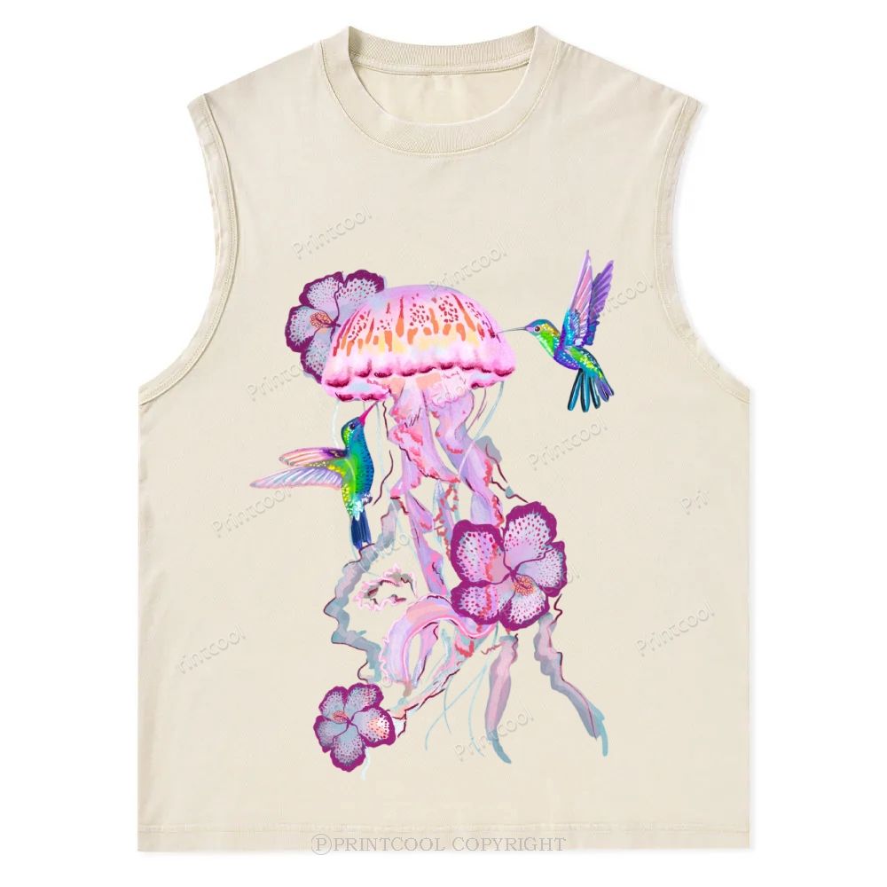 Jellyfish Blossom Hummingbird Unisex Washed Tank Top