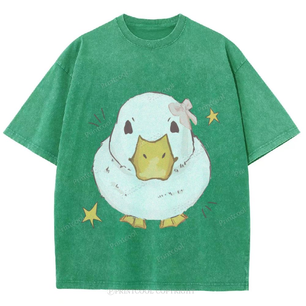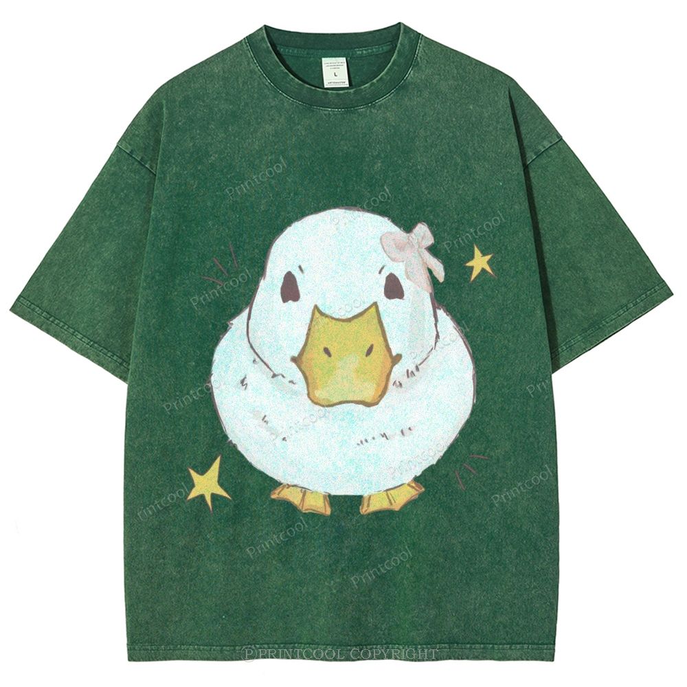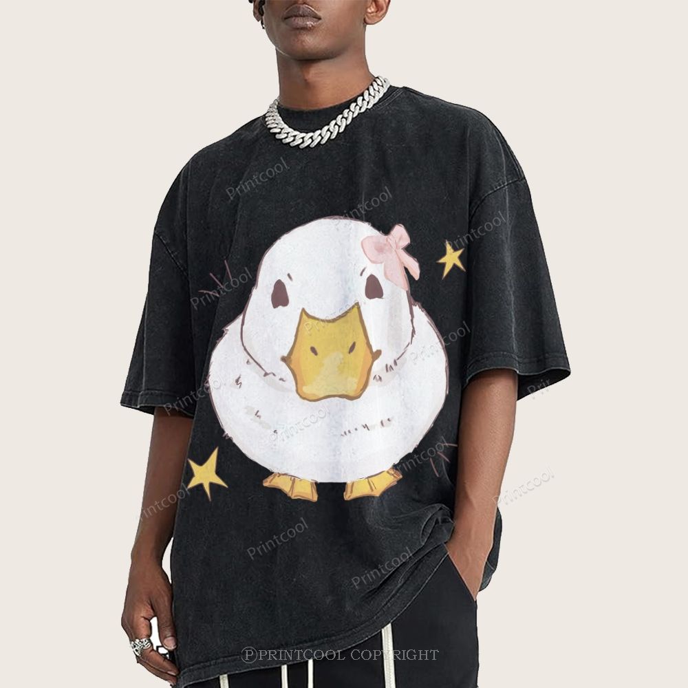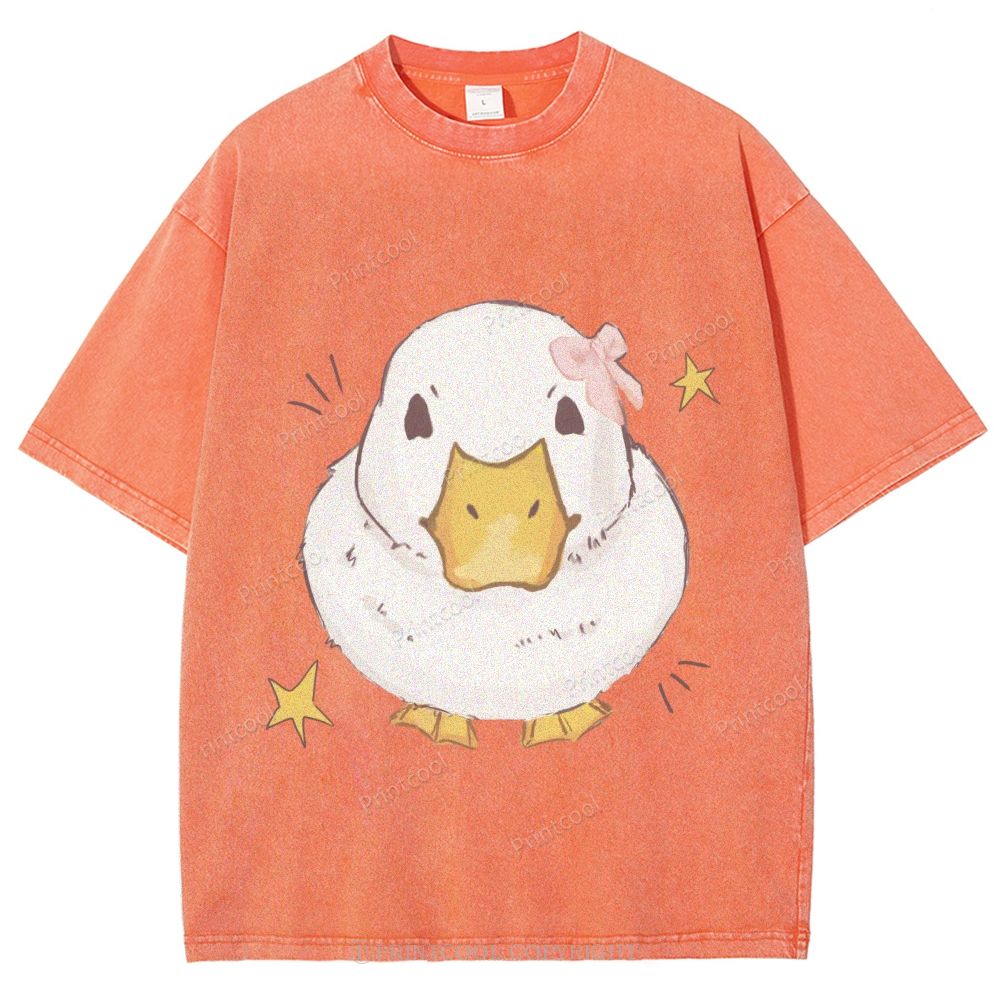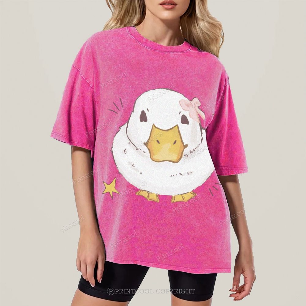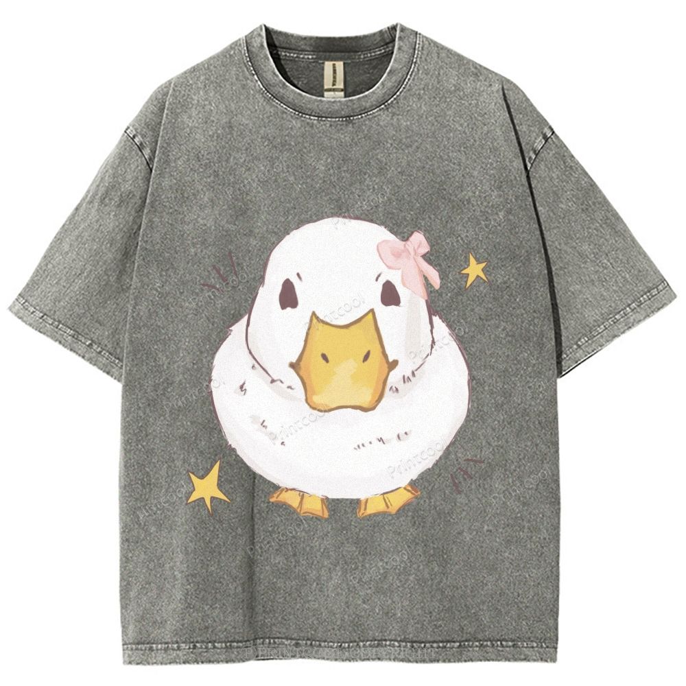 Kawaii Duck With Pink Bow Unisex Vintage Washed Tee