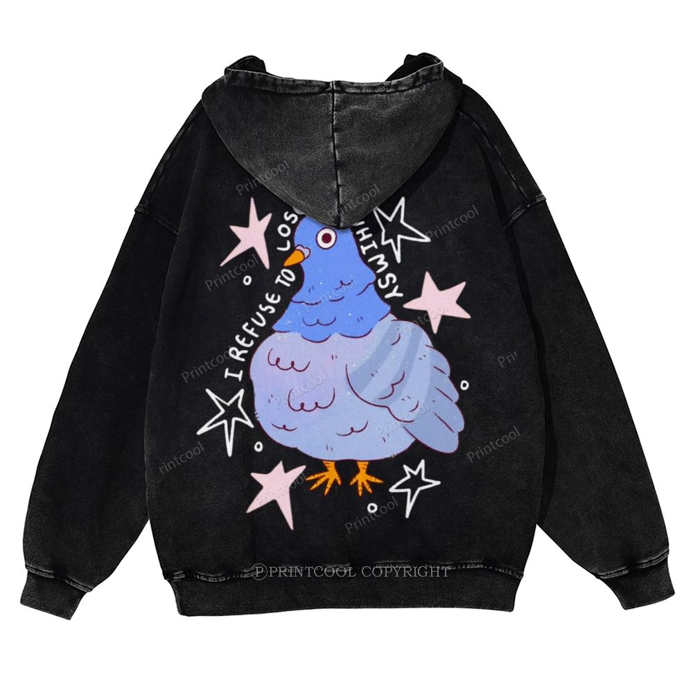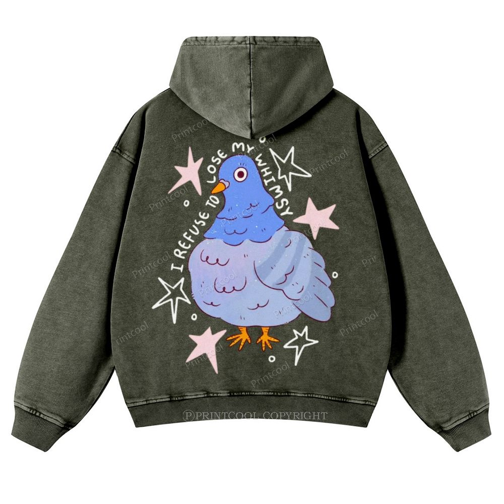 Lose My Whimsy Bird Casual Washed Hoodie