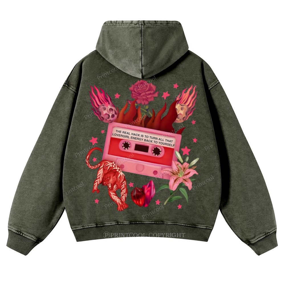 Lovergirl Energy Cassette Casual Washed Hoodie