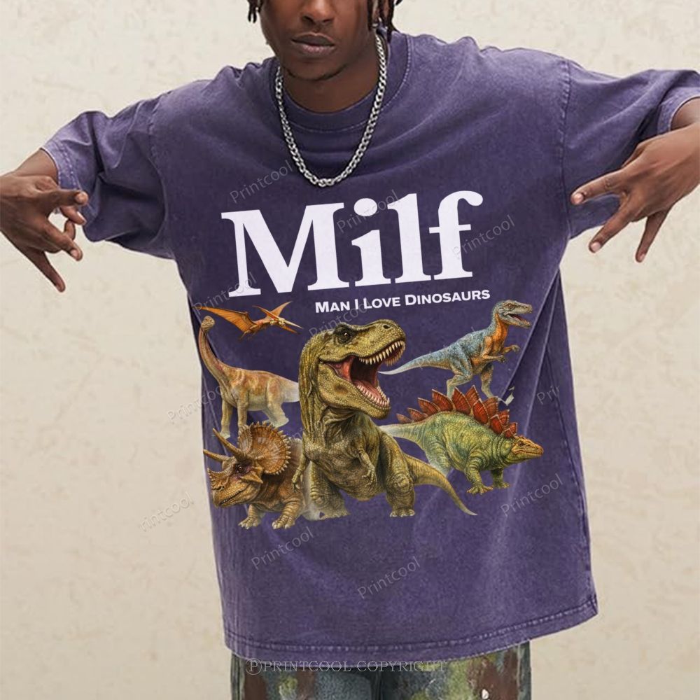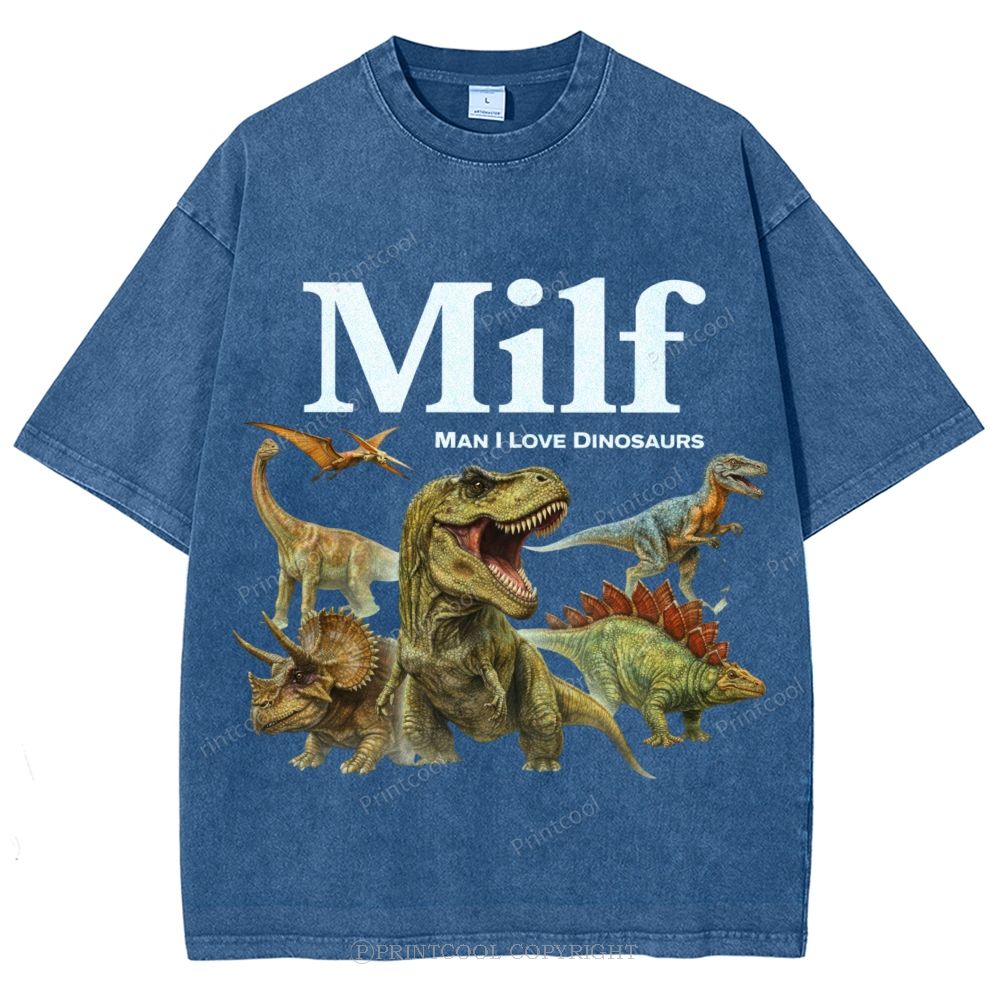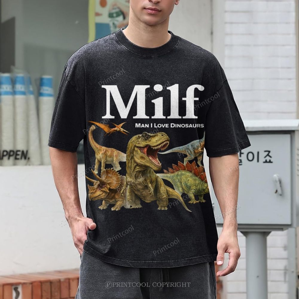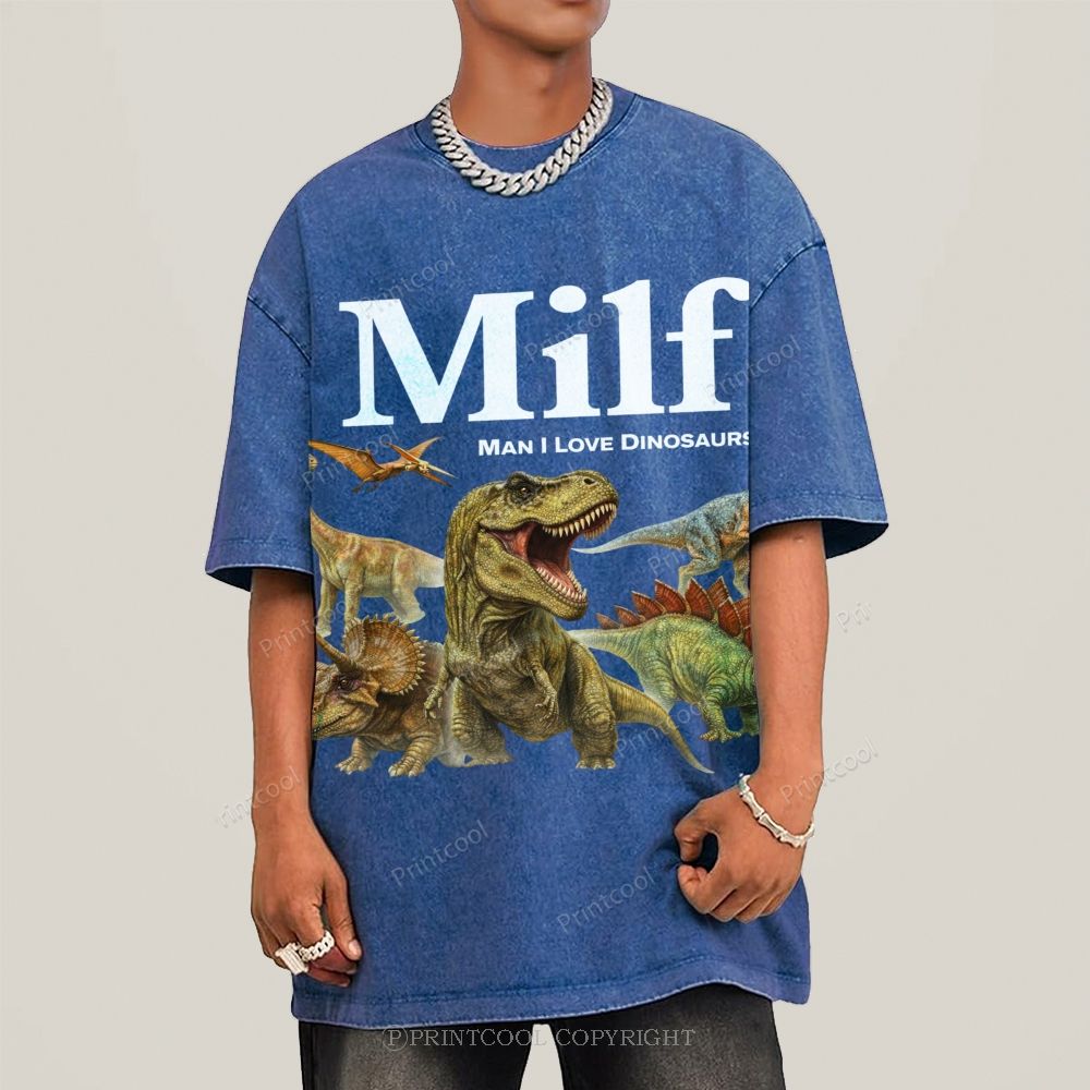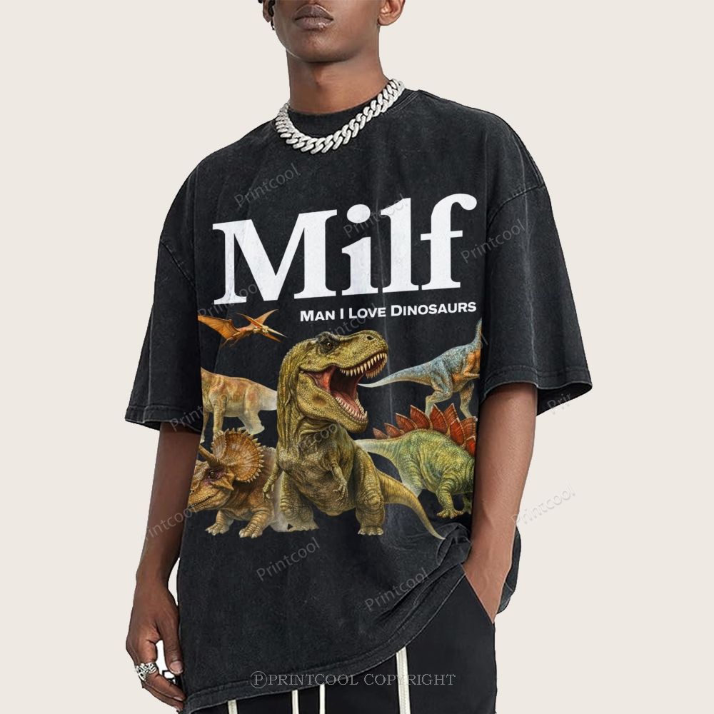 Man I Love Dinosaurs Unisex Vintage Washed Tee