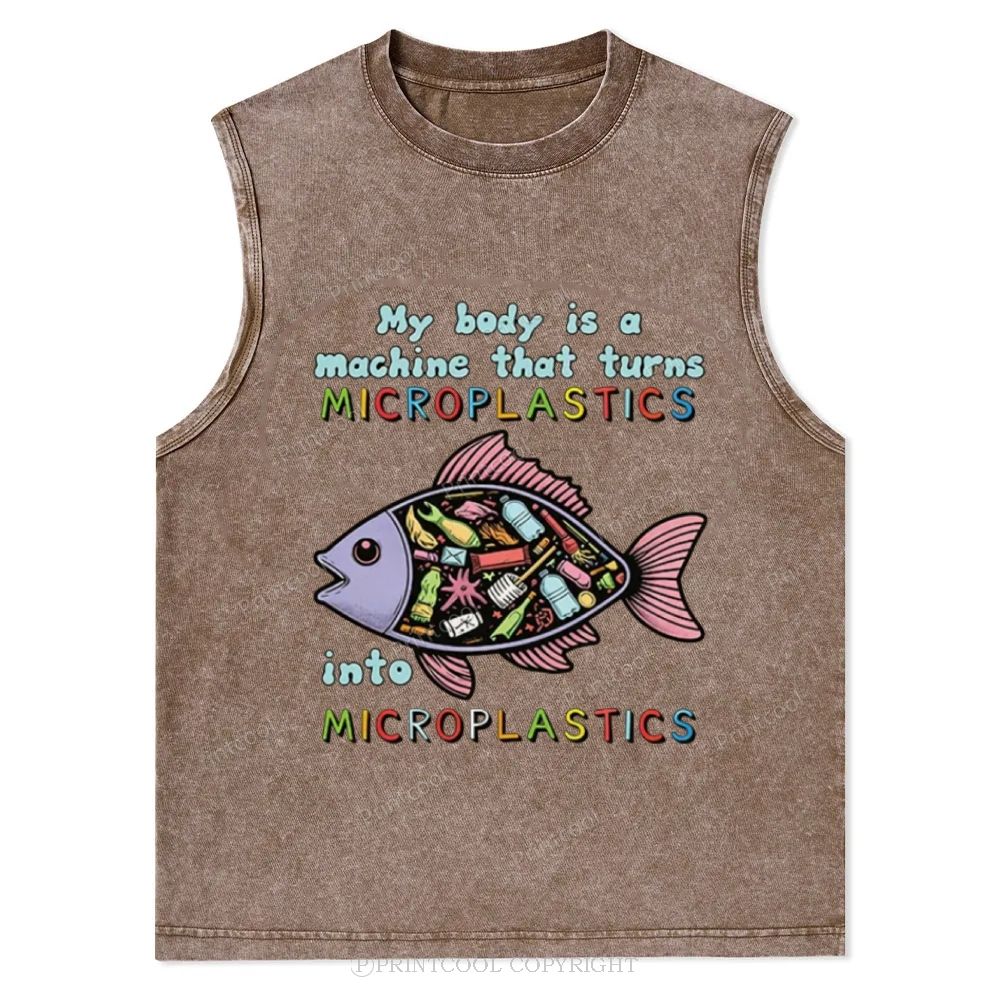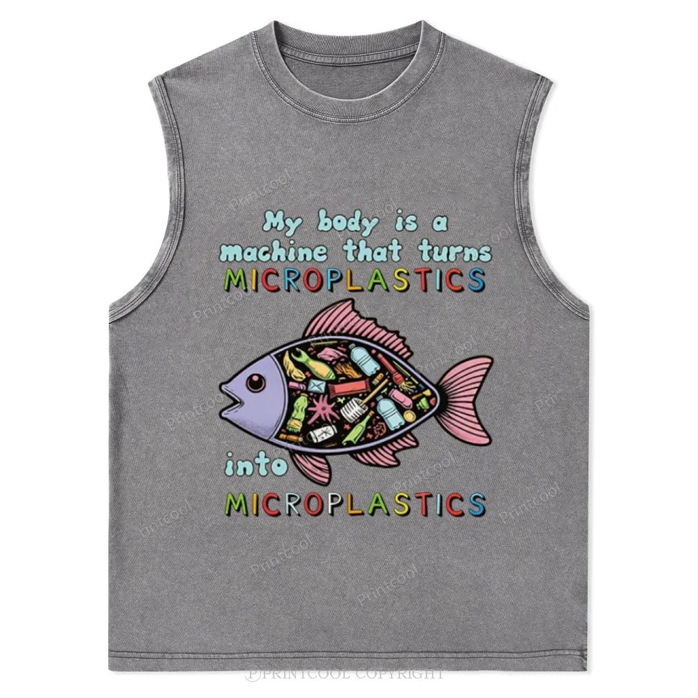 Microplastics Machine Fish Graphic Unisex Washed Tank Top