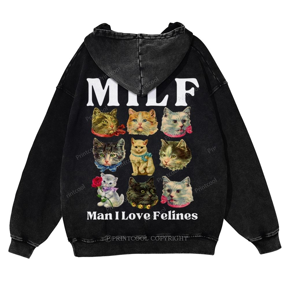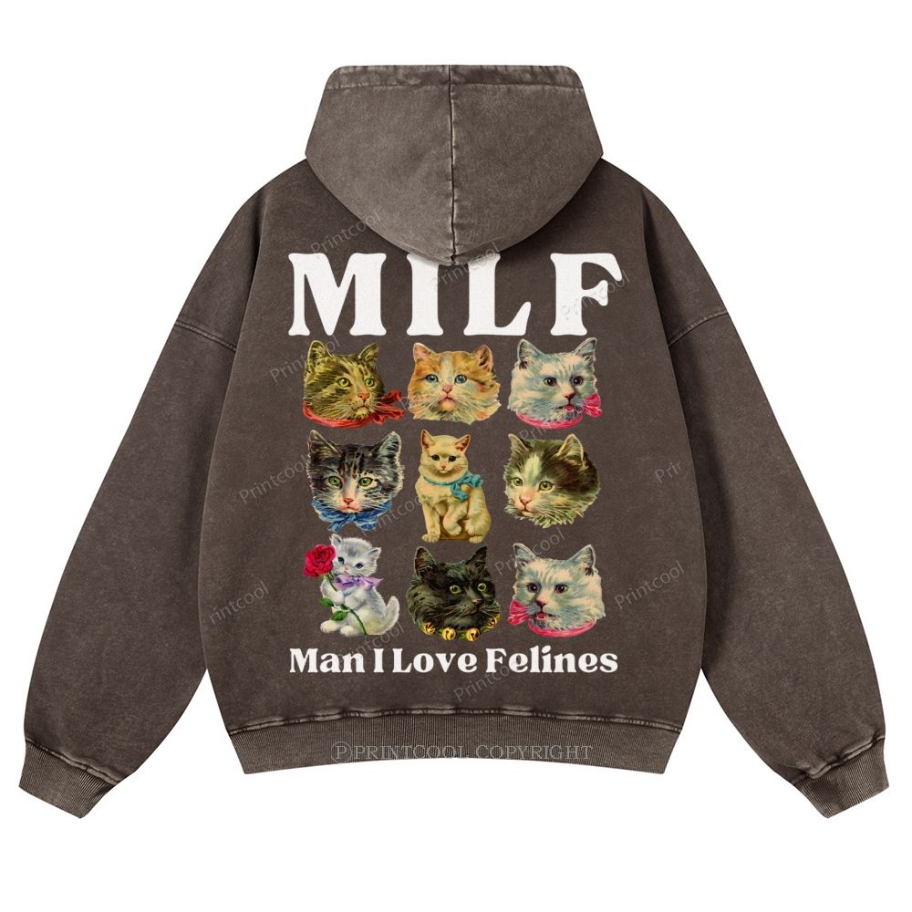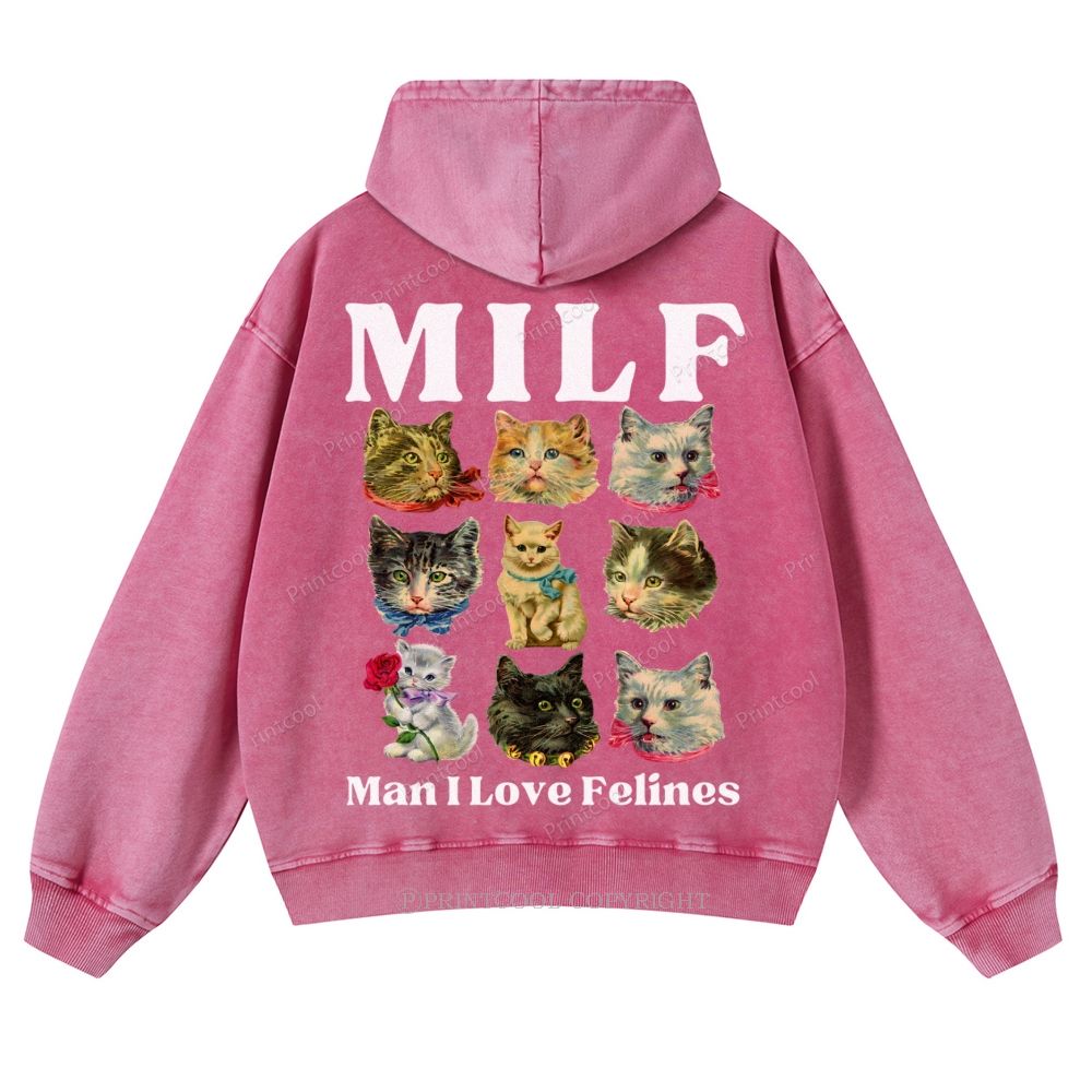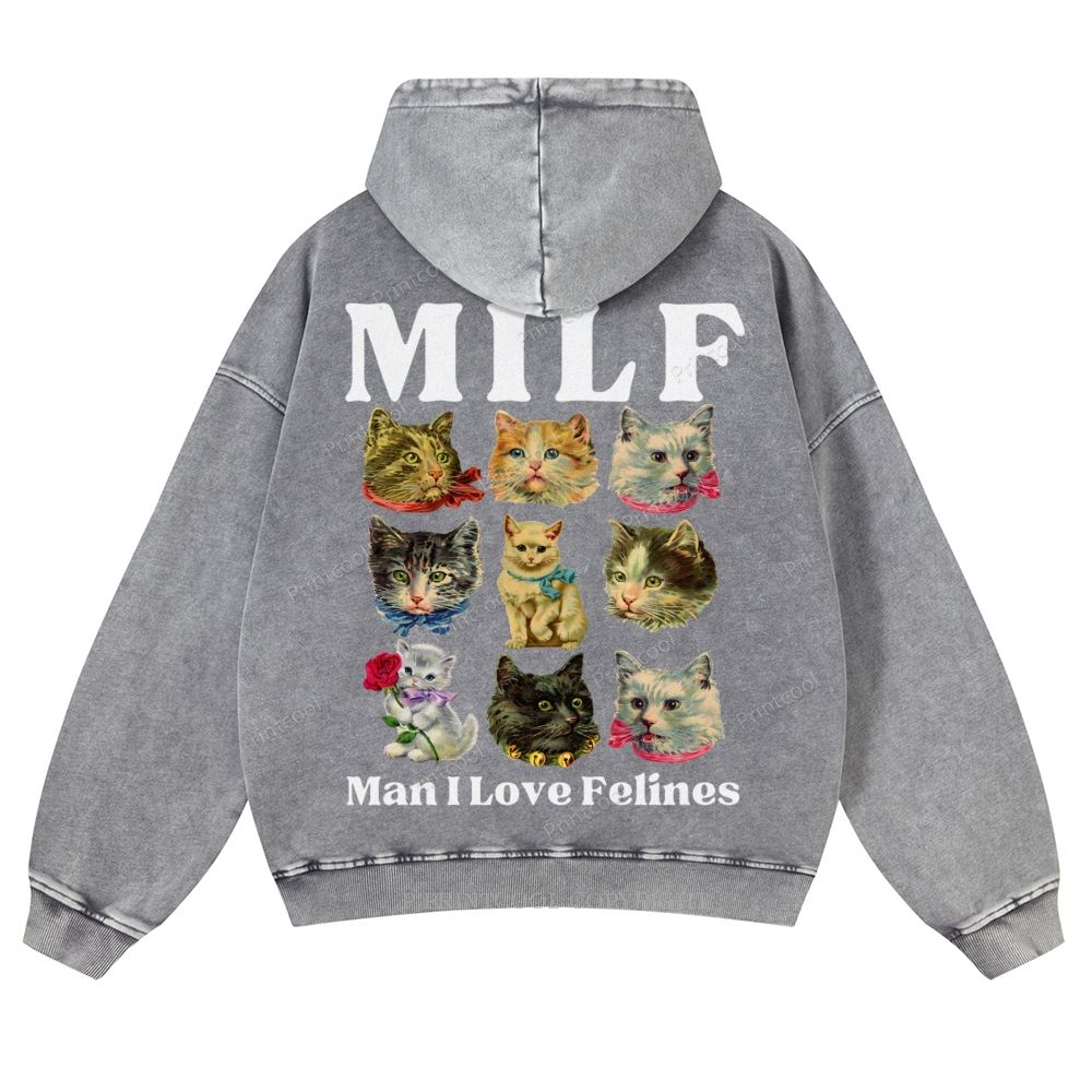 Milf Cats Casual Washed Hoodie