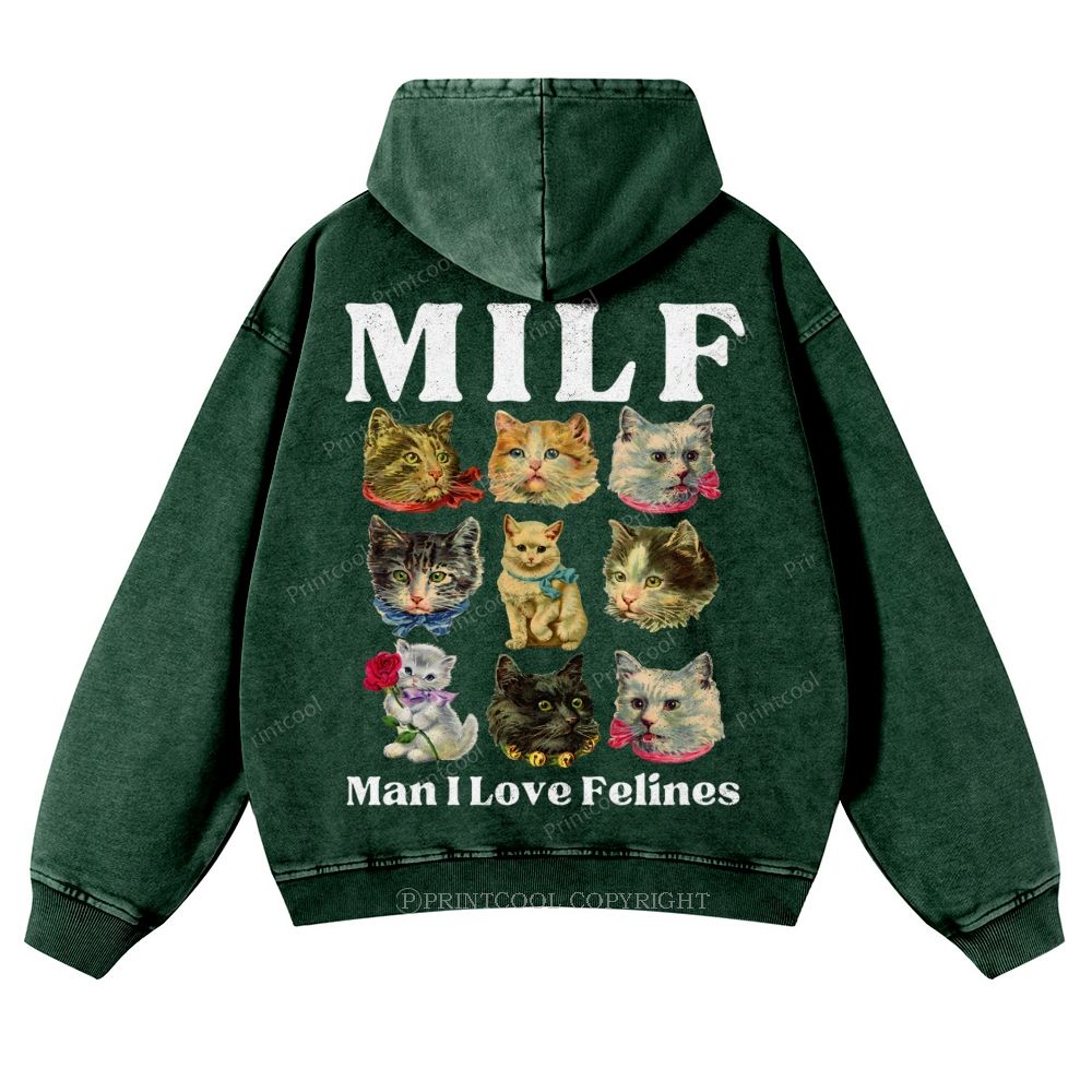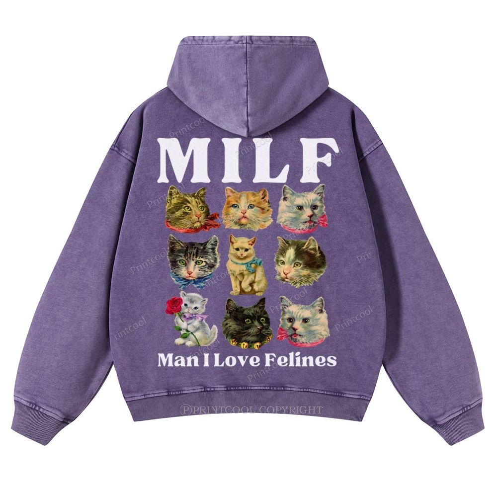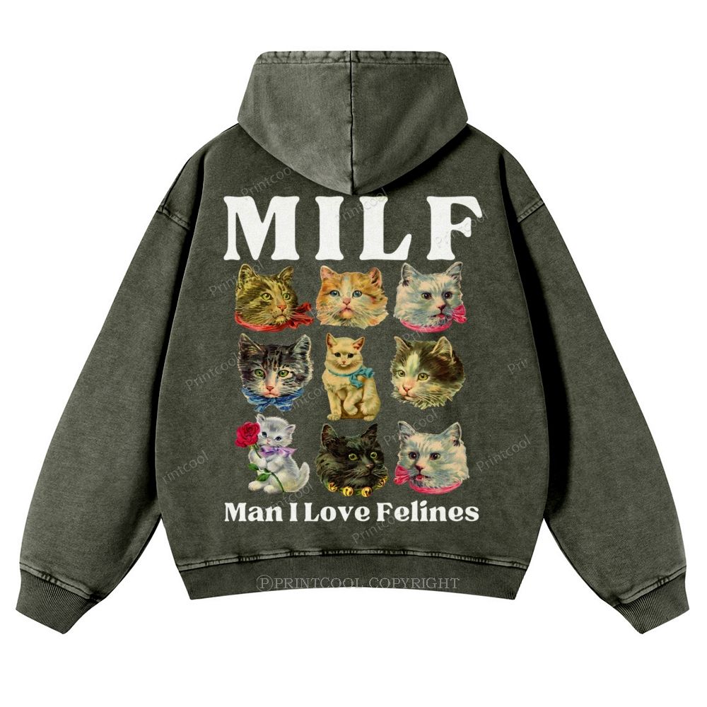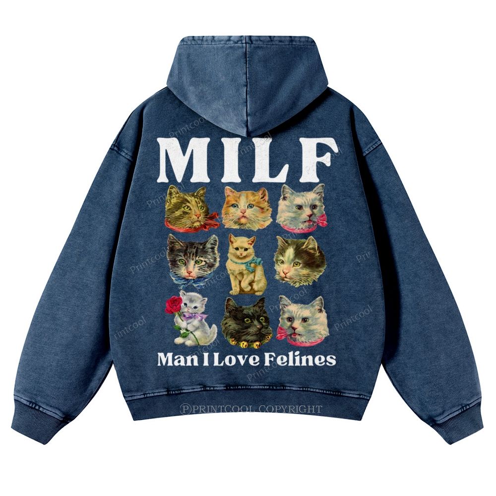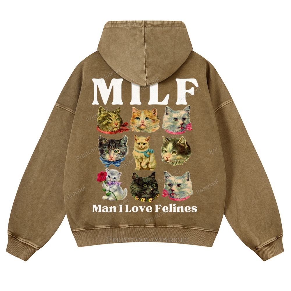 Milf Cats Casual Washed Hoodie