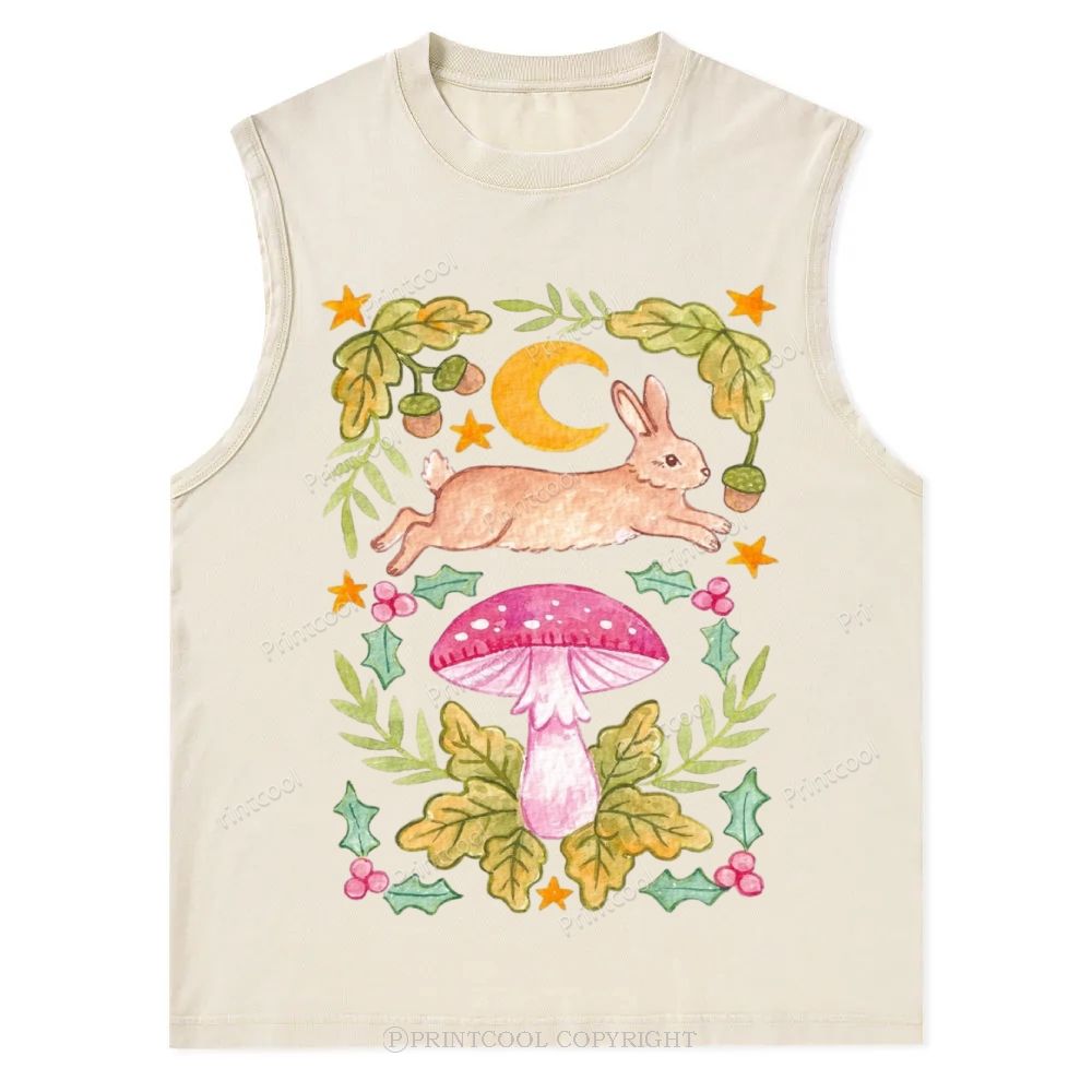 Moon Rabbit & Mushroom Unisex Washed Tank Top