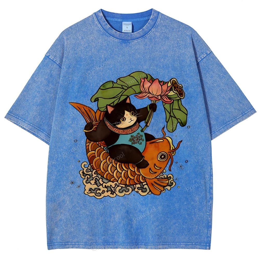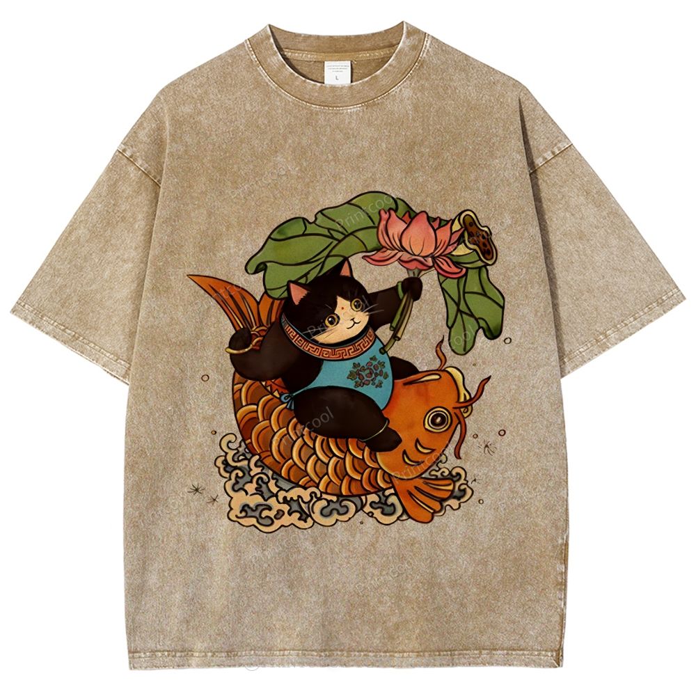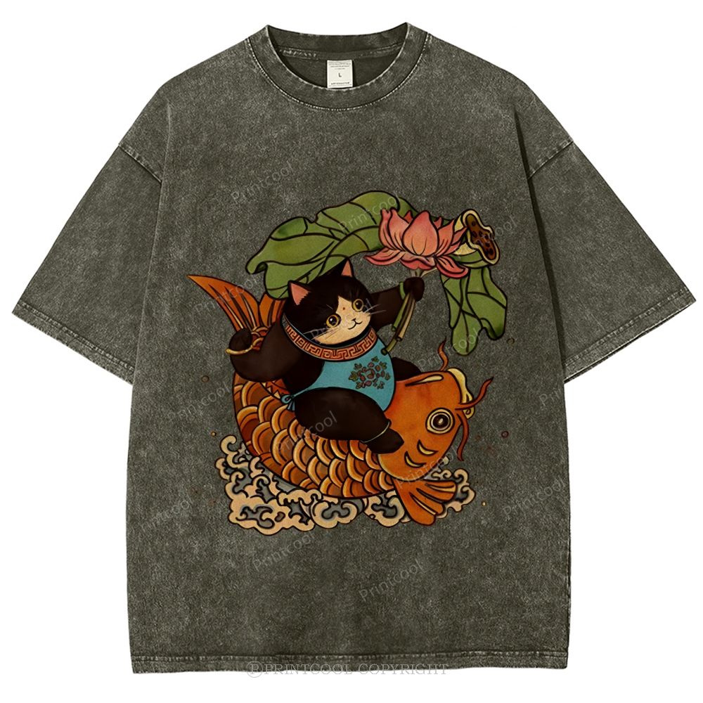 Mystic Lotus Carp Cat. Unisex Vintage Washed Tee