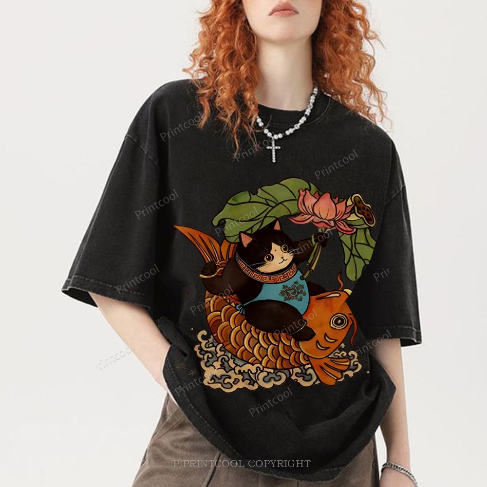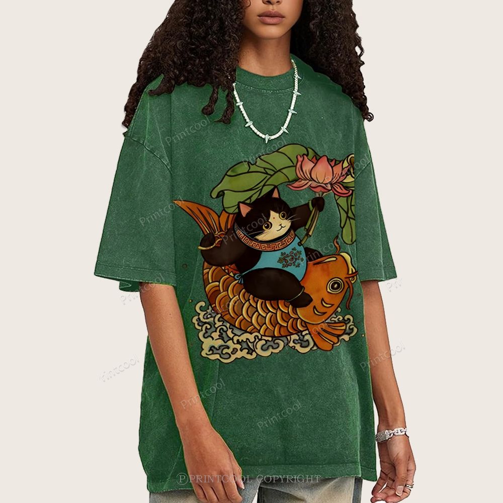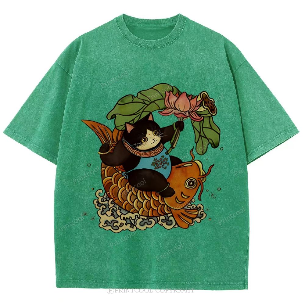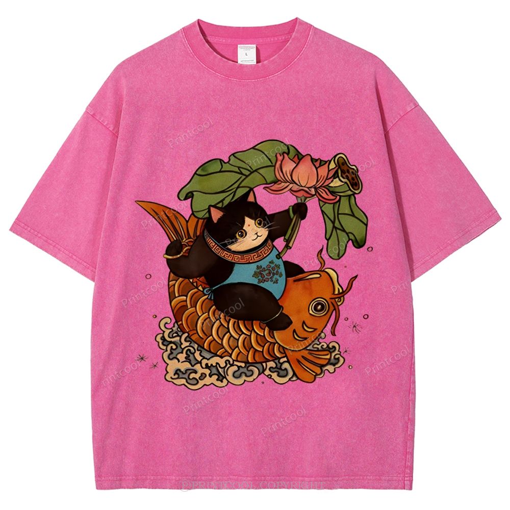 Mystic Lotus Carp Cat. Unisex Vintage Washed Tee