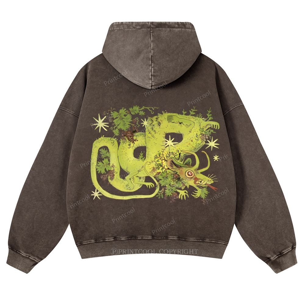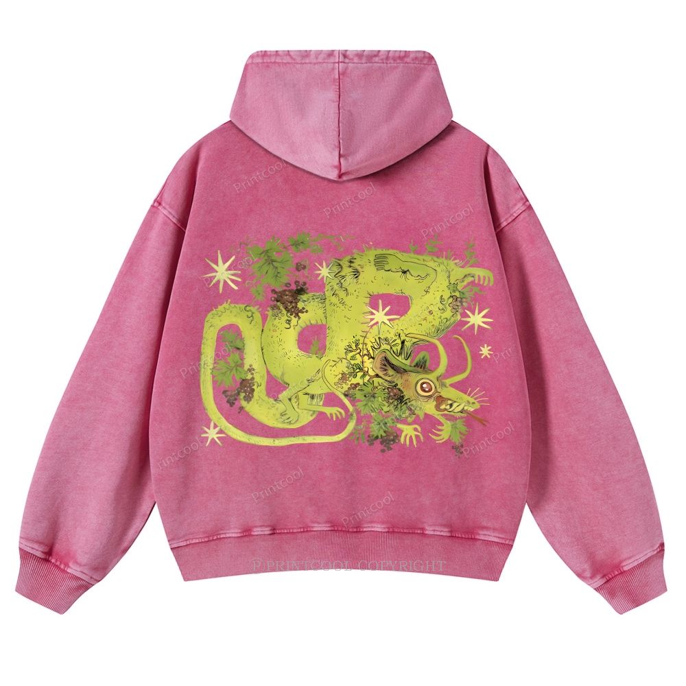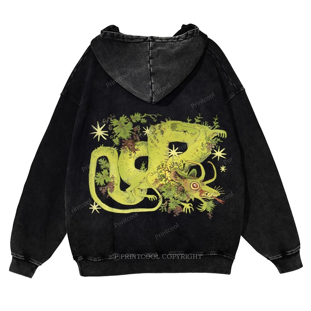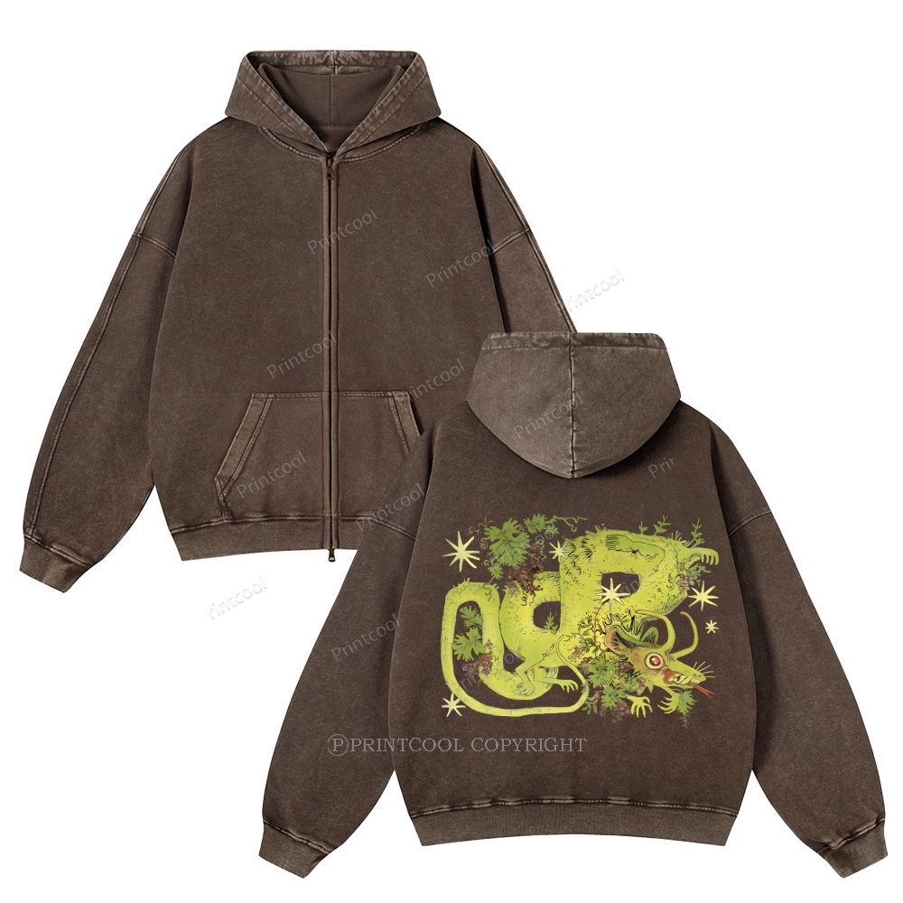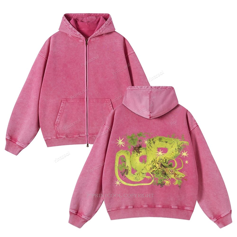 Mythical Dragon Among Grape Vines Unisex Washed Cotton Zip Up Hoodie