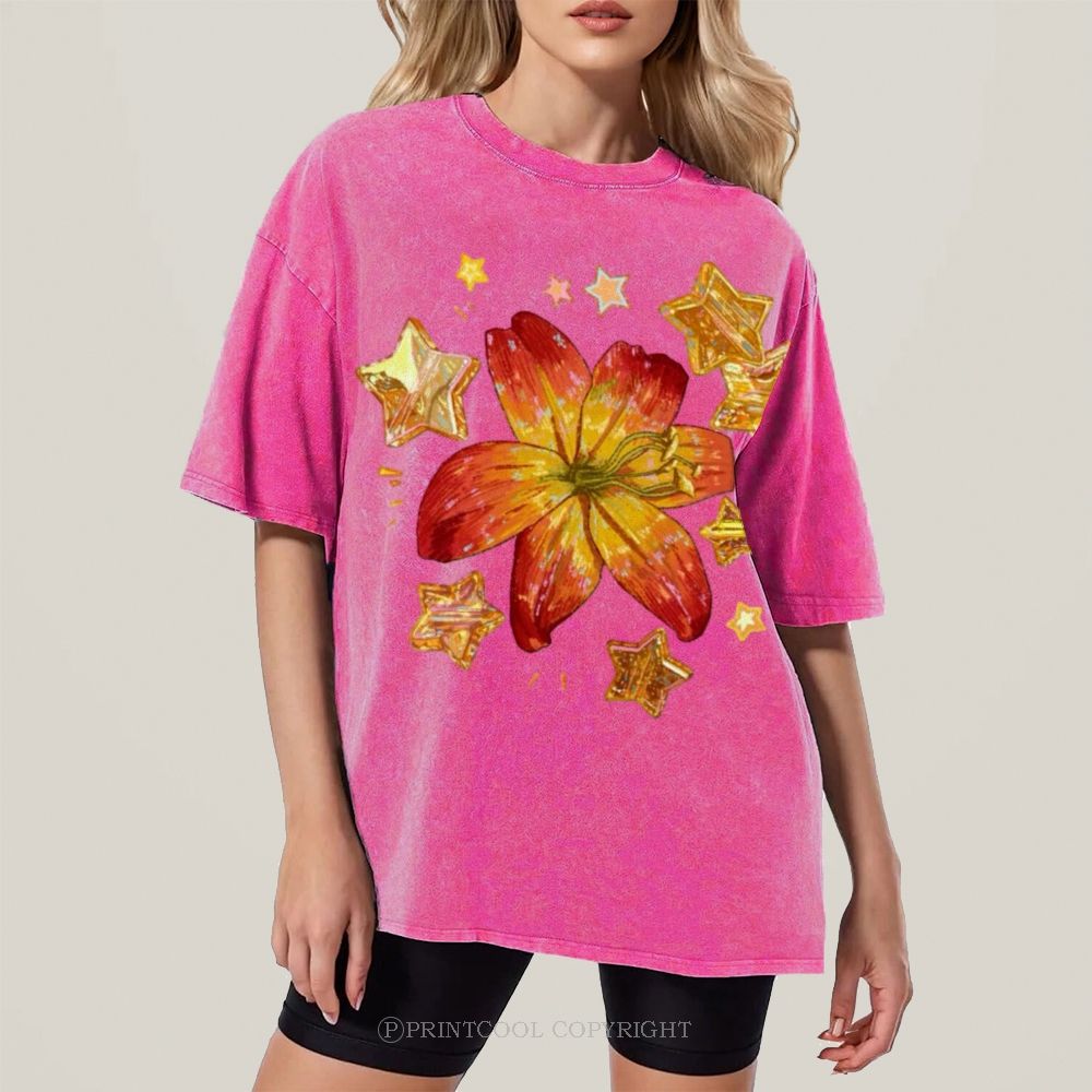 Orange Lily Unisex Vintage Washed Tee