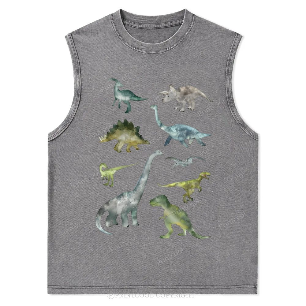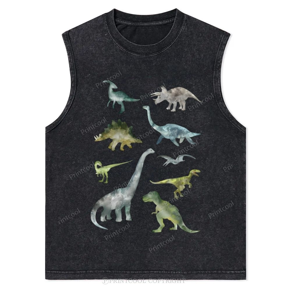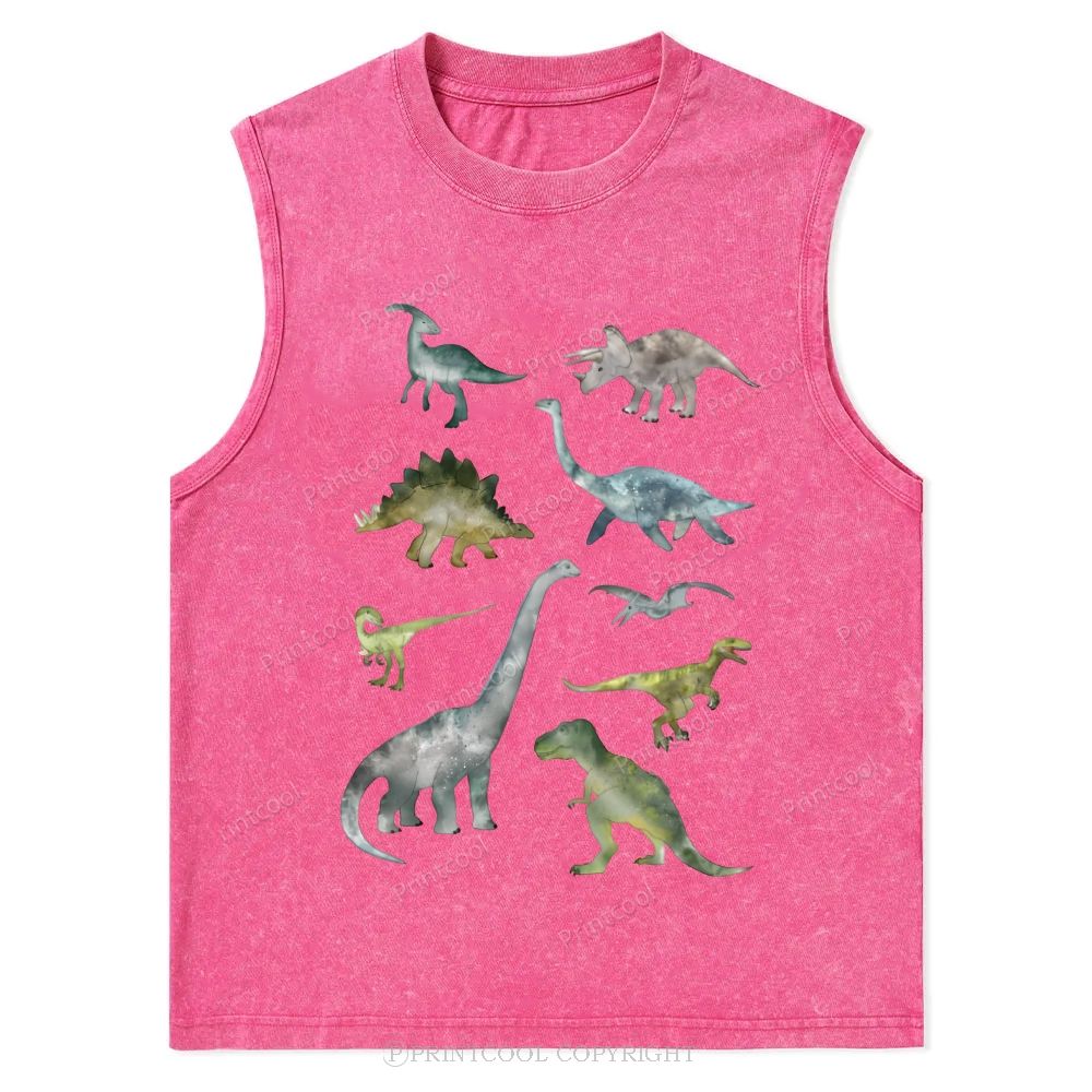 Paleo Watercolor Dinosaur Kingdom Unisex Washed Tank Top