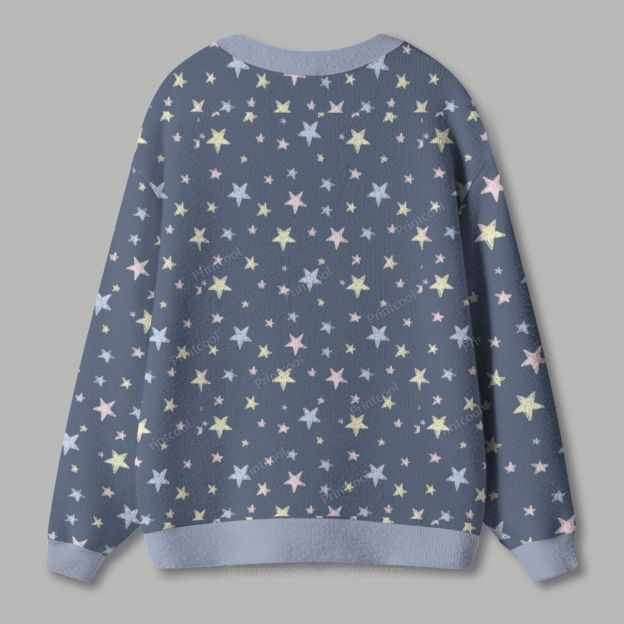 Pastel Starry Sky Doodle Pattern Ugly Cardigan Sweater