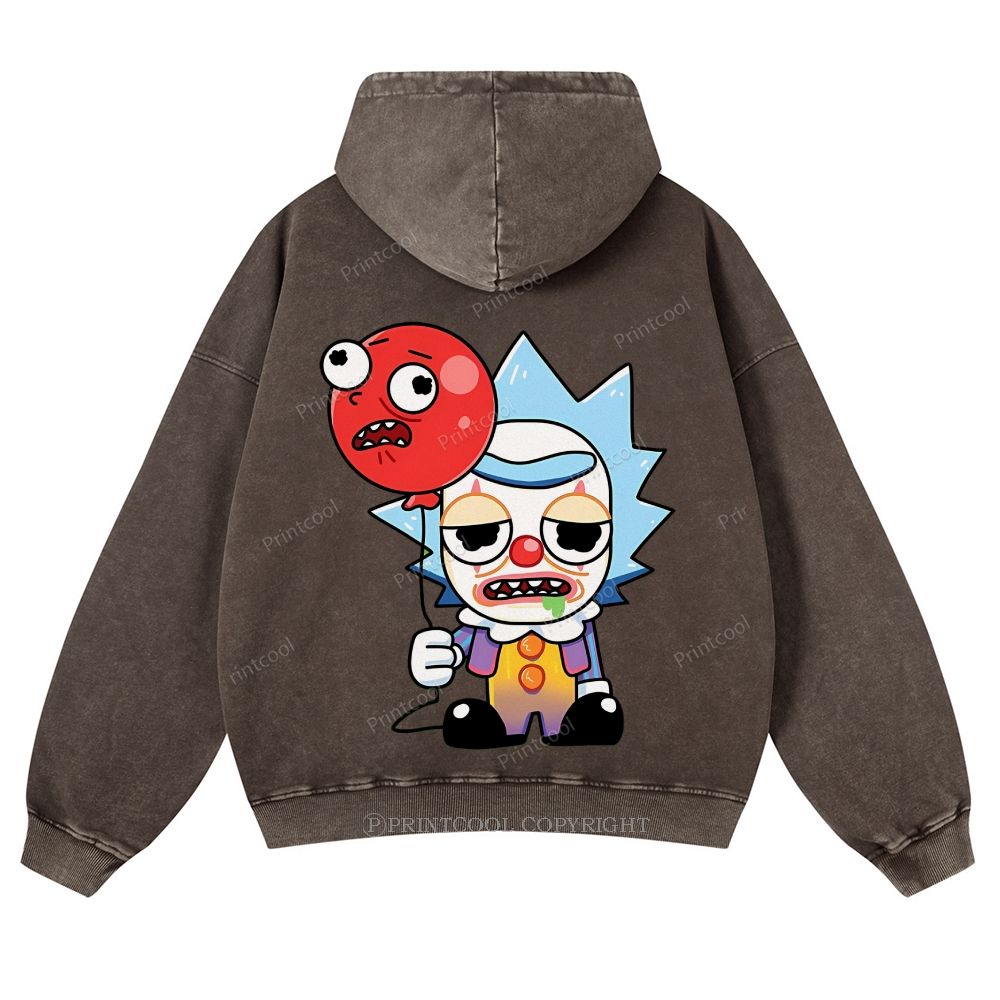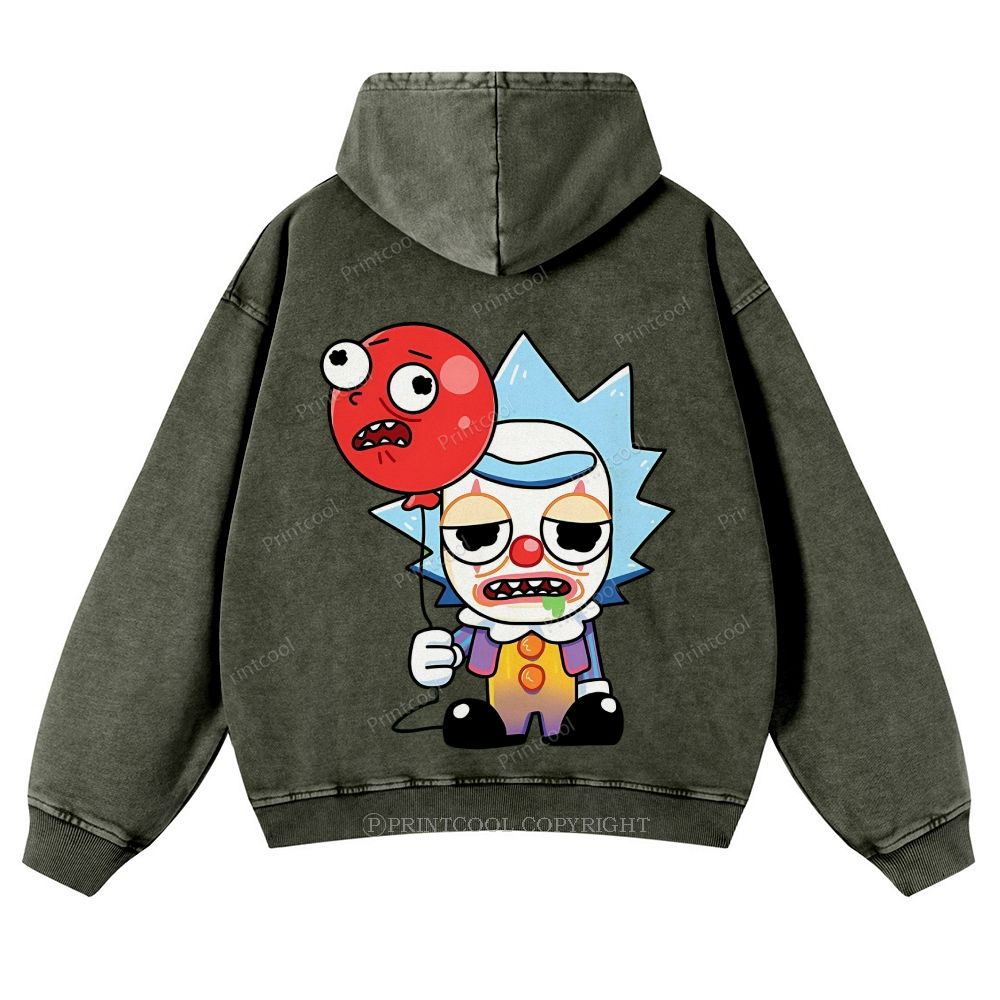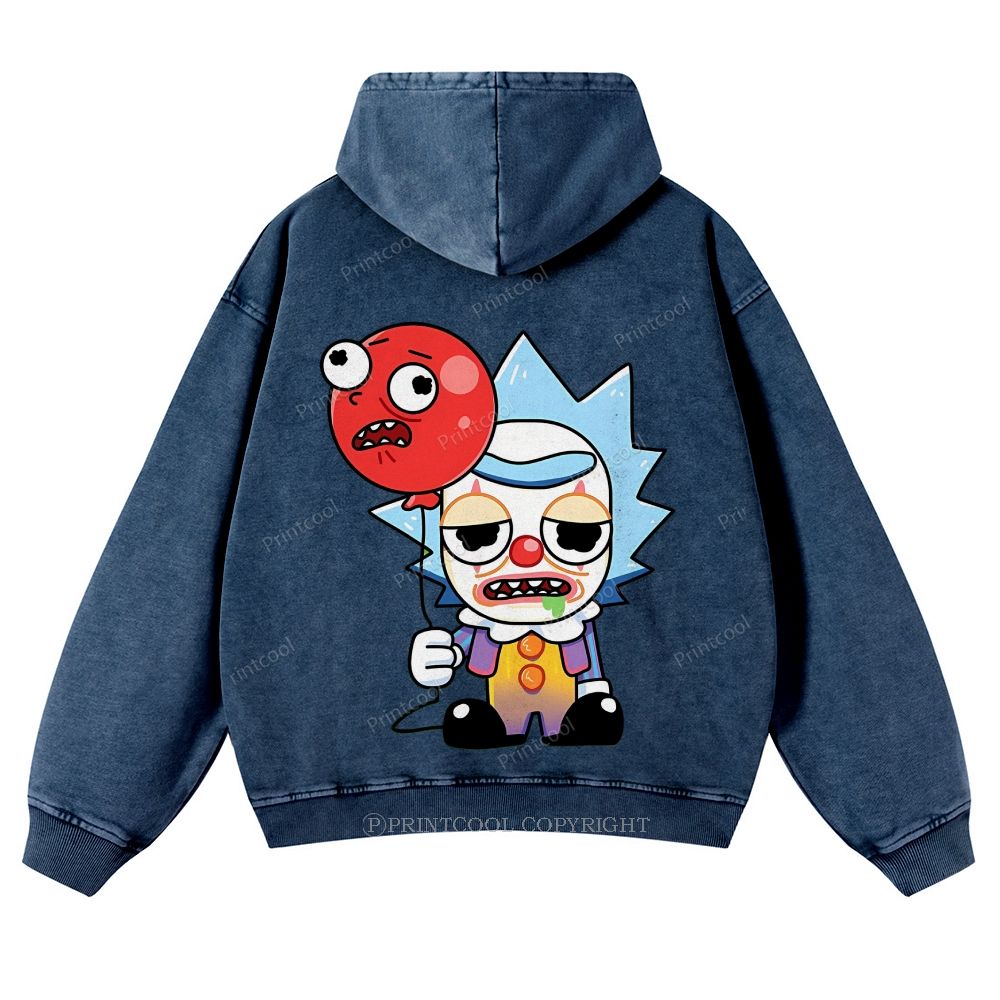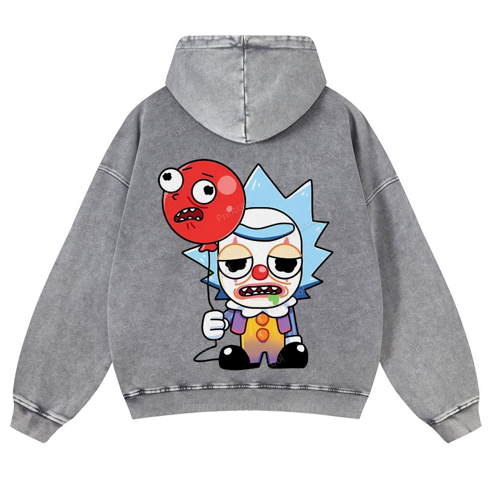 Pennyrick Floating Clown Horror Casual Washed Hoodie