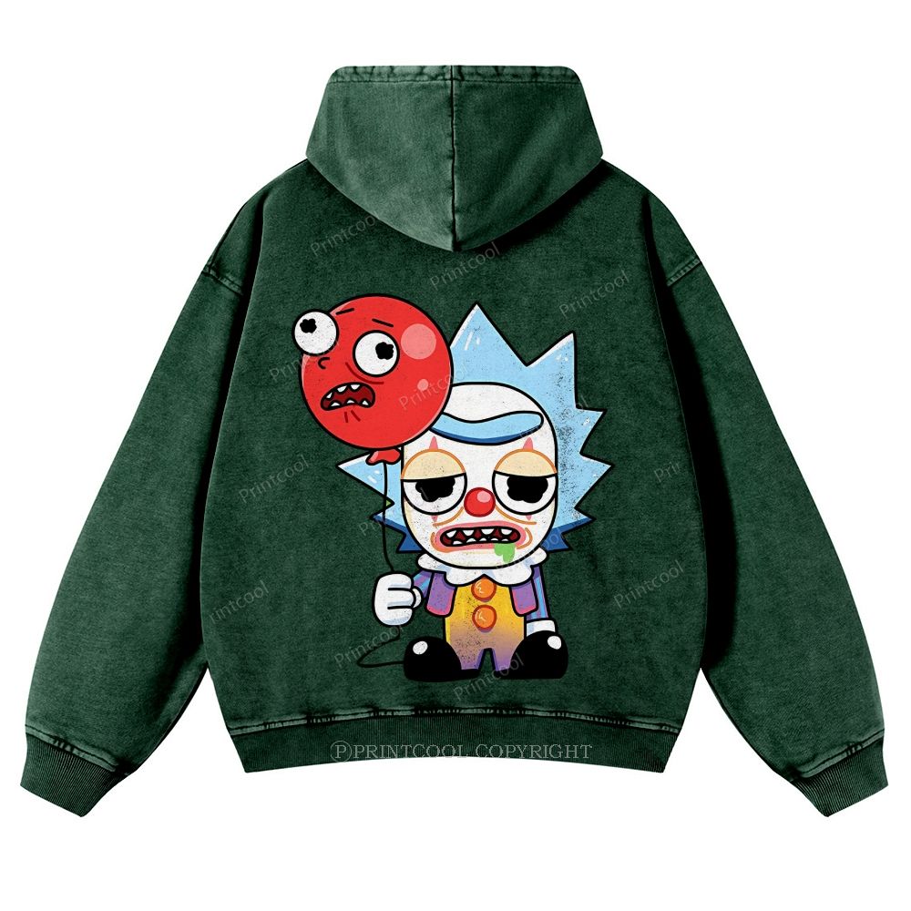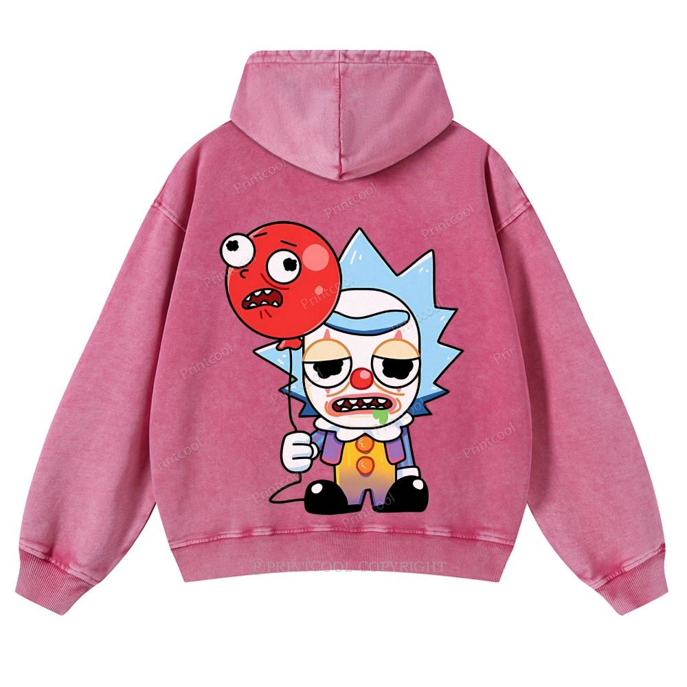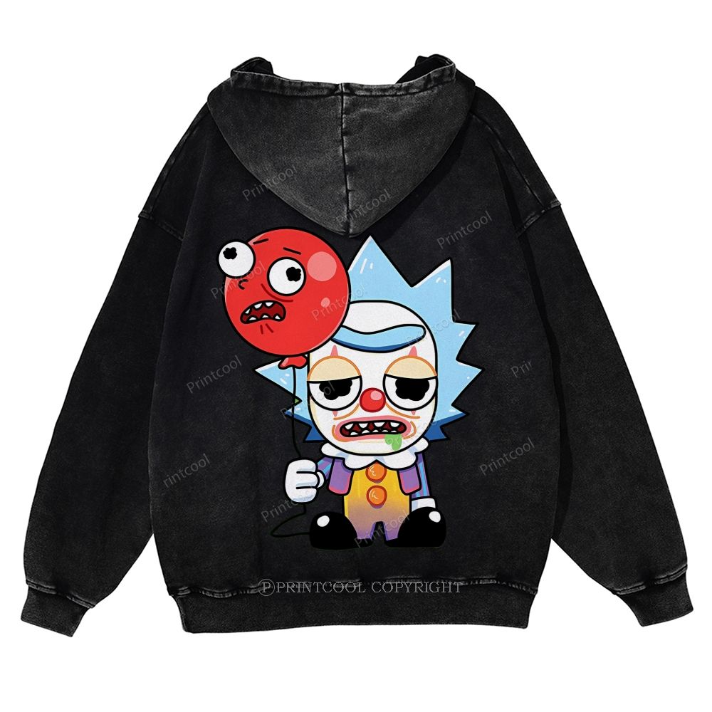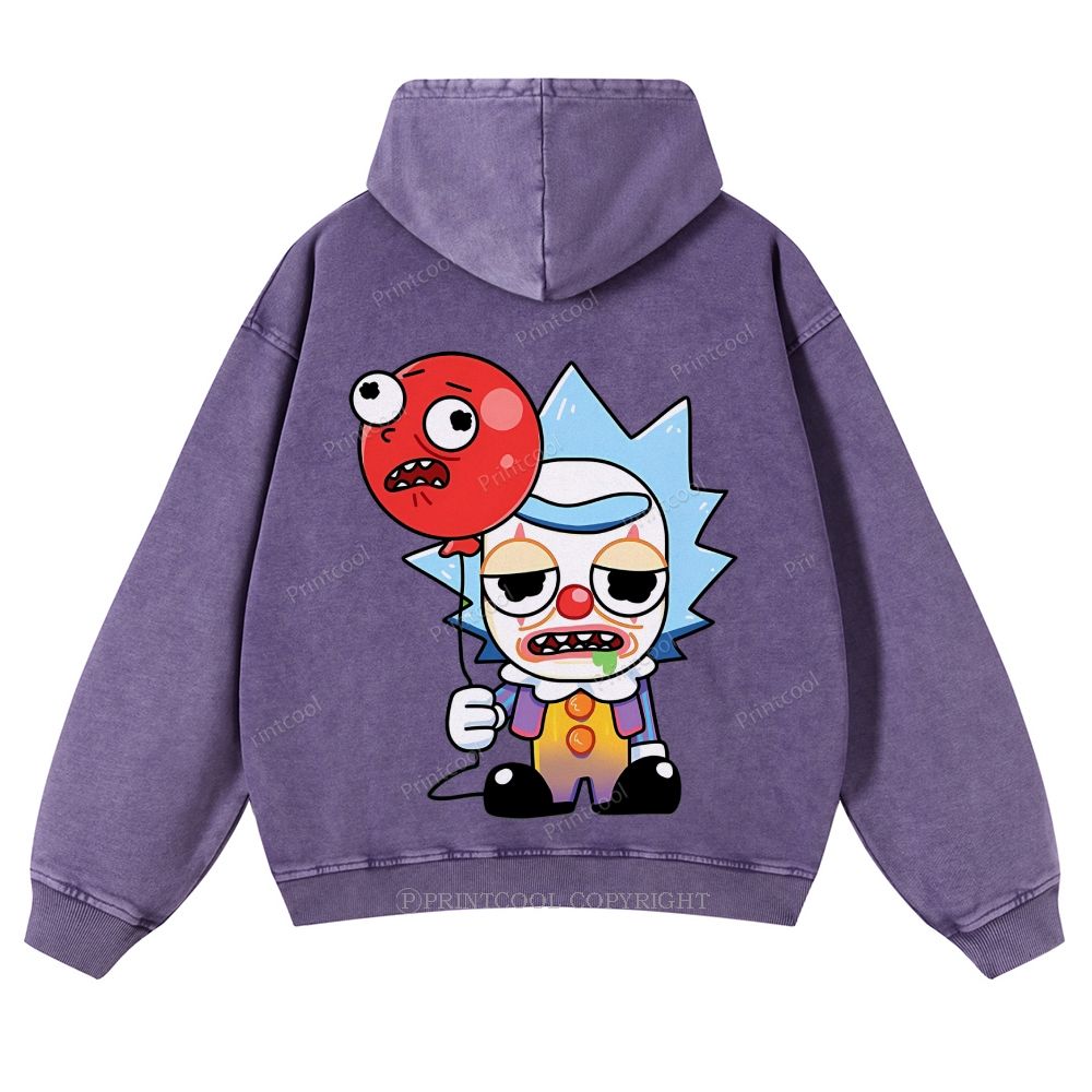 Pennyrick Floating Clown Horror Casual Washed Hoodie