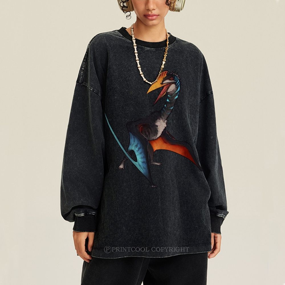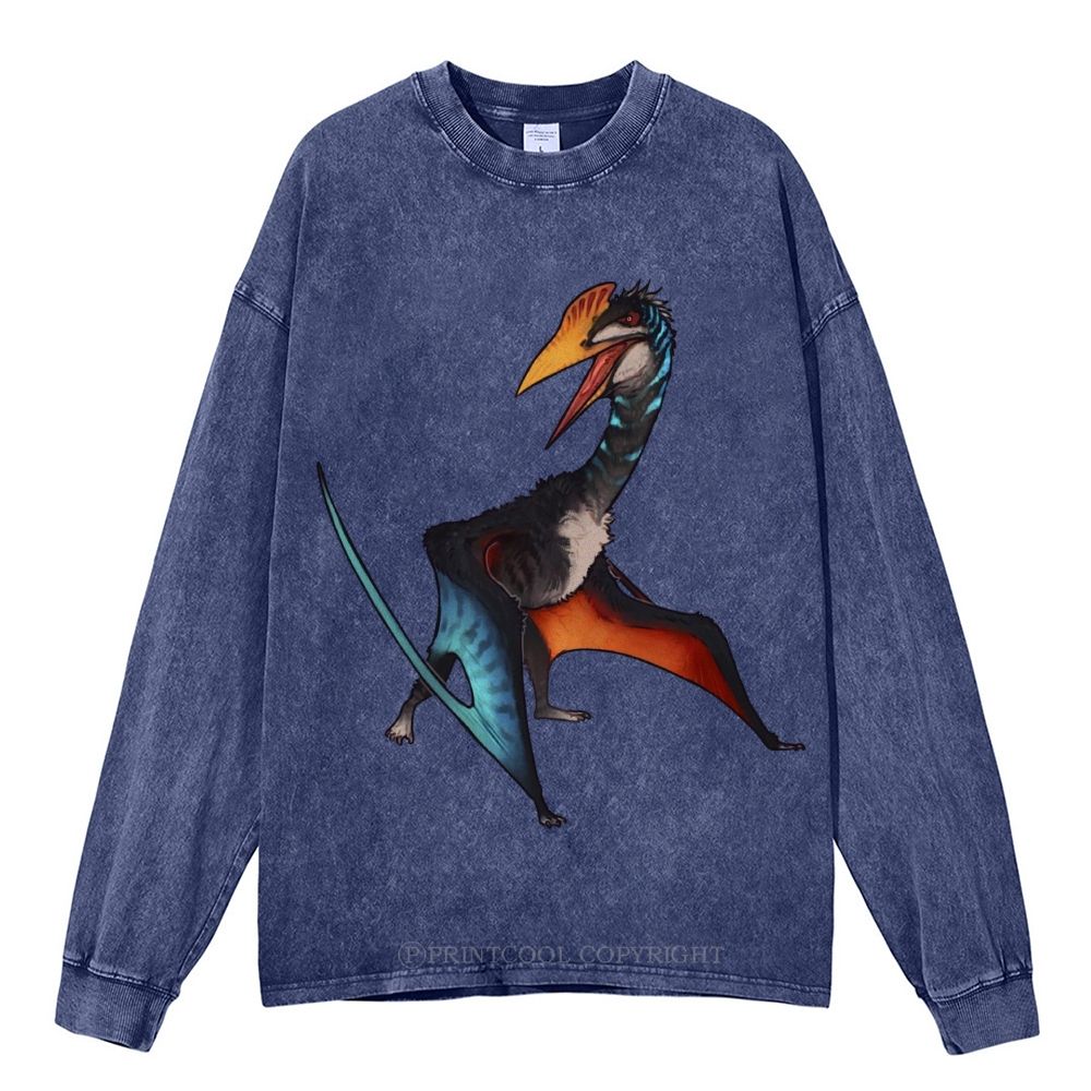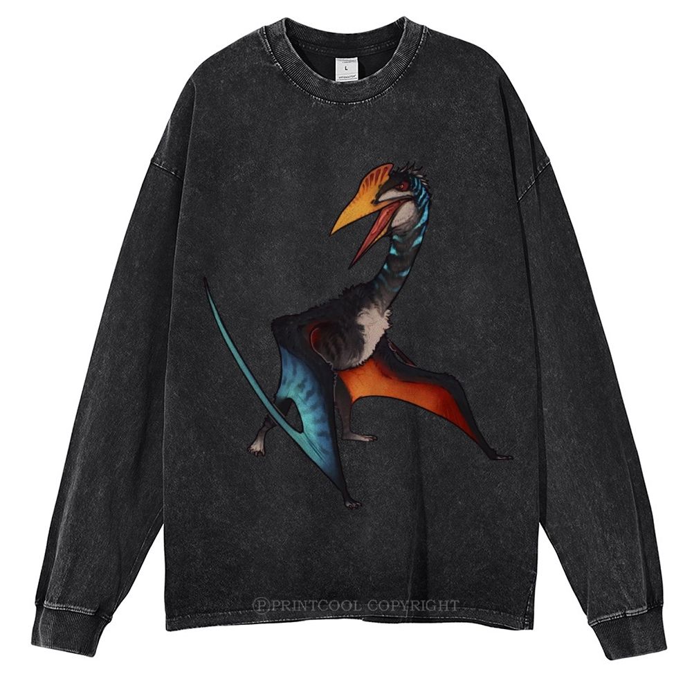 Pterosaur Unisex Casual Washed Printed Long Sleeve T-shirt