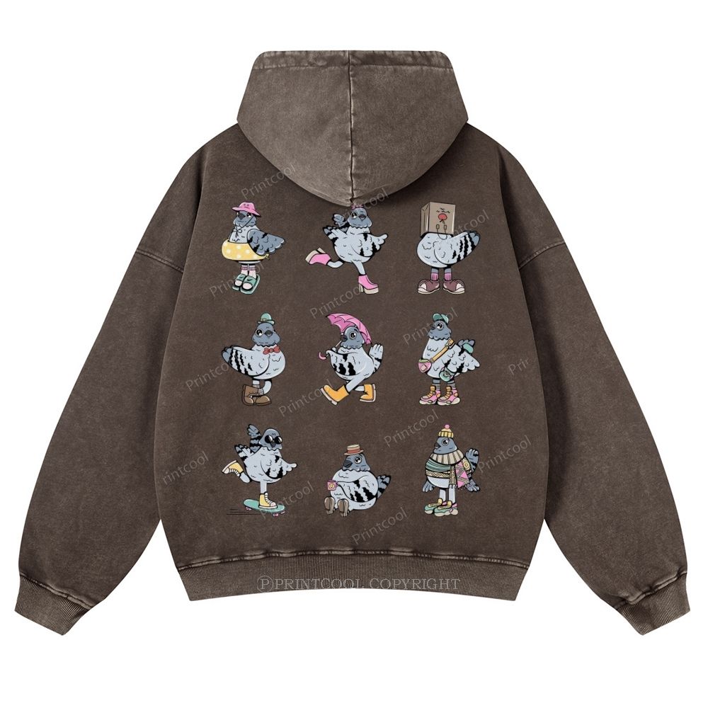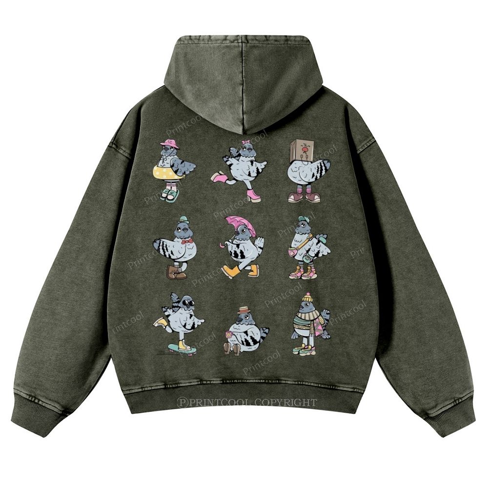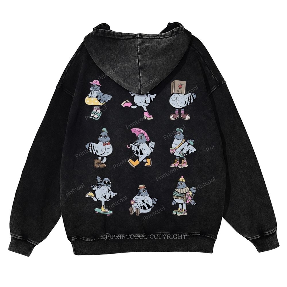 Quirky Fashionable Pigeon Casual Washed Hoodie