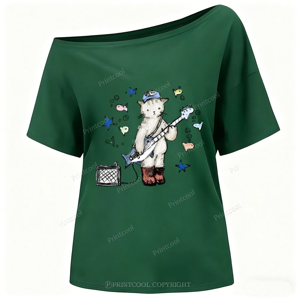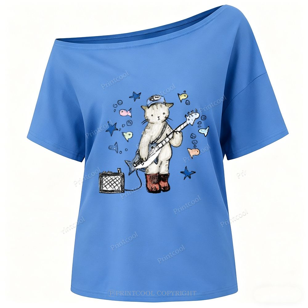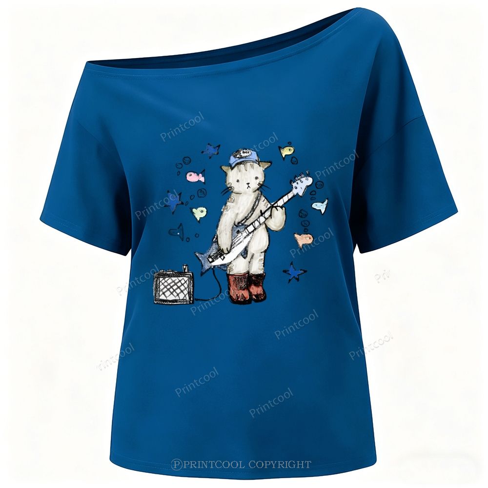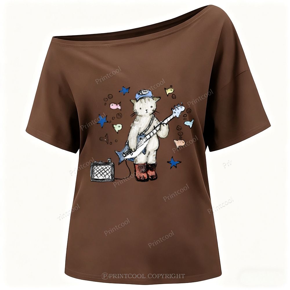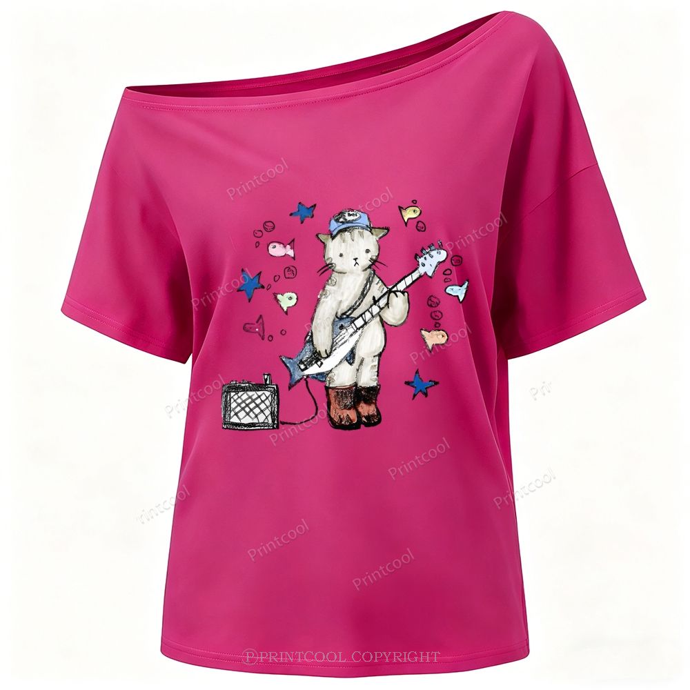 Rock Star Cat Performance One-Shoulder T-Shirt