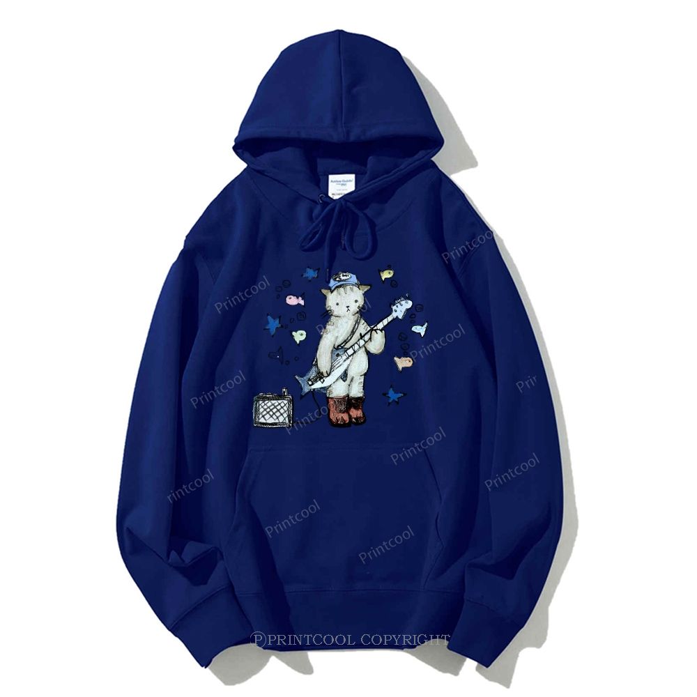 Rock Star Cat Performance Unisex Casual Solid Color Hoodie