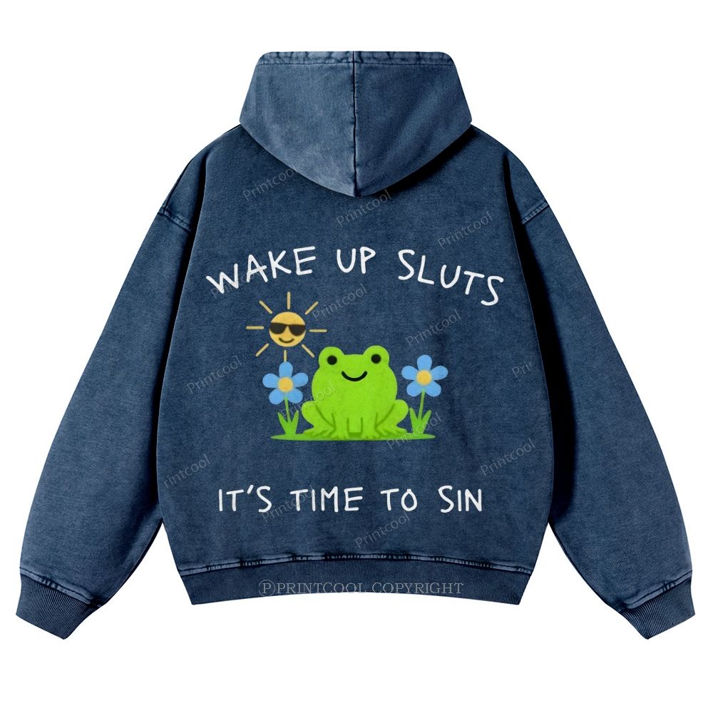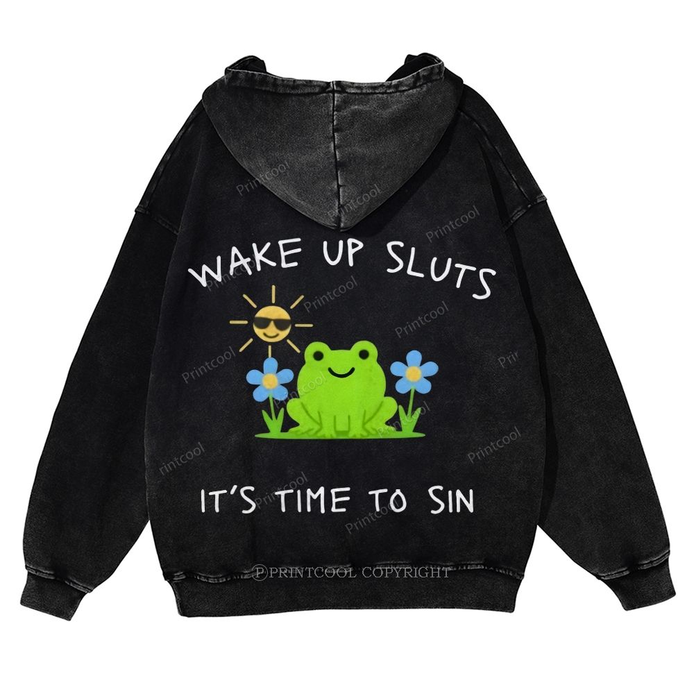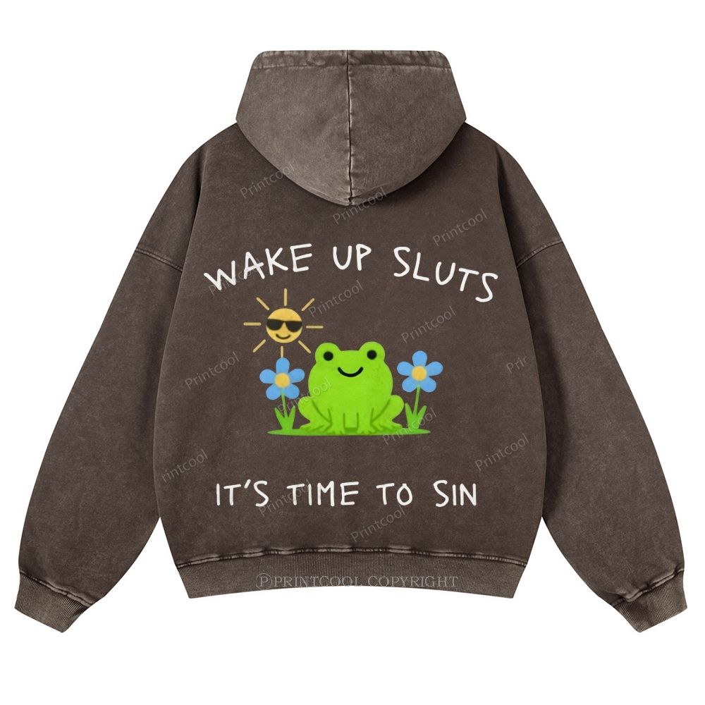 Sinful Sunshine Froggy Casual Washed Hoodie