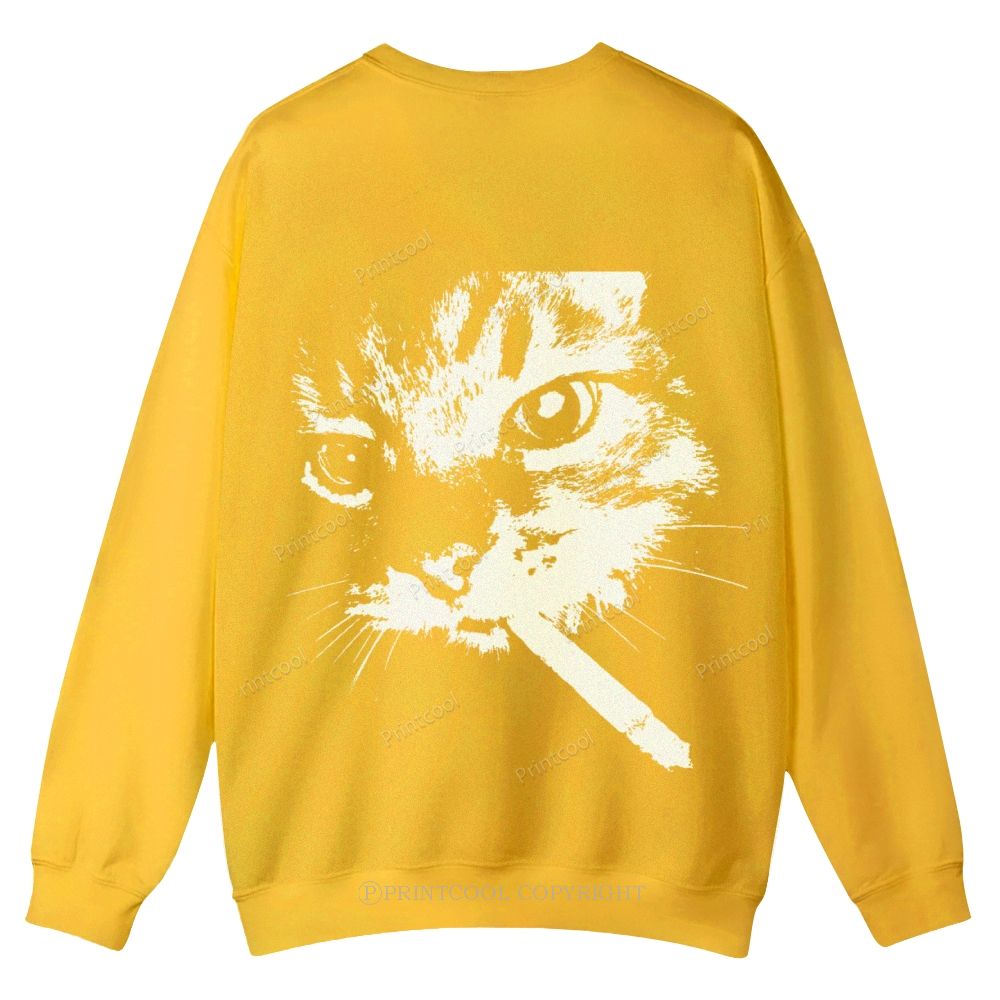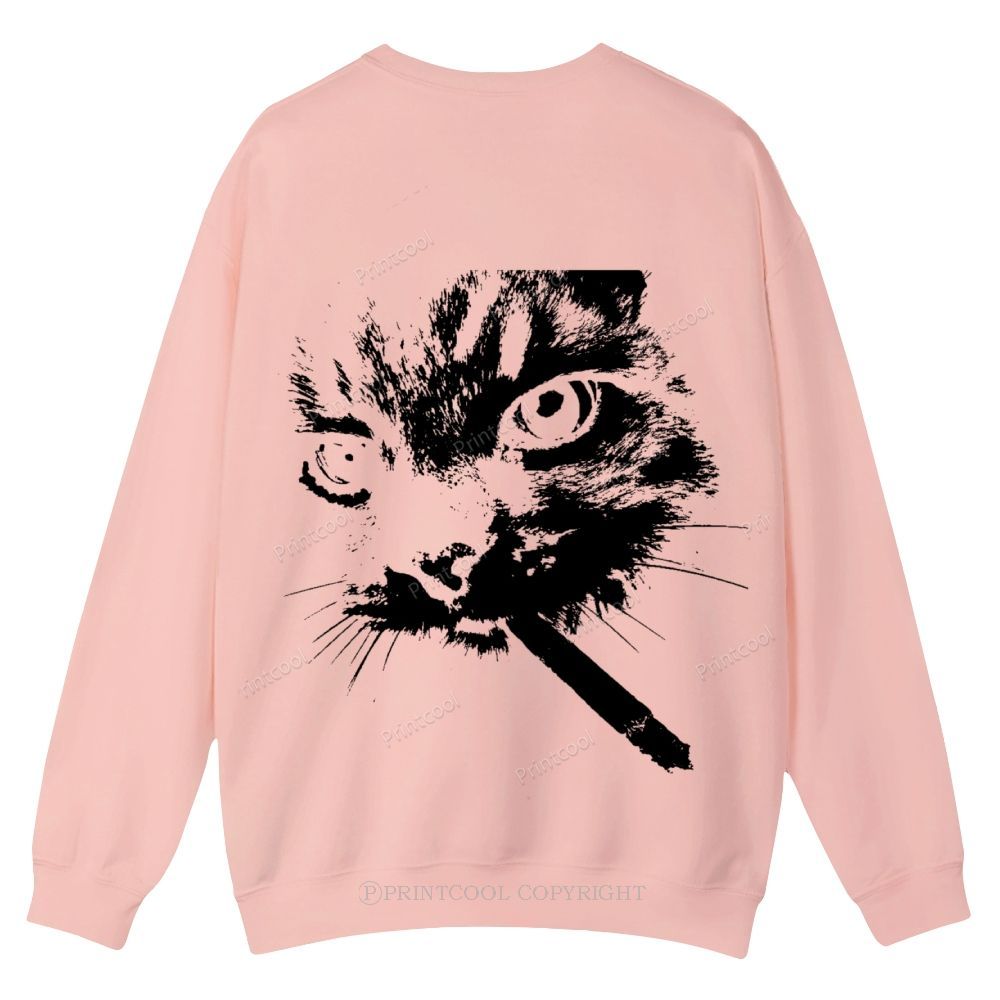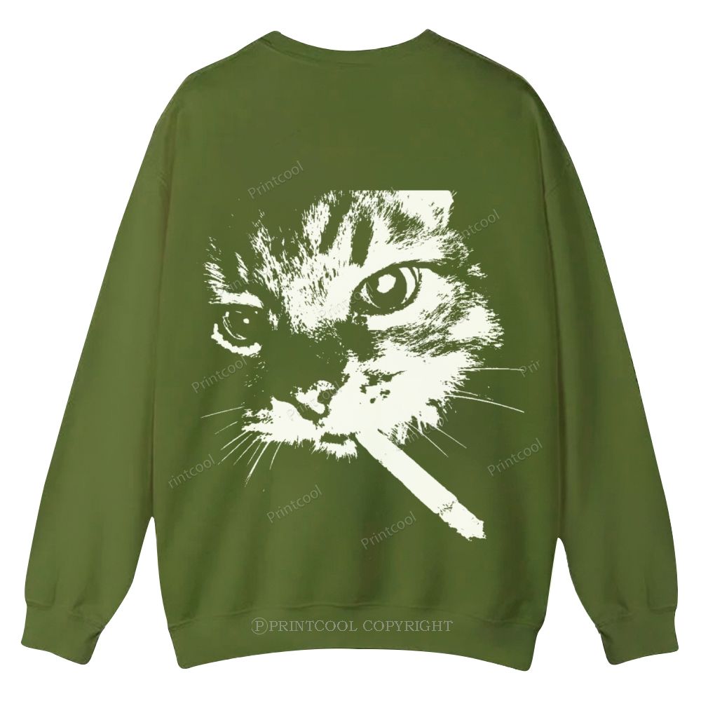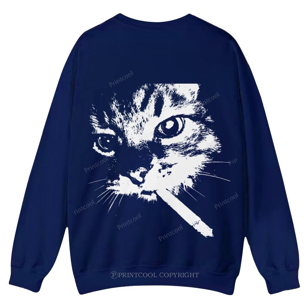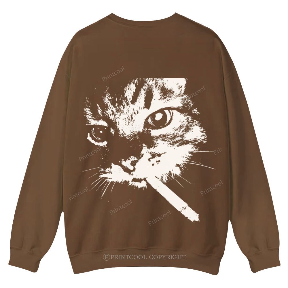 Smoking Cat Casual Crewneck Sweatshirt