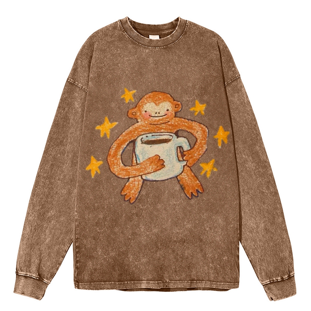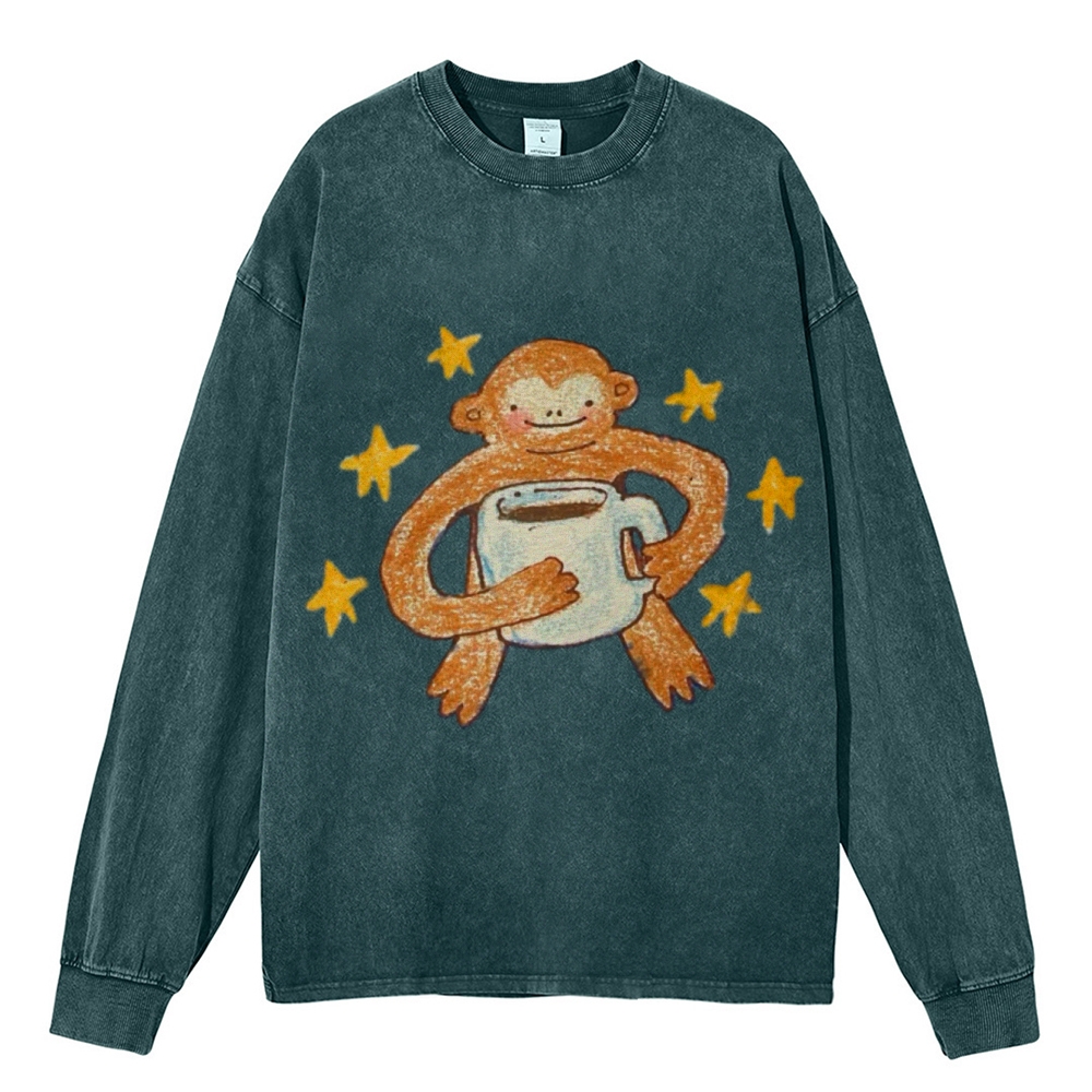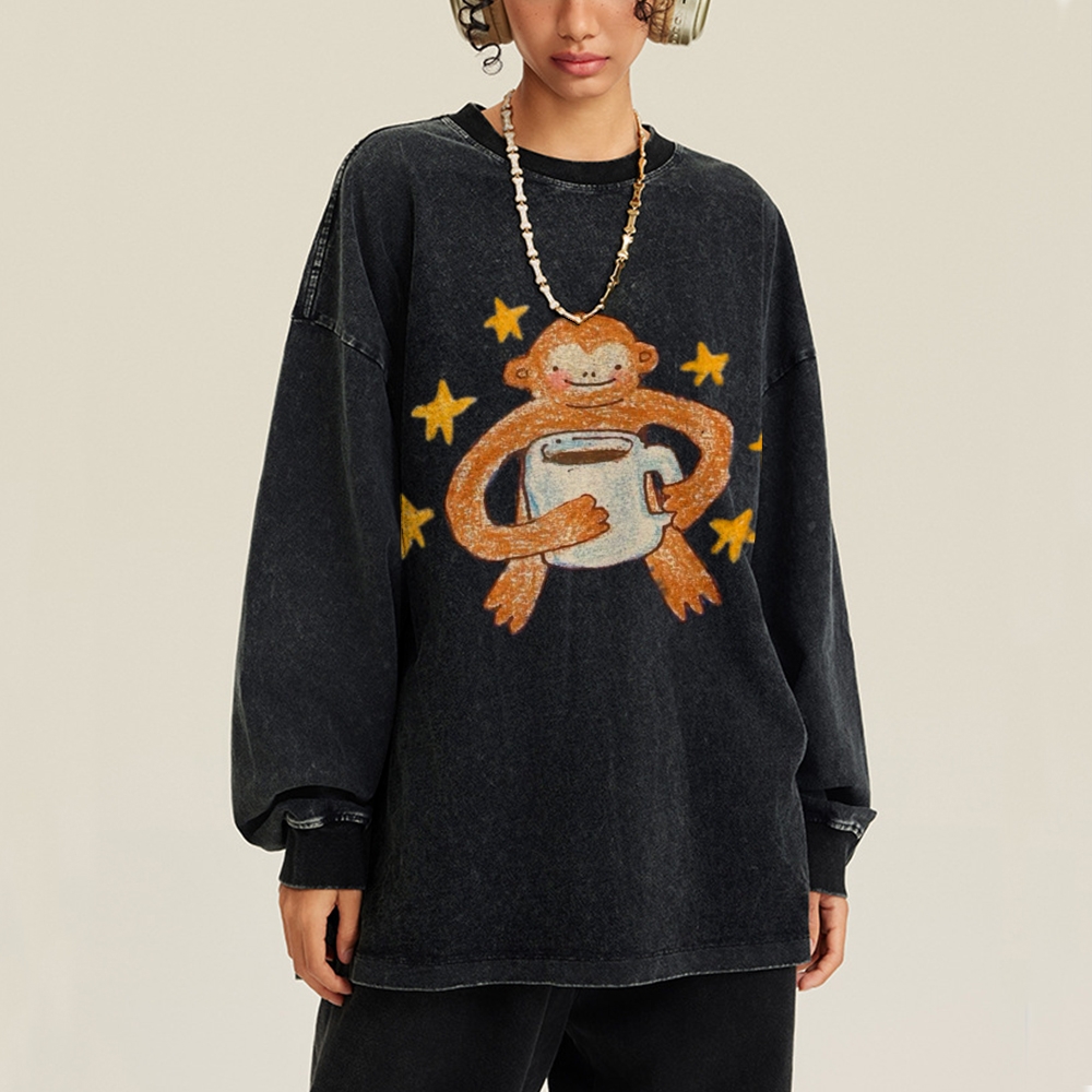 Star Monkey Unisex Casual Washed Printed Long Sleeve T-shirt