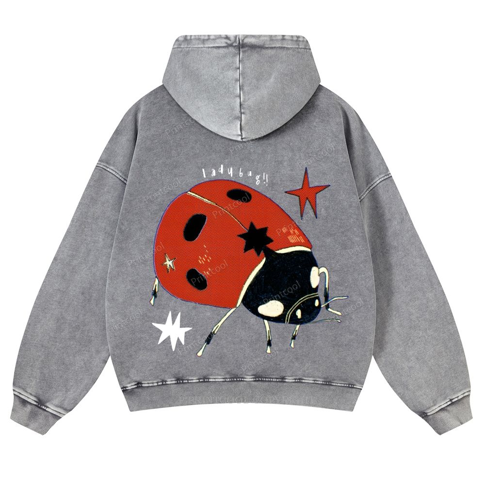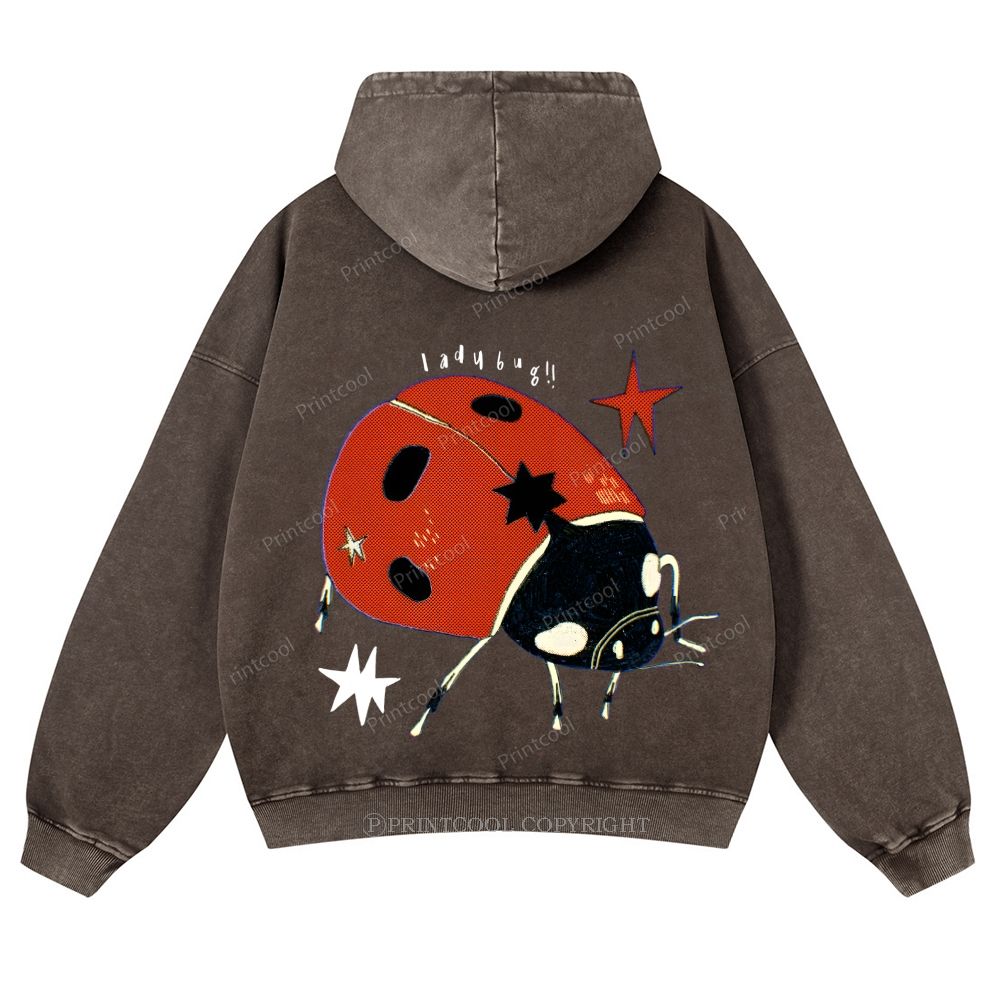 Star Studded Ladybug Unisex Washed Cotton Zip Up Hoodie