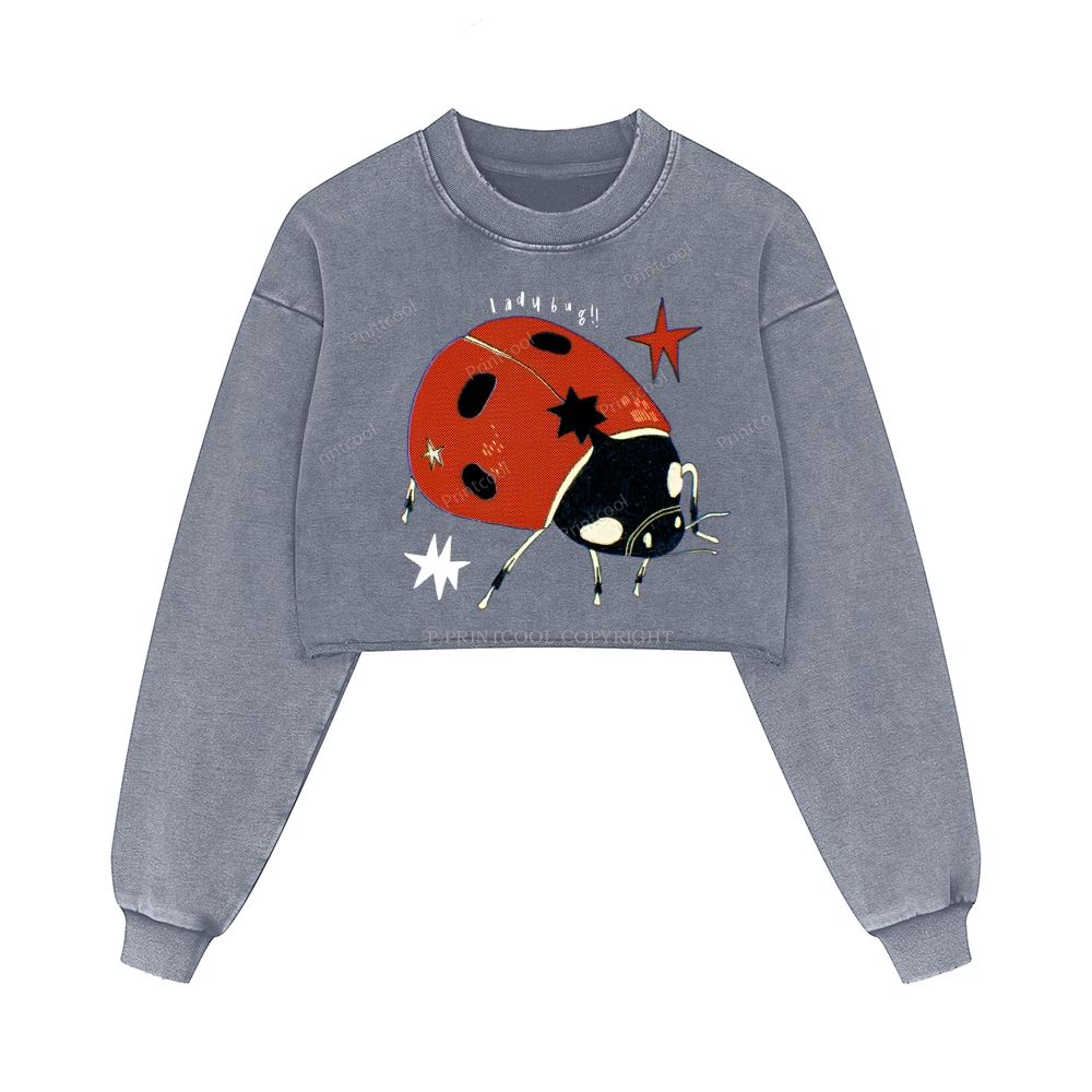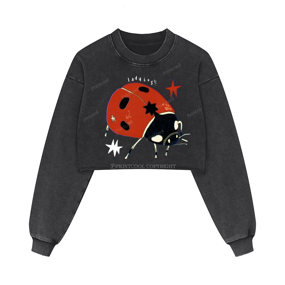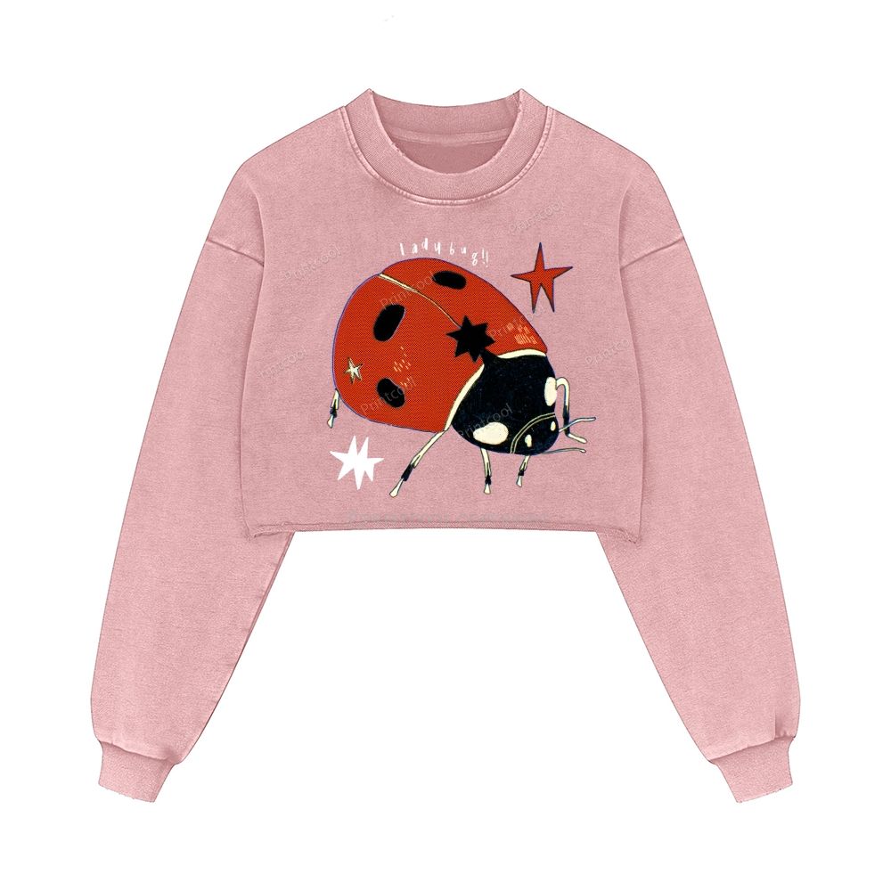 Star Studded Ladybug Washed Crop Sweatshirt
