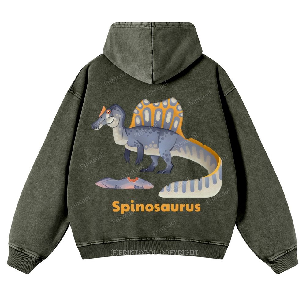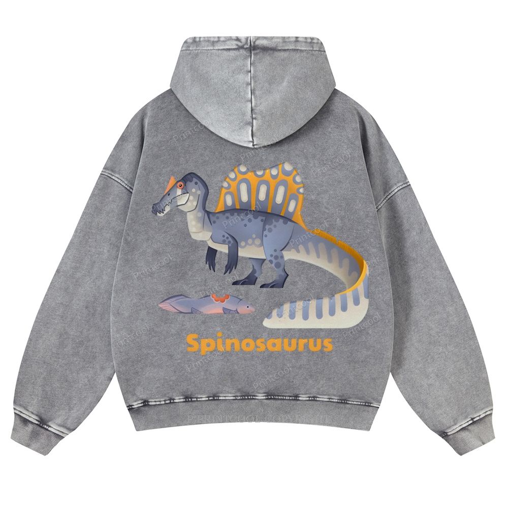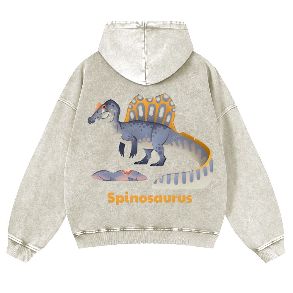 Stylized Spinosaurus With Prehistoric Fish Casual Washed Hoodie